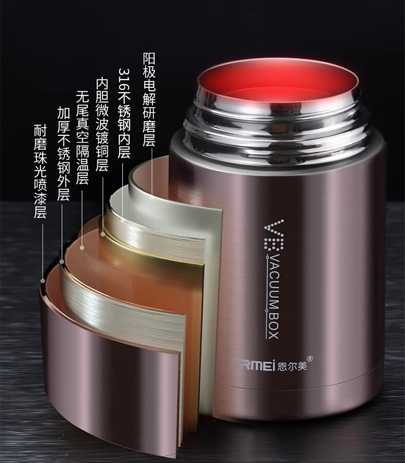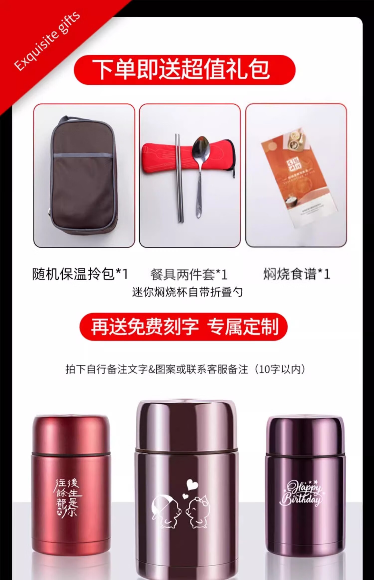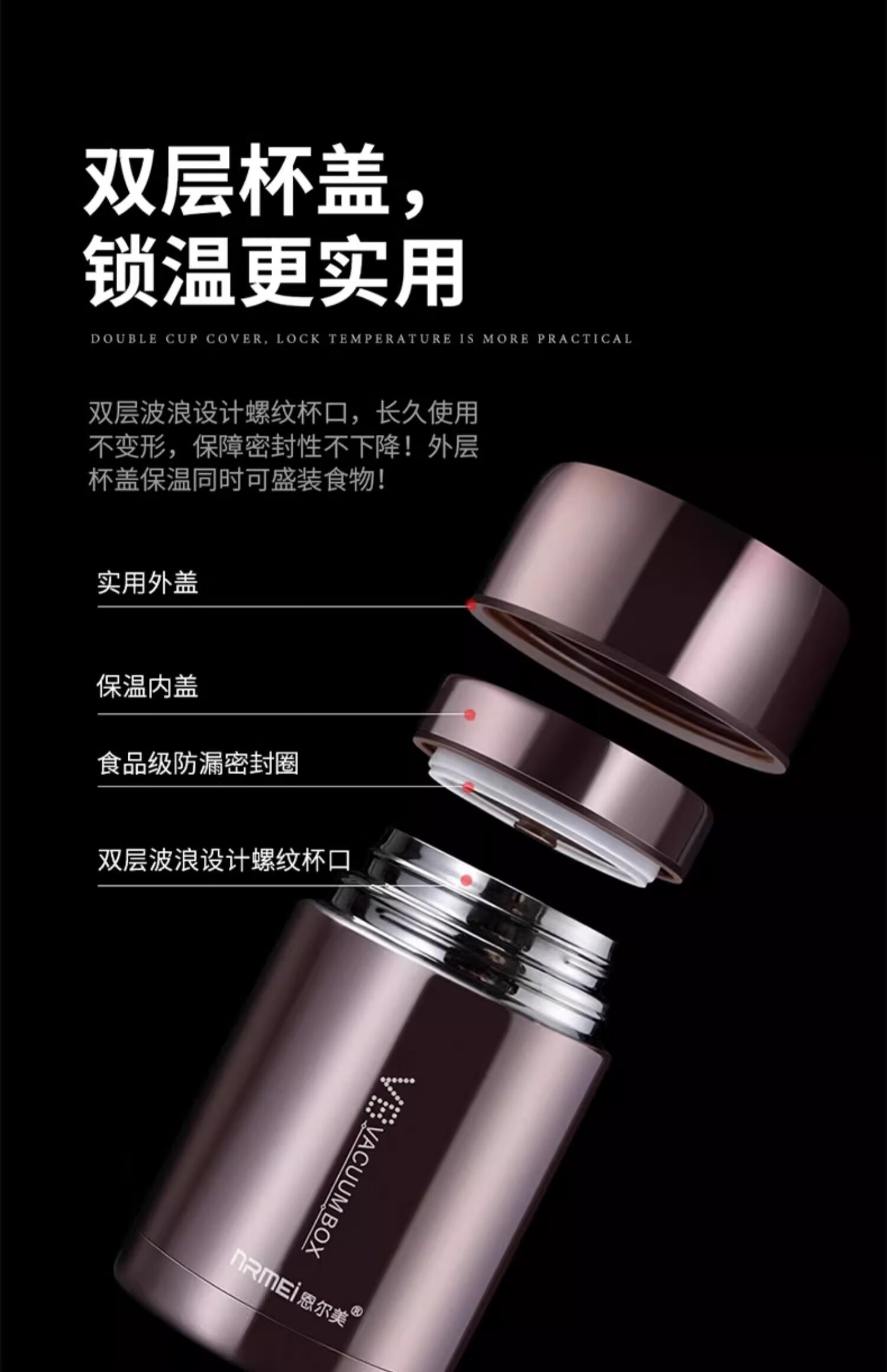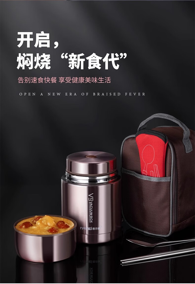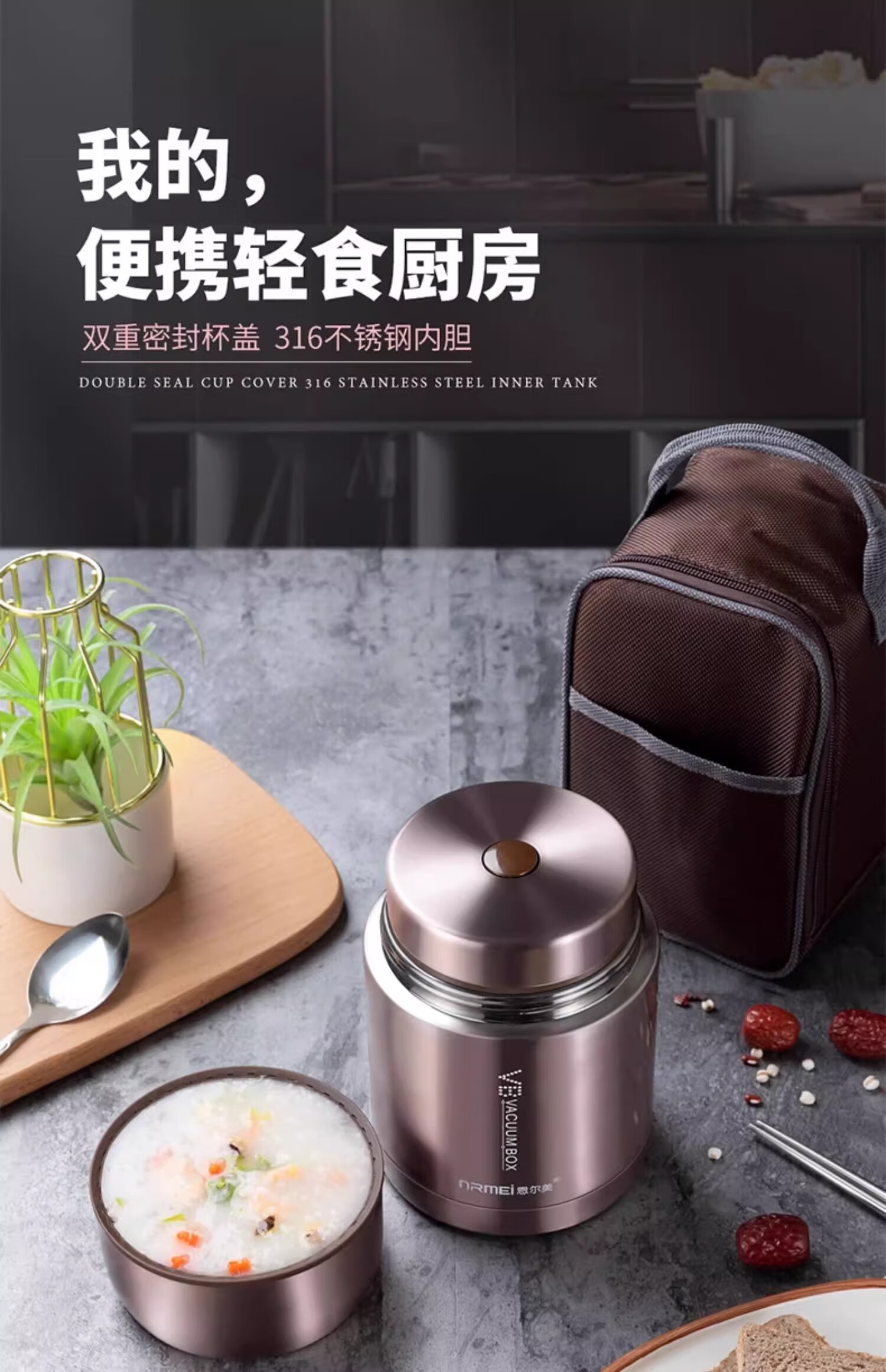 NRMEi stew beaker 316 stainless steel smoldering pot stew porridge pot artifact large capacity insulated cup for men and women double-layer insulated lunch box champagne gold insulated bag + recipe 800ml antibacterial 316 stainless steel liner | free tableware
