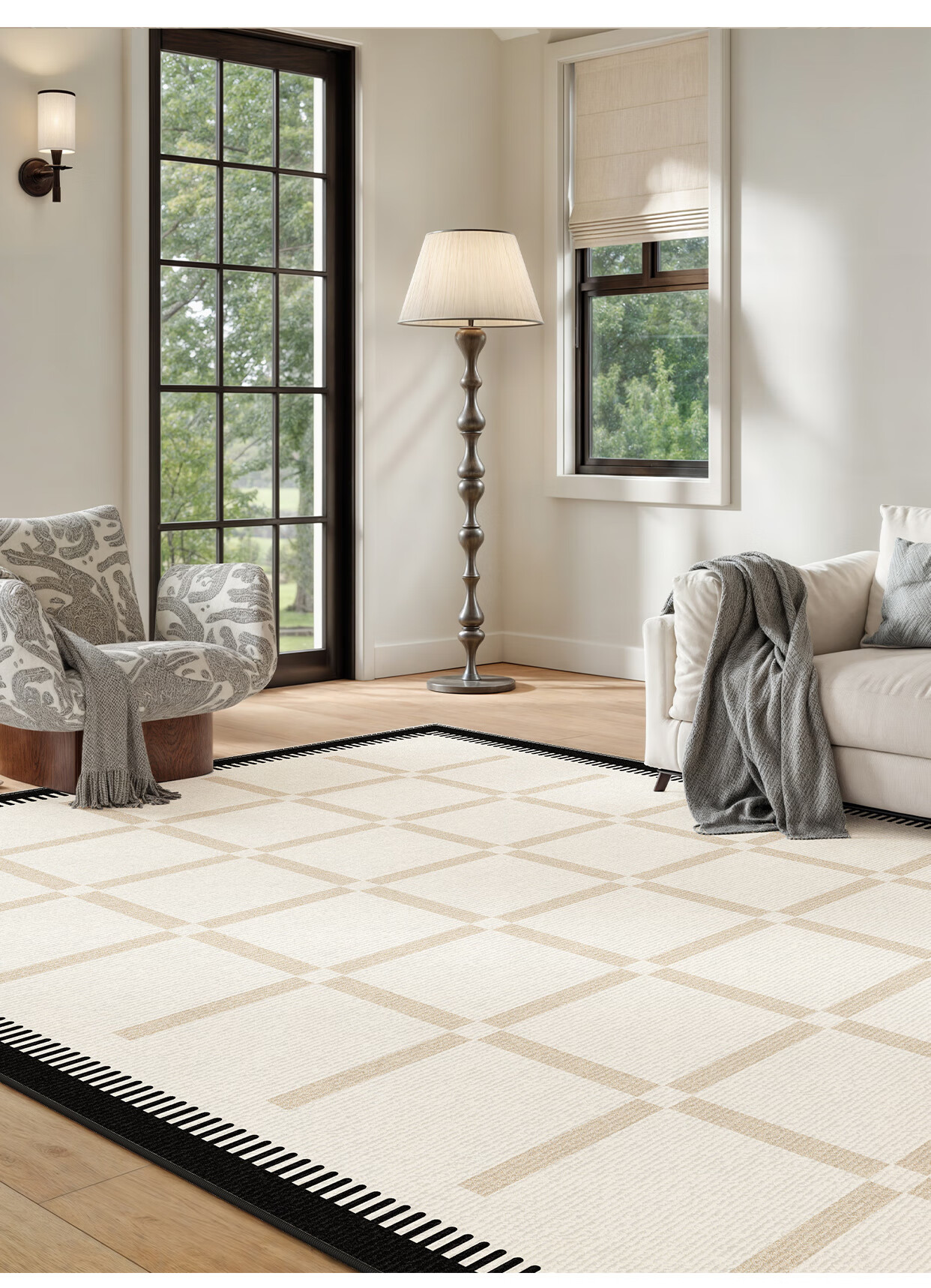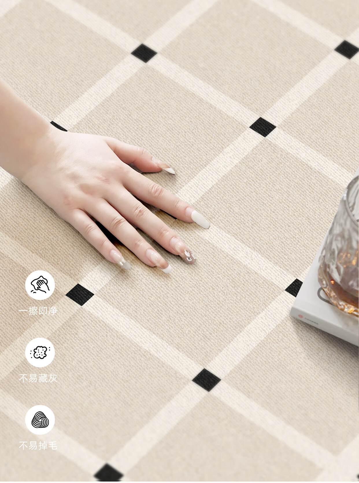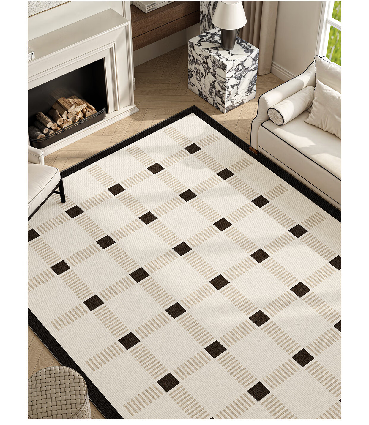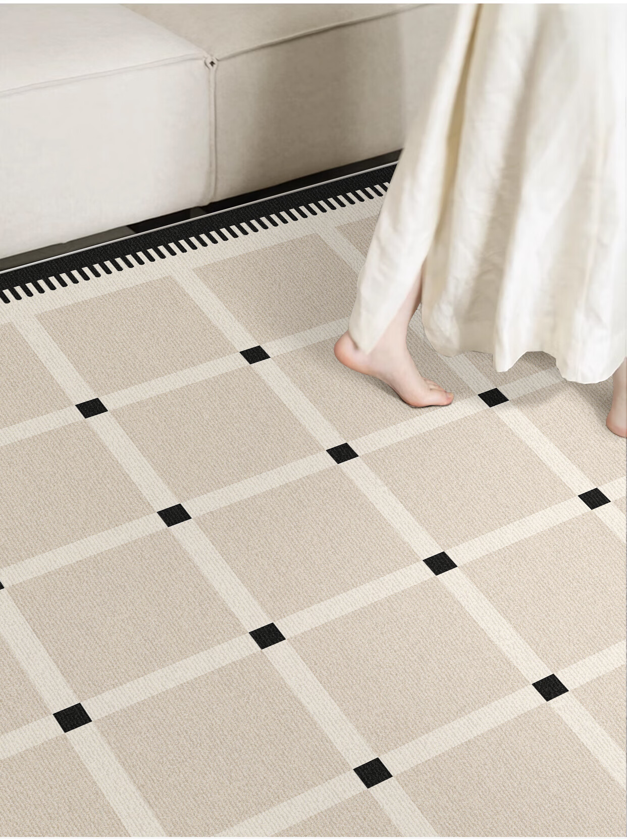 Y U-LIVE carpet living room bedroom 2025 new bedside no-wash and wipeable room high-end waterproof no-care sofa floor mat loop pile-Black Square Park-breathable style 200 300cm light and easy to carry and easy to store