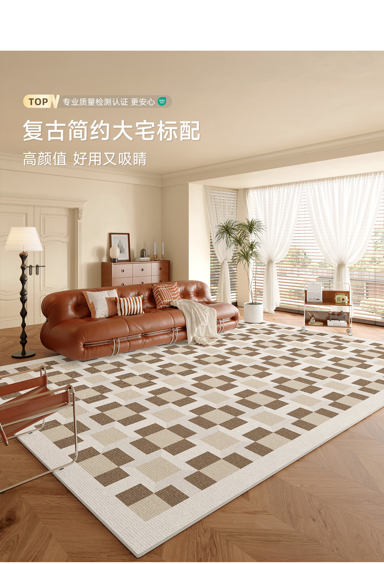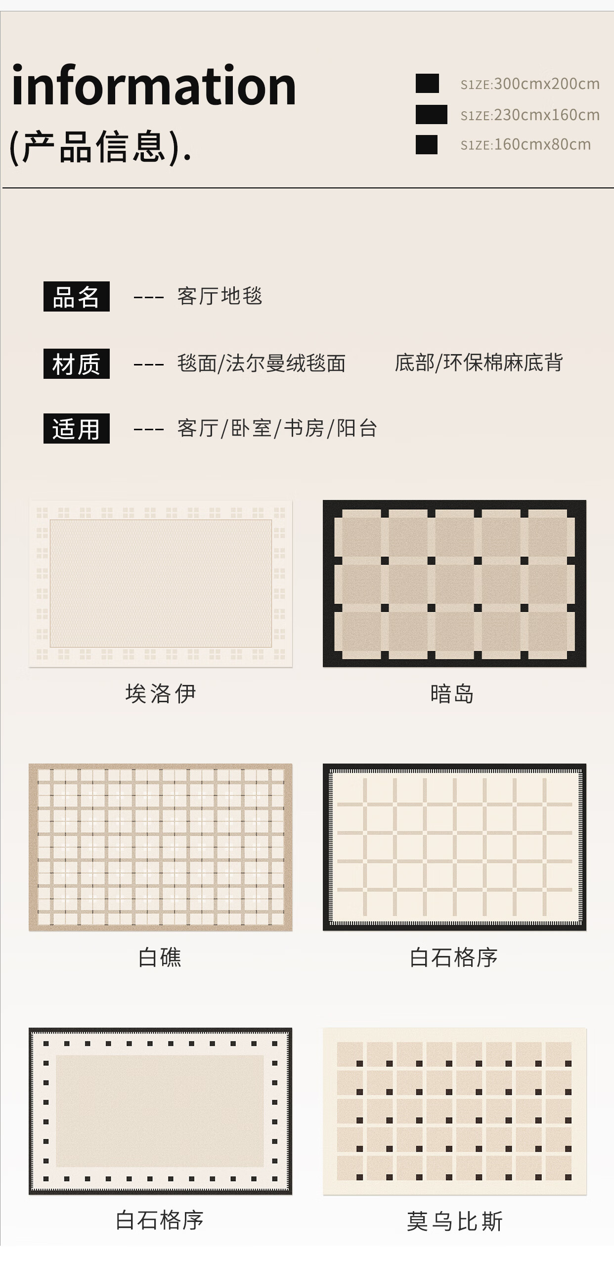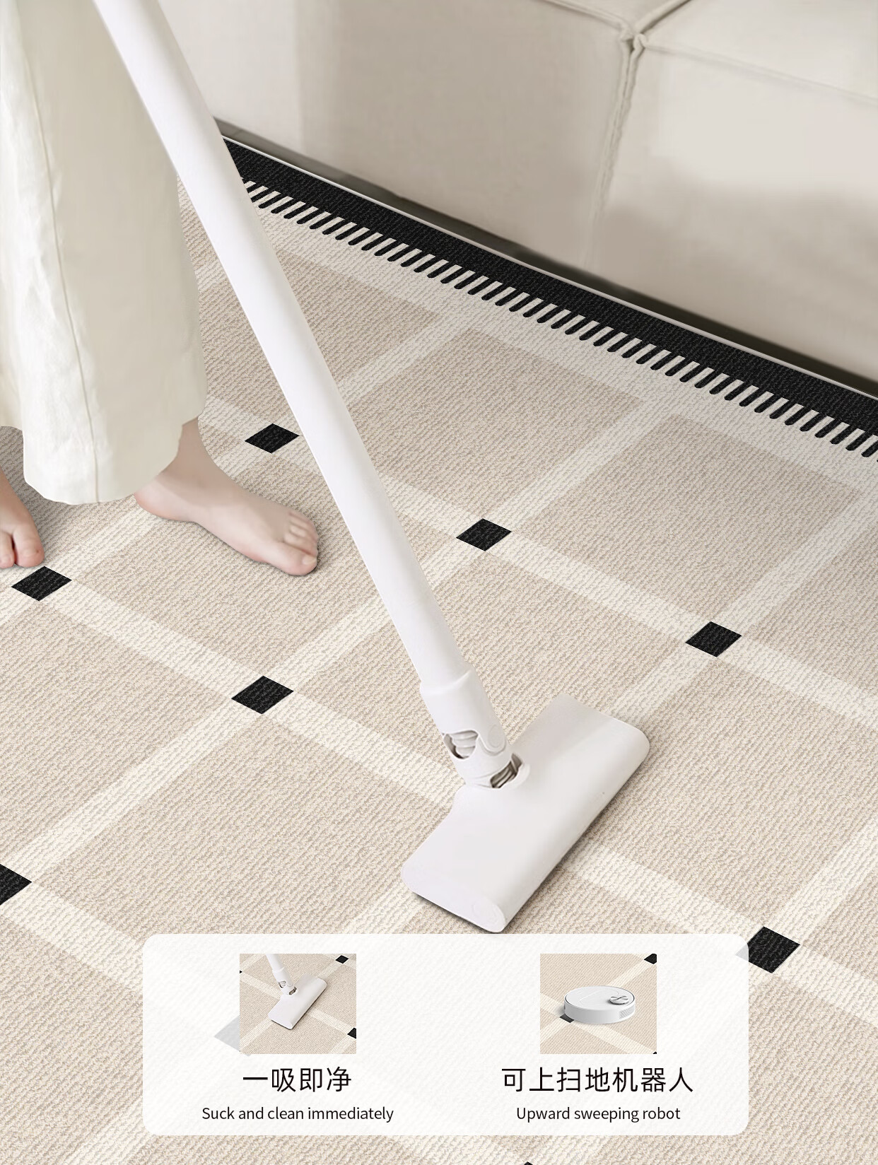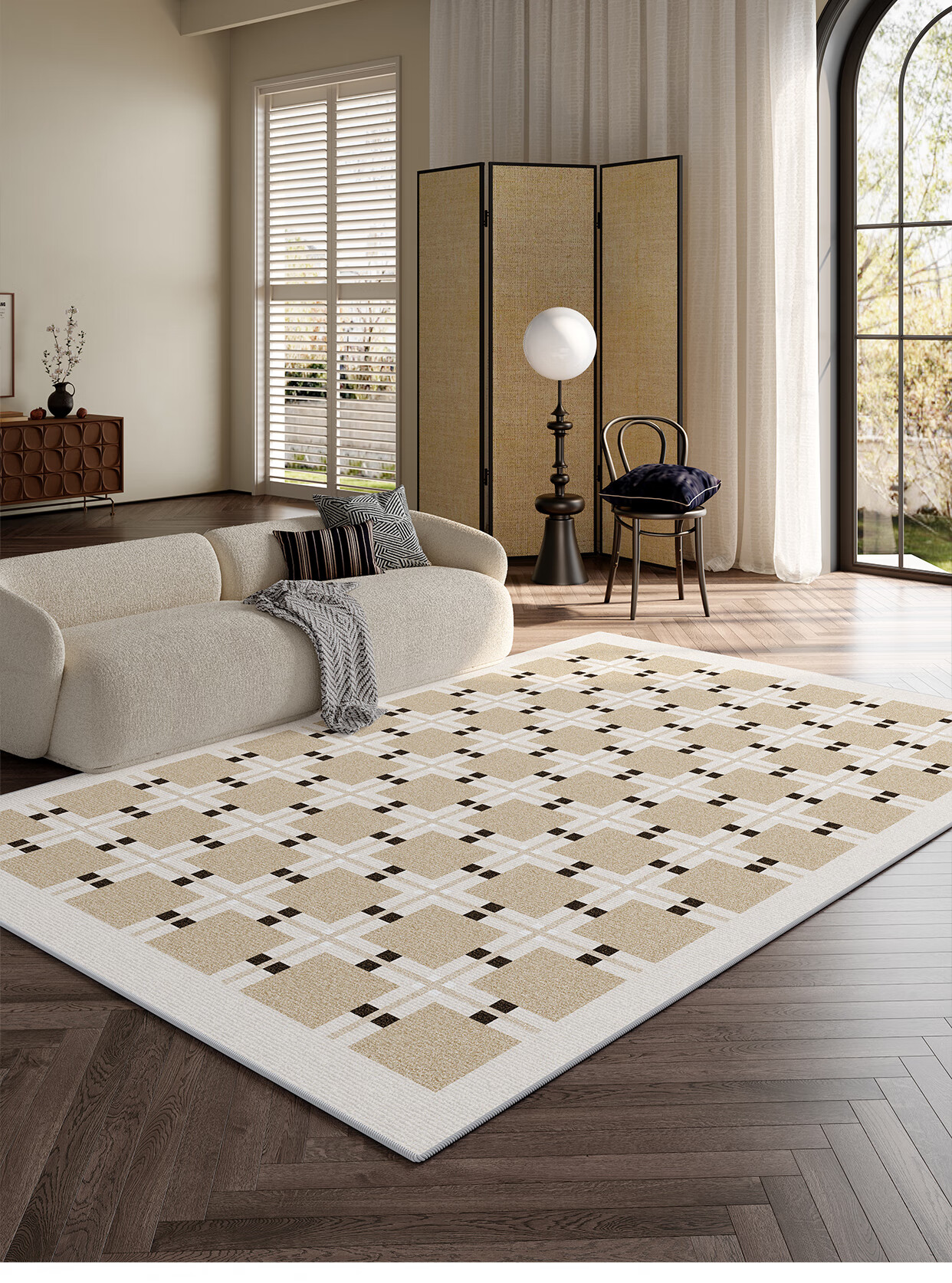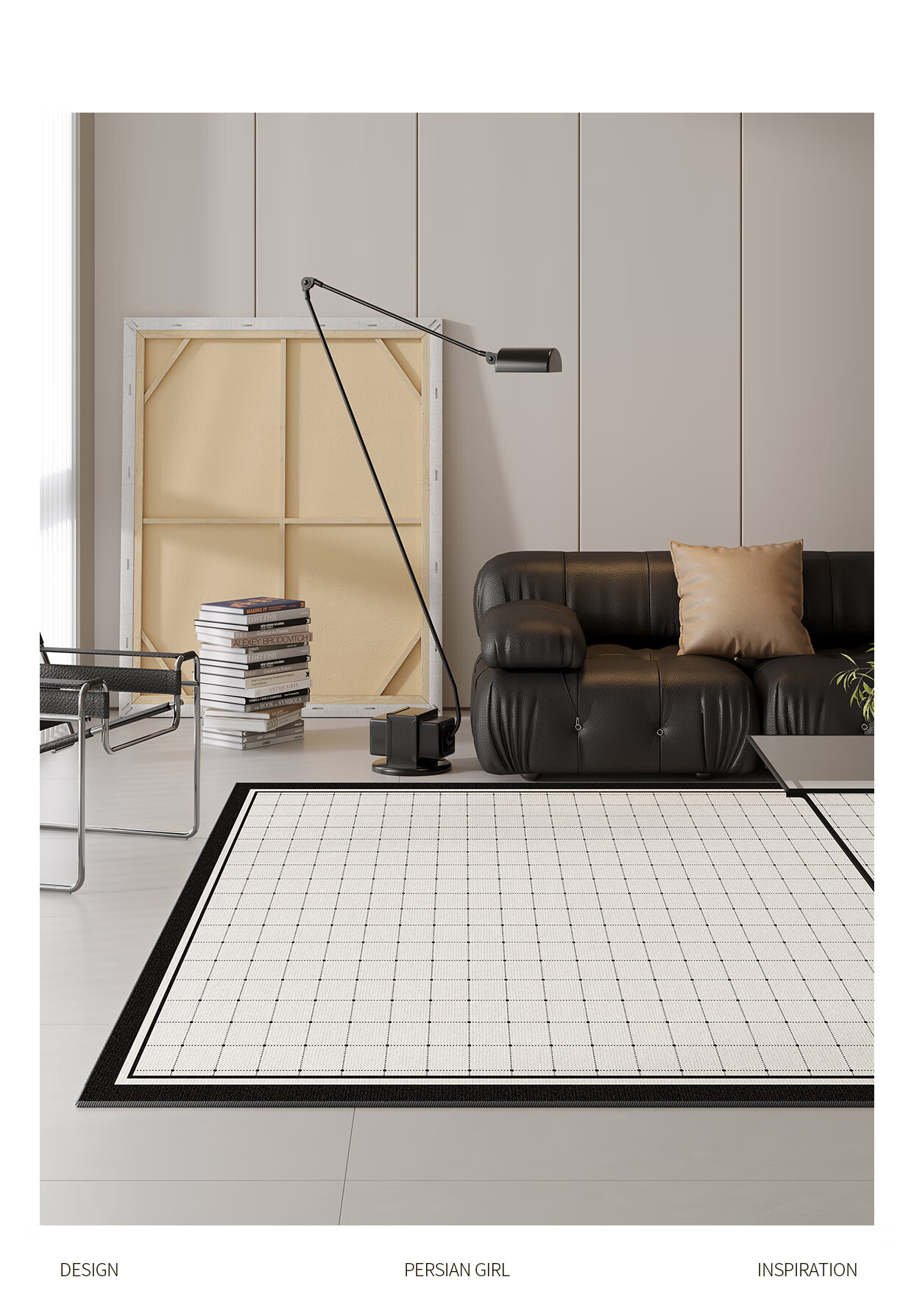Y U-LIVE carpet living room bedroom 2025 new bedside no-wash and wipeable room high-end waterproof no-care sofa floor mat loop pile-Black Square Park-breathable style 200 300cm light and easy to carry and easy to store