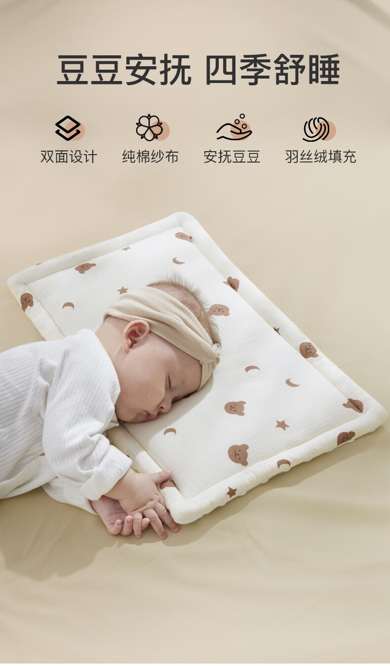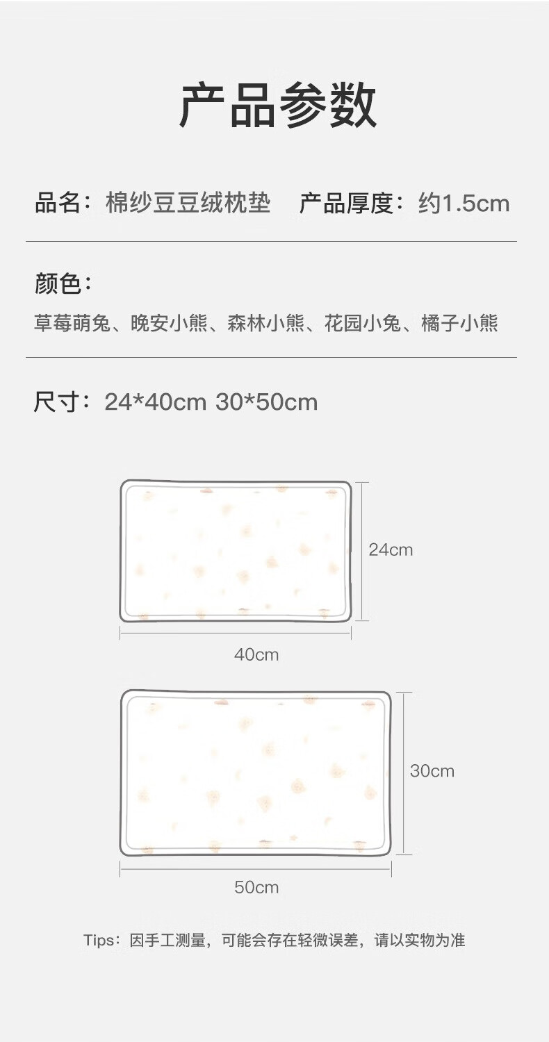 Duo Elf Baby Pillow Cloud Pillow 0 to 6 Months Flat Pillow Cover 1 Year Old Pure Cotton Newborn Baby Soothing Doudou Autumn and Winter 3 Cotton Yarn Beanie Velvet Flat Pillow Garden Bunny 30*50cm