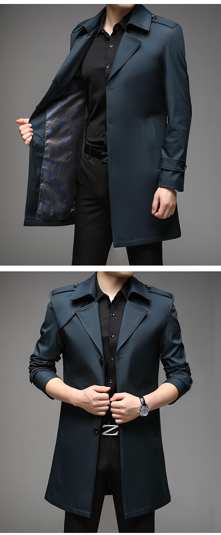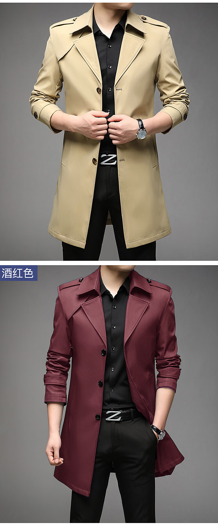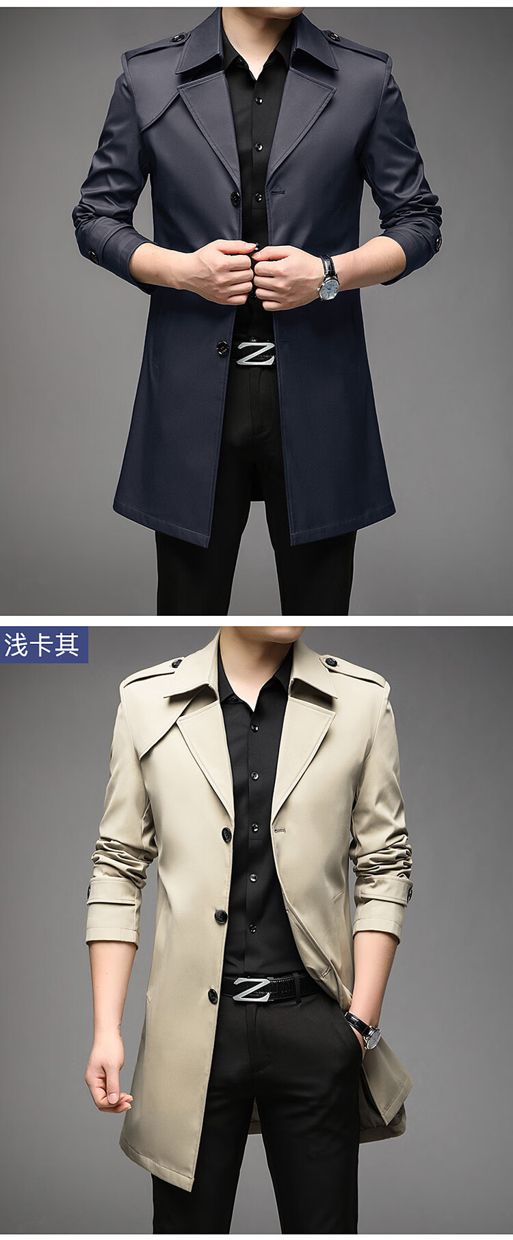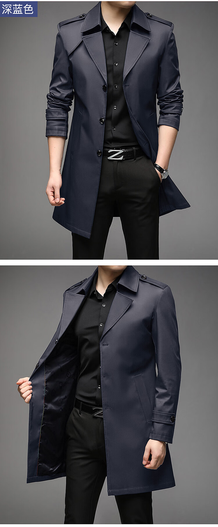 Playboy windbreaker men's autumn and winter new high-end mid-length slim fit light business casual plus velvet 2004 British men's jacket trend thickened 8908 cotton black 165/M recommended 100-115 Jin Jin is equal to 0.5 kg to wear