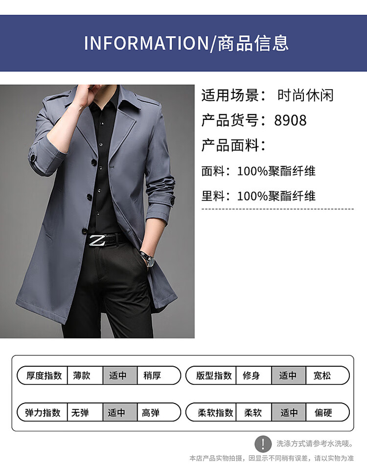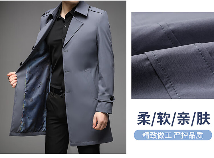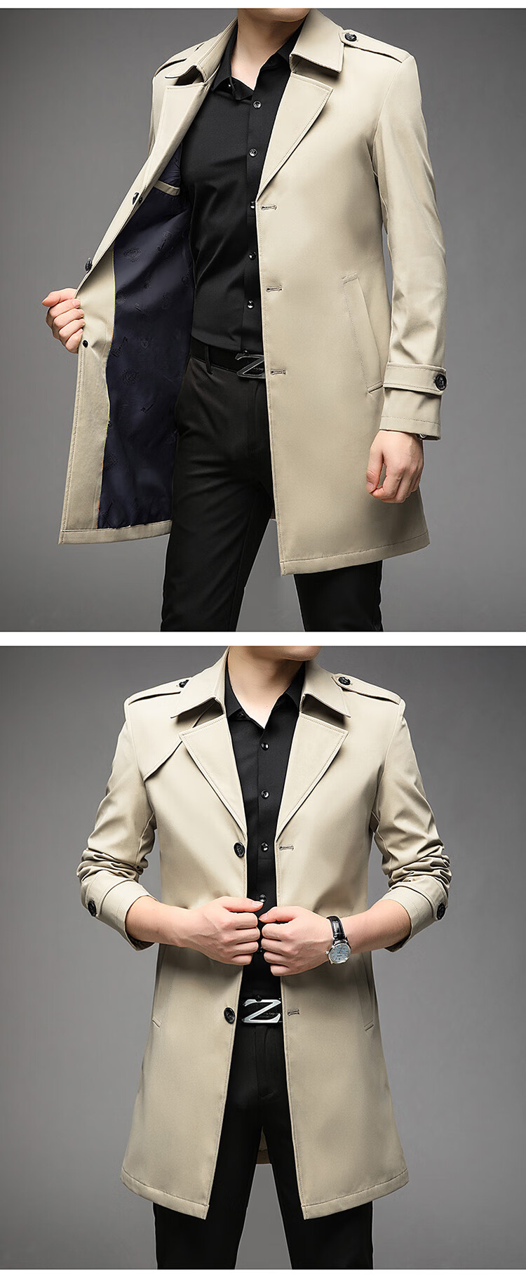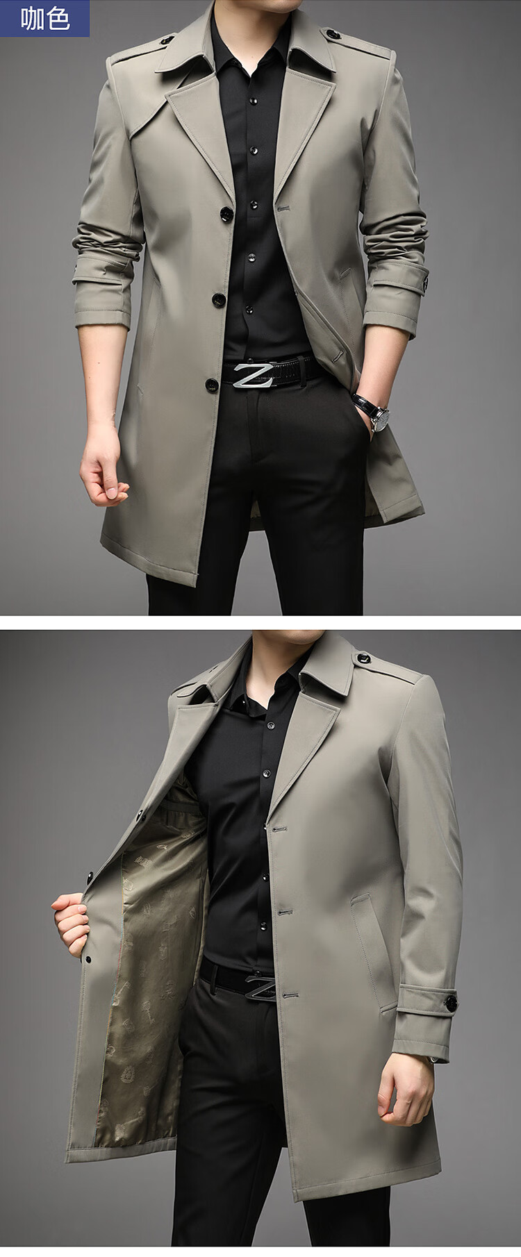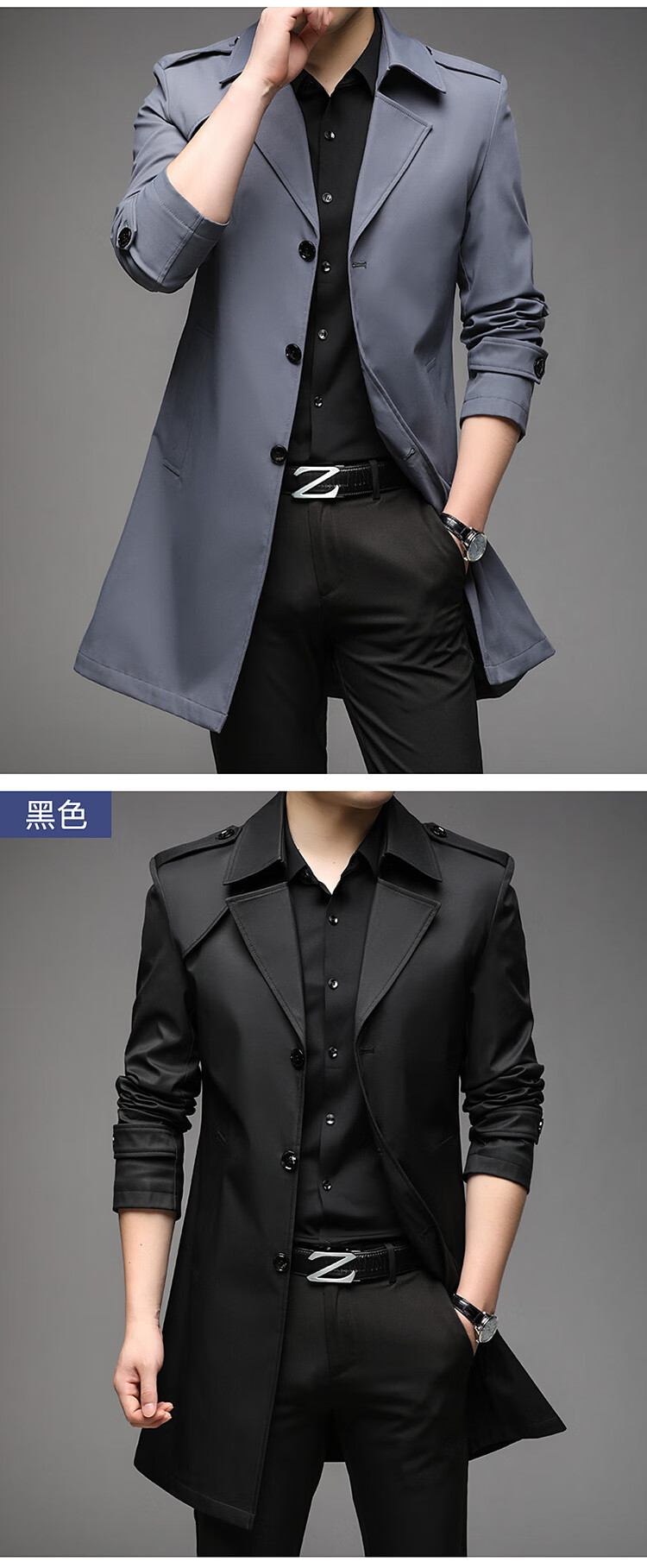 Playboy windbreaker men's autumn and winter new high-end mid-length slim fit light business casual plus velvet 2004 British men's jacket trend thickened 8908 cotton black 165/M recommended 100-115 Jin Jin is equal to 0.5 kg to wear