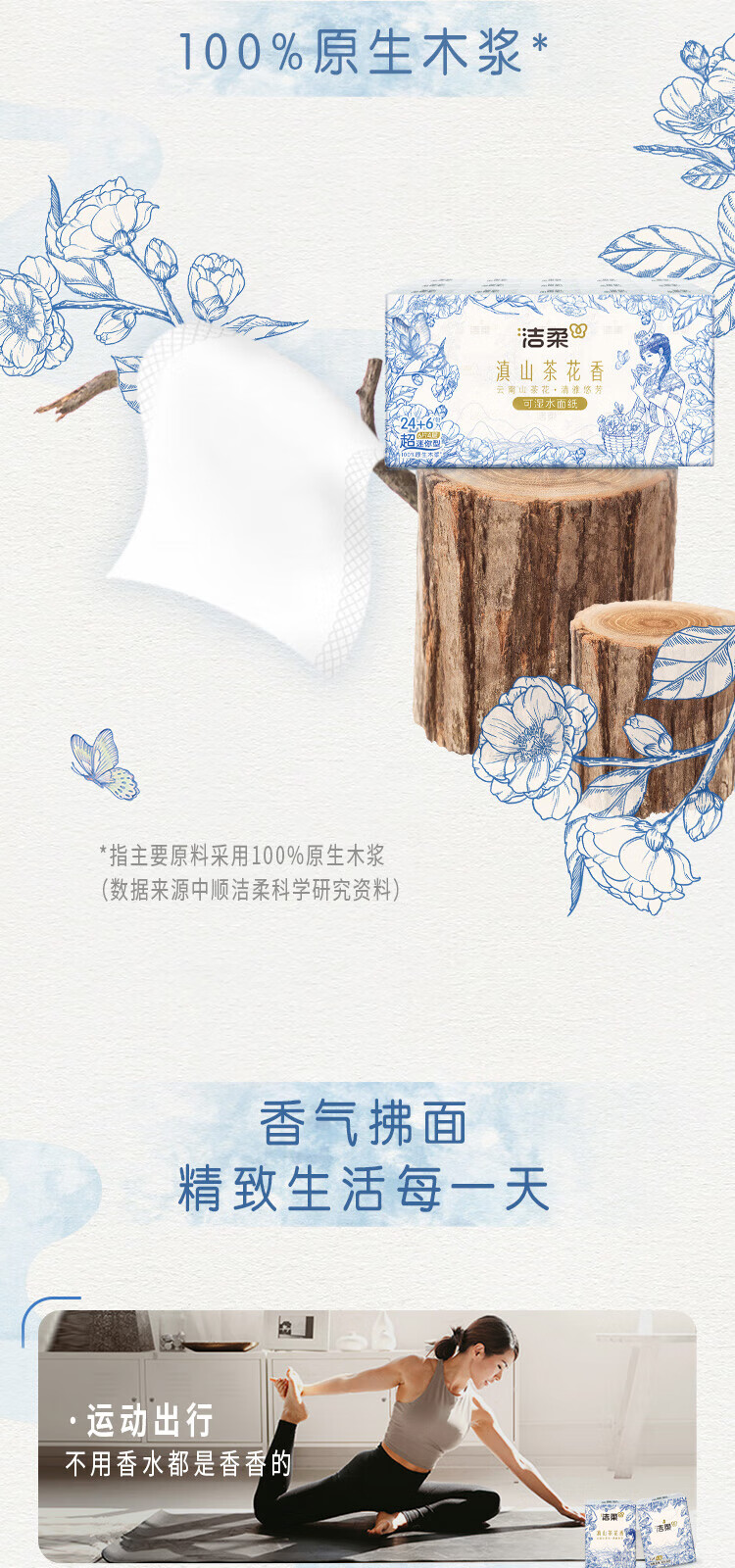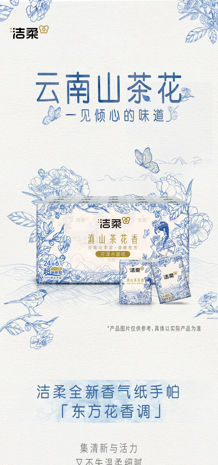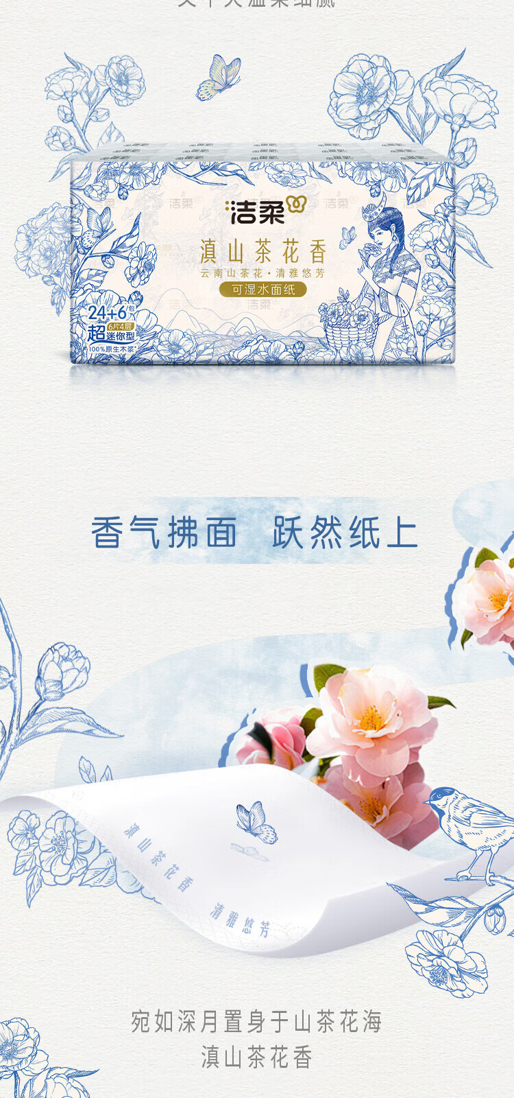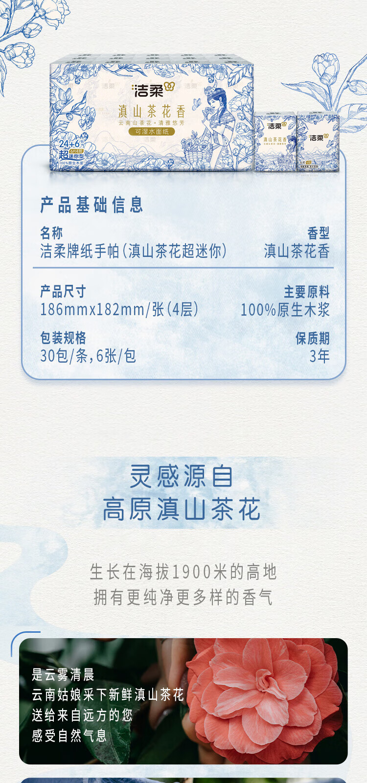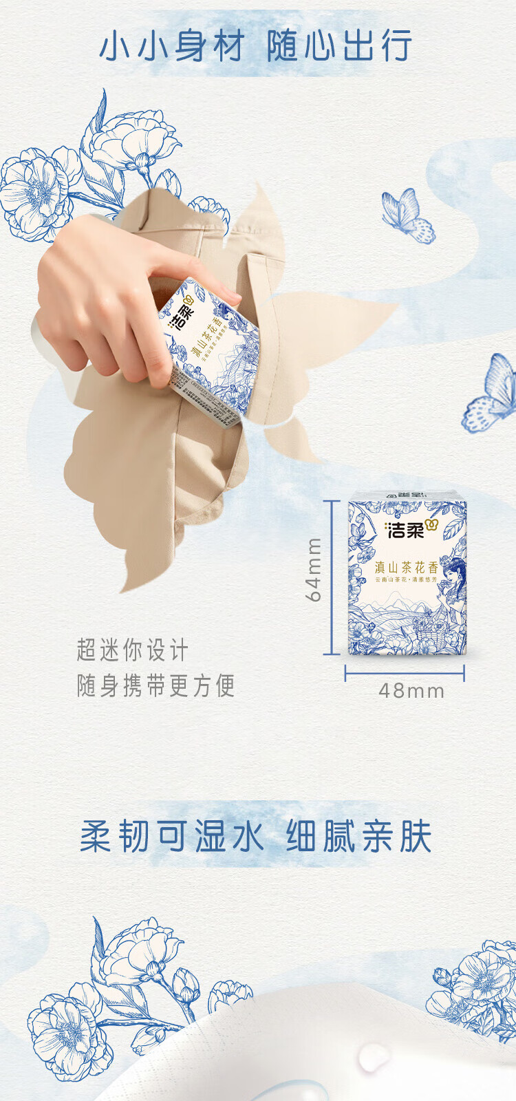 Jierou handkerchief paper Yunnan tea flower fragrance 4 layers 6 pieces toilet paper travel hand napkin mini portable paper towel 4 layers 6 pieces * 30 pack 1 carry