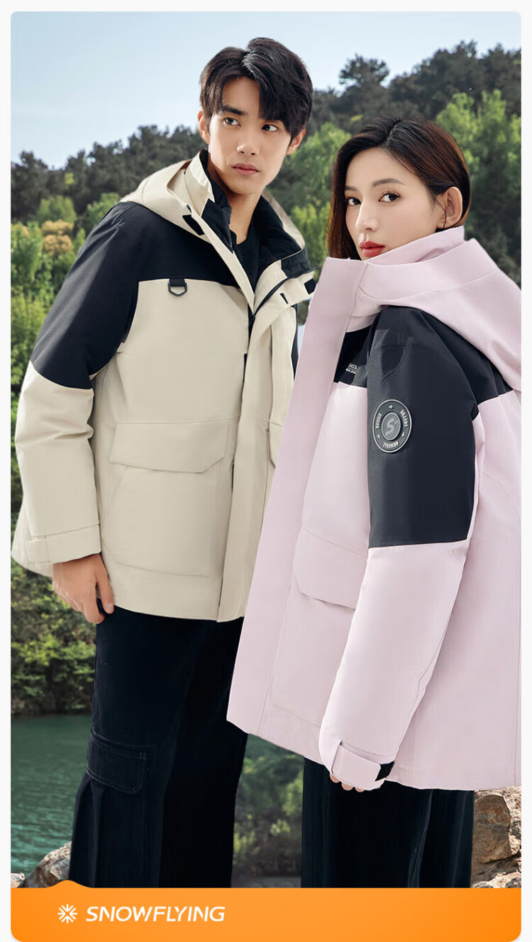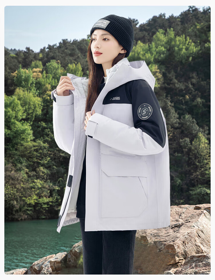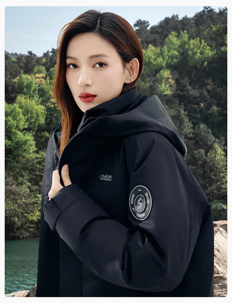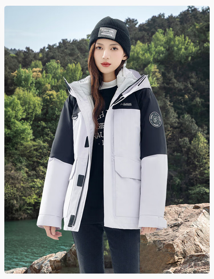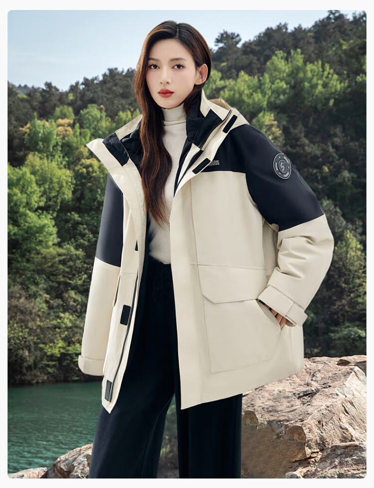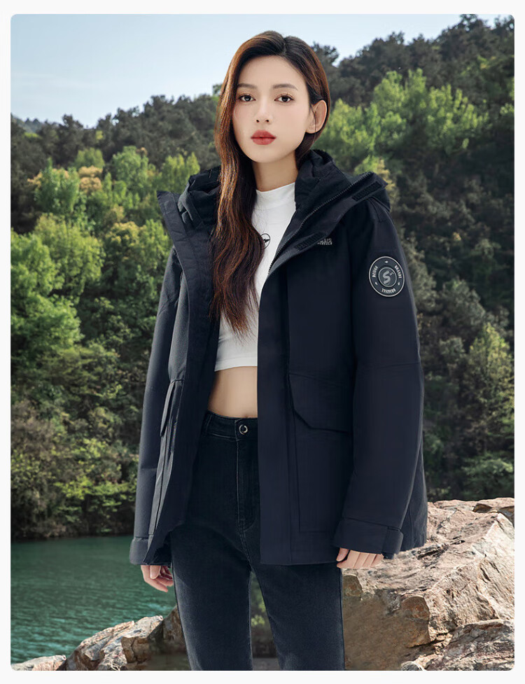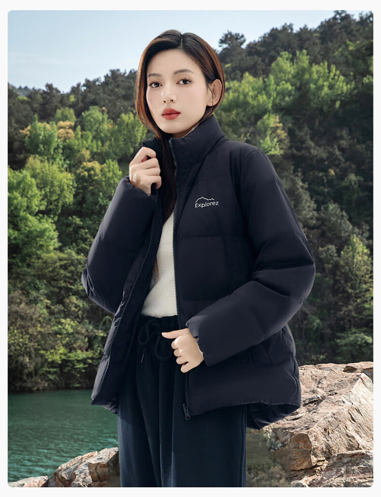 Flying in the Snow Winter Down Jacket Women's Goose Down Loose Warm Jacket Fashionable Versatile Hooded Functional Jacket Light Outdoor Top Black S (160)