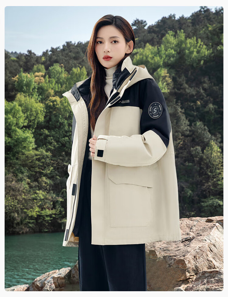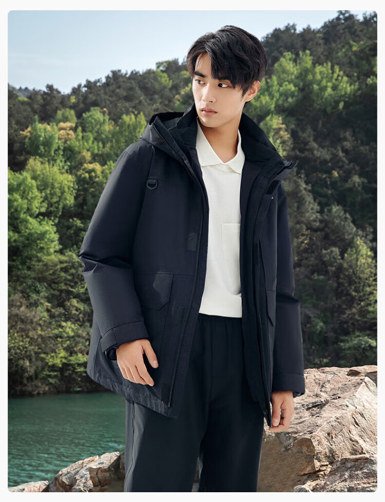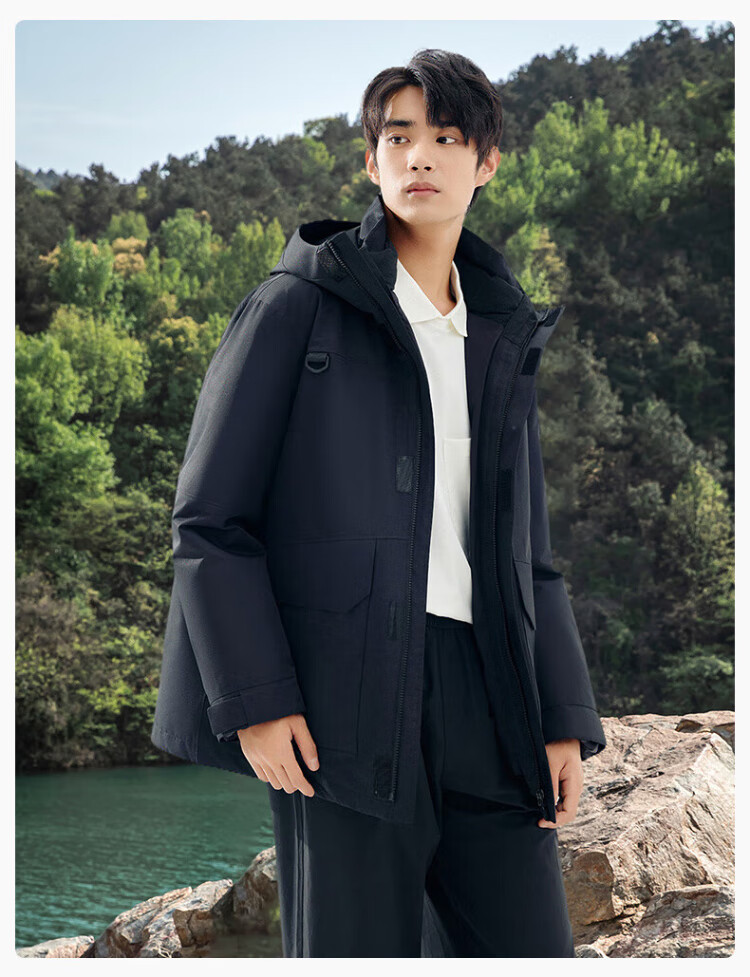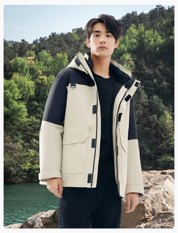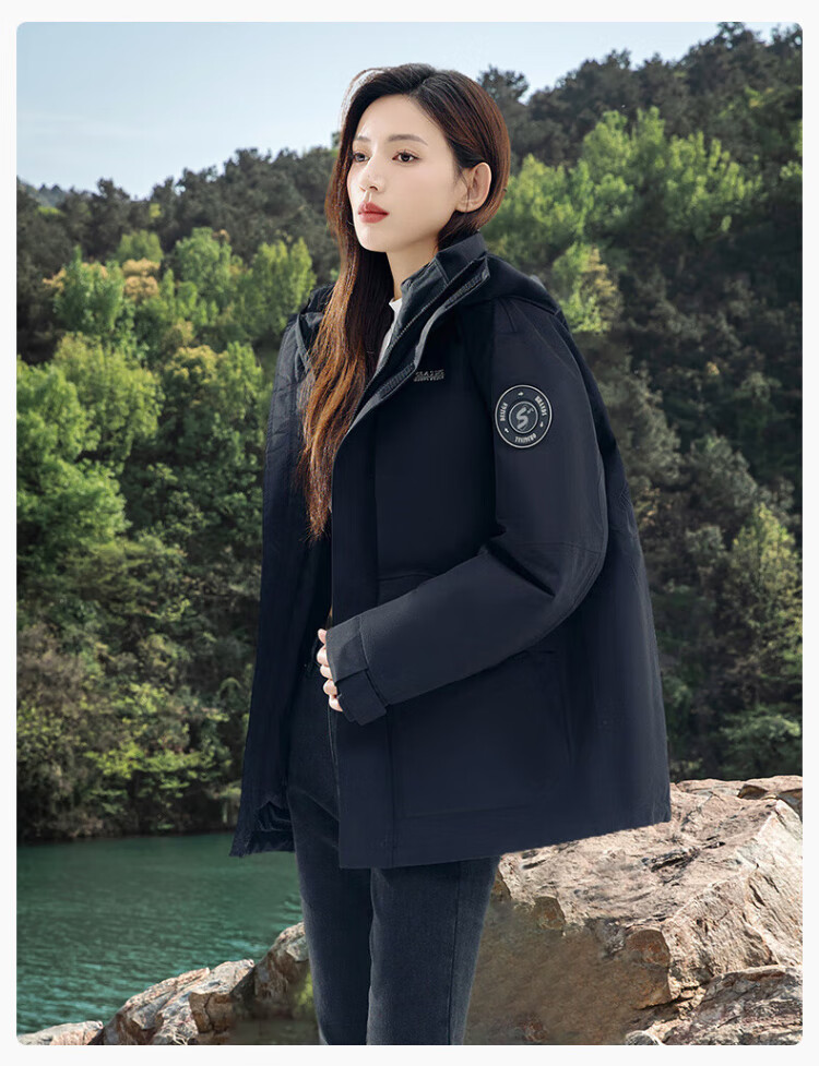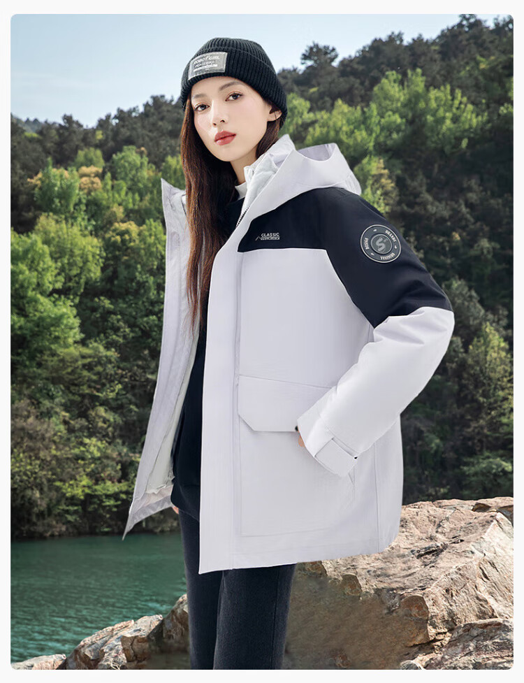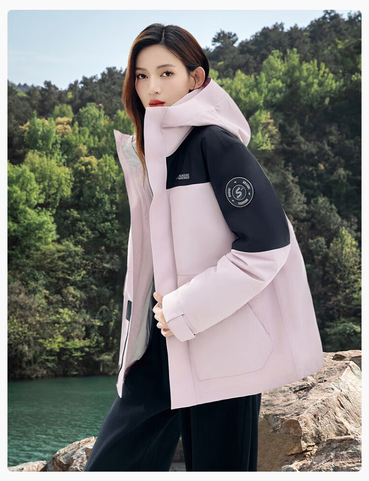 Flying in the Snow Winter Down Jacket Women's Goose Down Loose Warm Jacket Fashionable Versatile Hooded Functional Jacket Light Outdoor Top Black S (160)