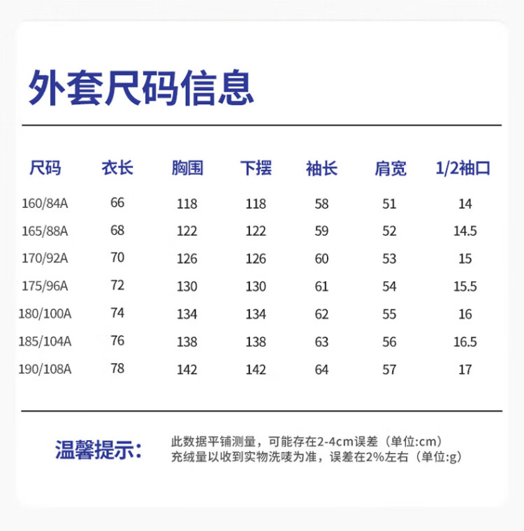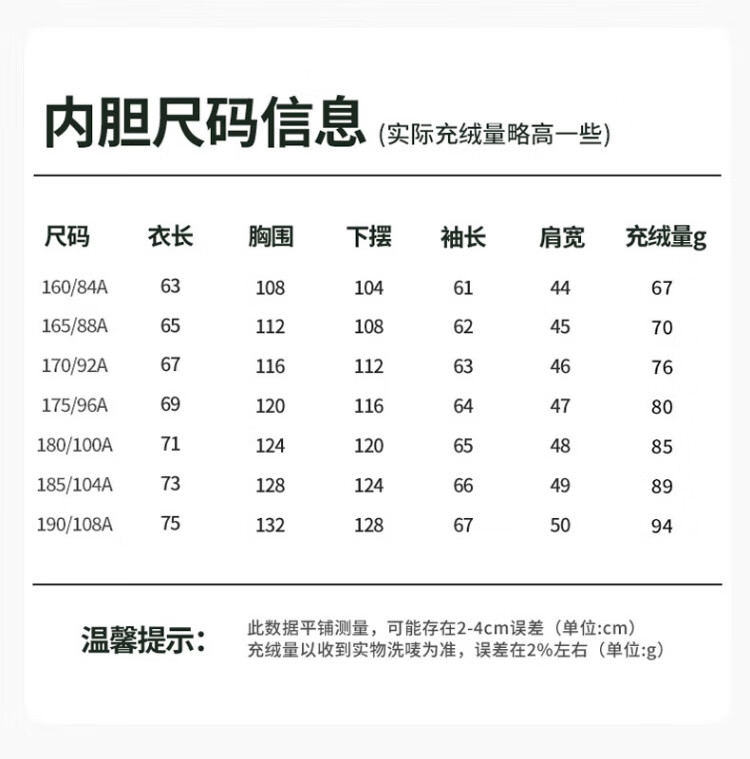 China (cm) 165 / 88-90 170 / 96-98 175 / 108-110 180 / 118-122 185 / 126-130