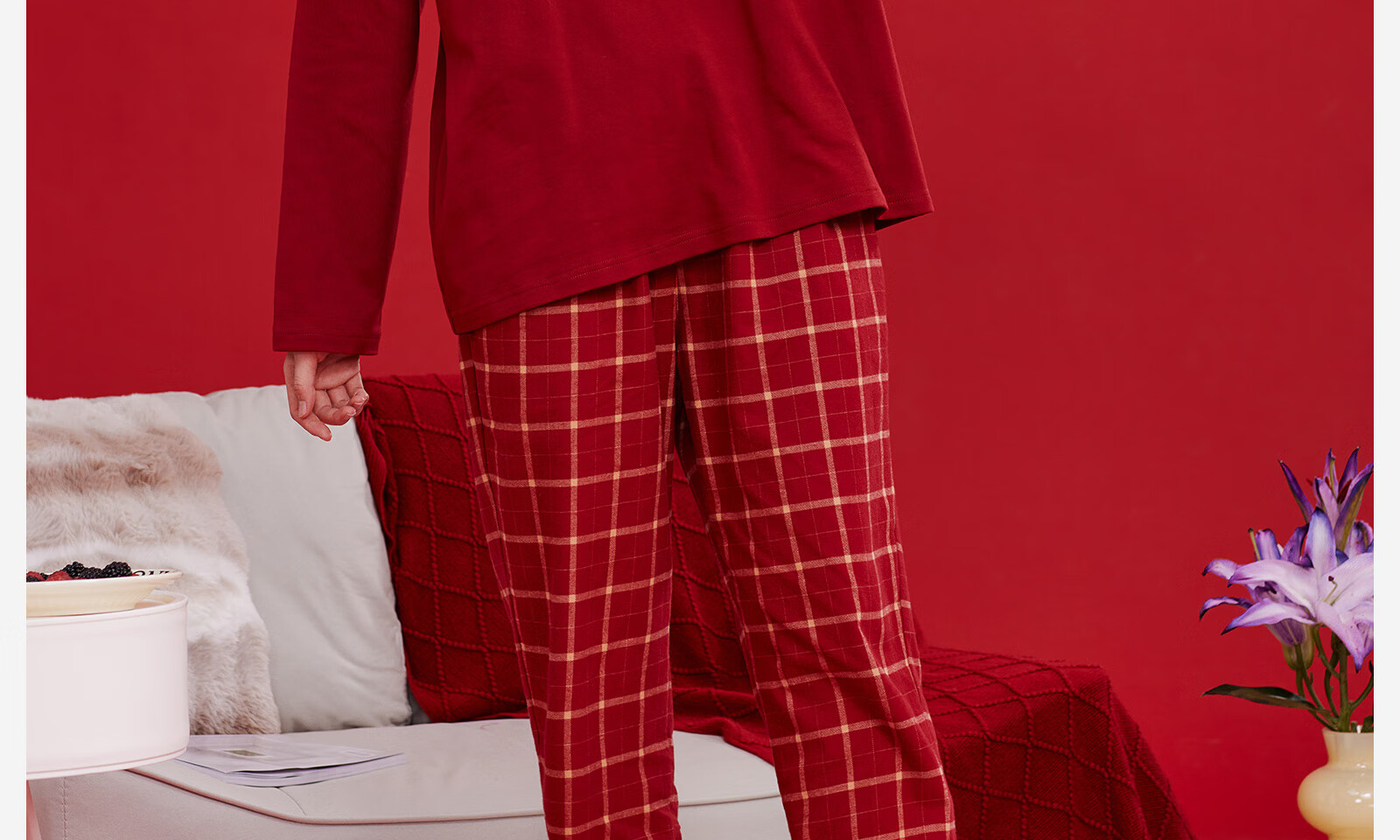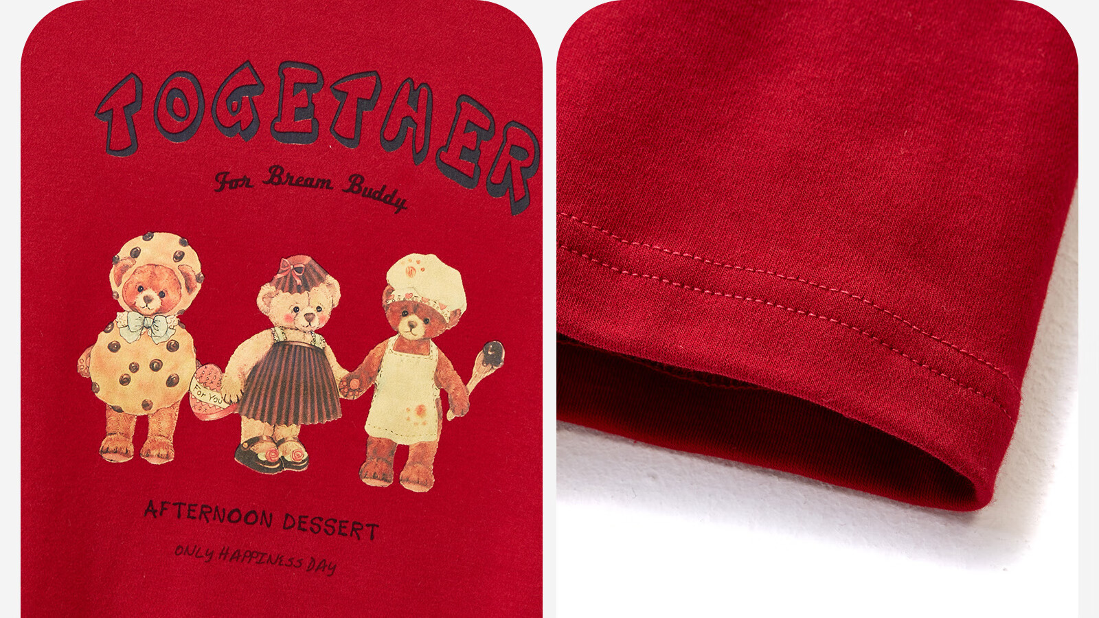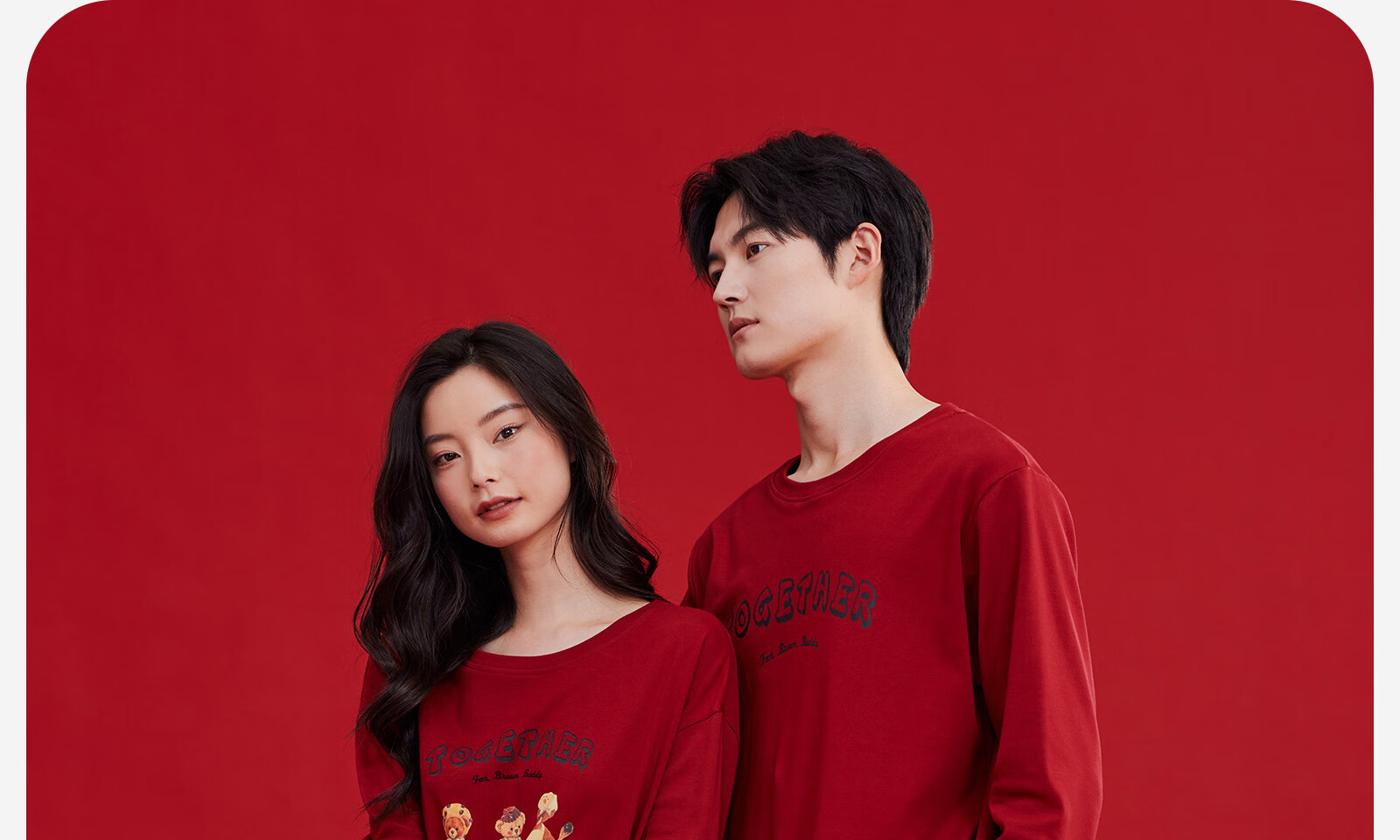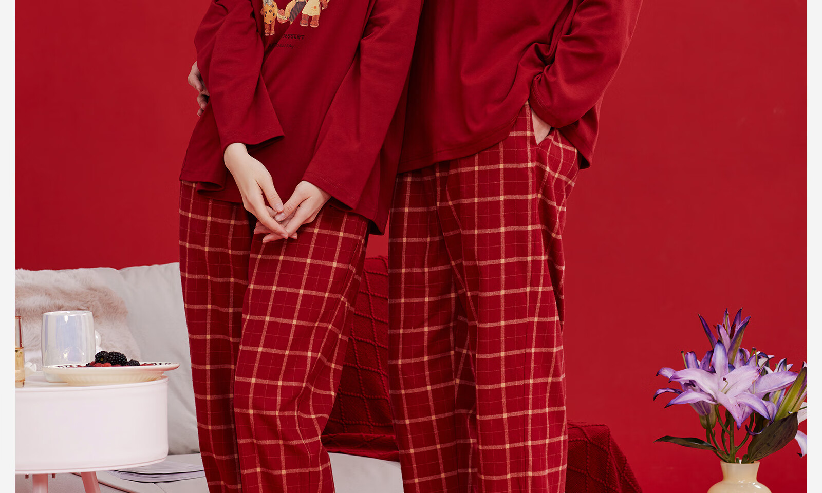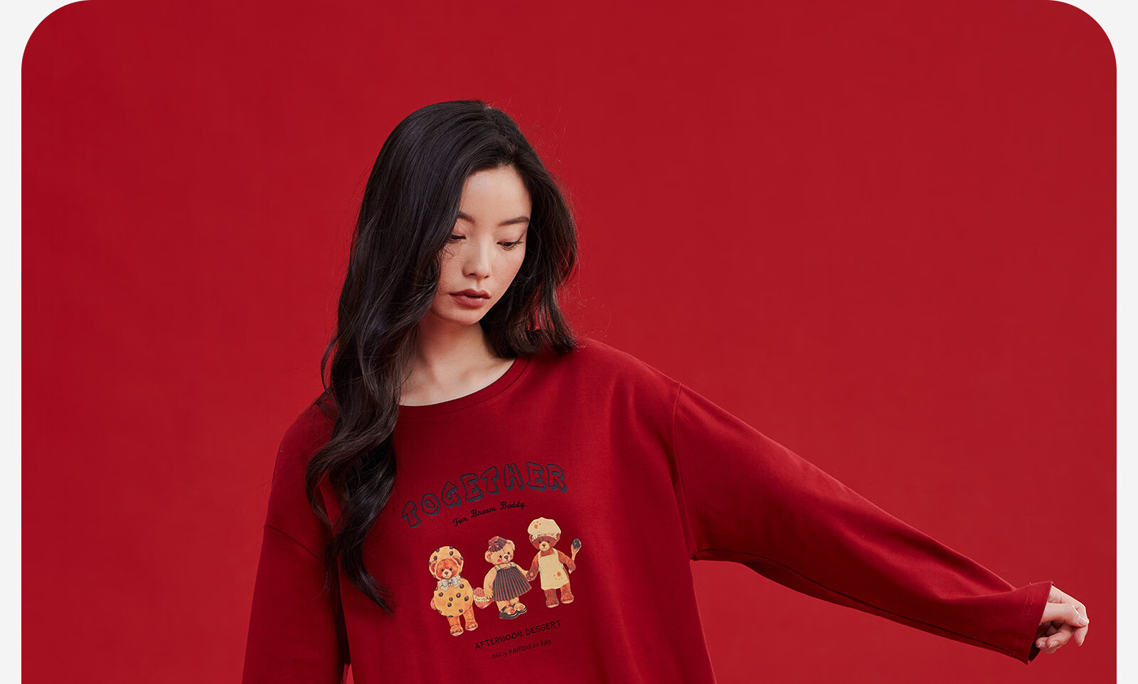 Darli red round neck couple pajamas for women spring and autumn pure cotton long-sleeved cartoon print wedding year red home clothes for men T8245243-029-red women M