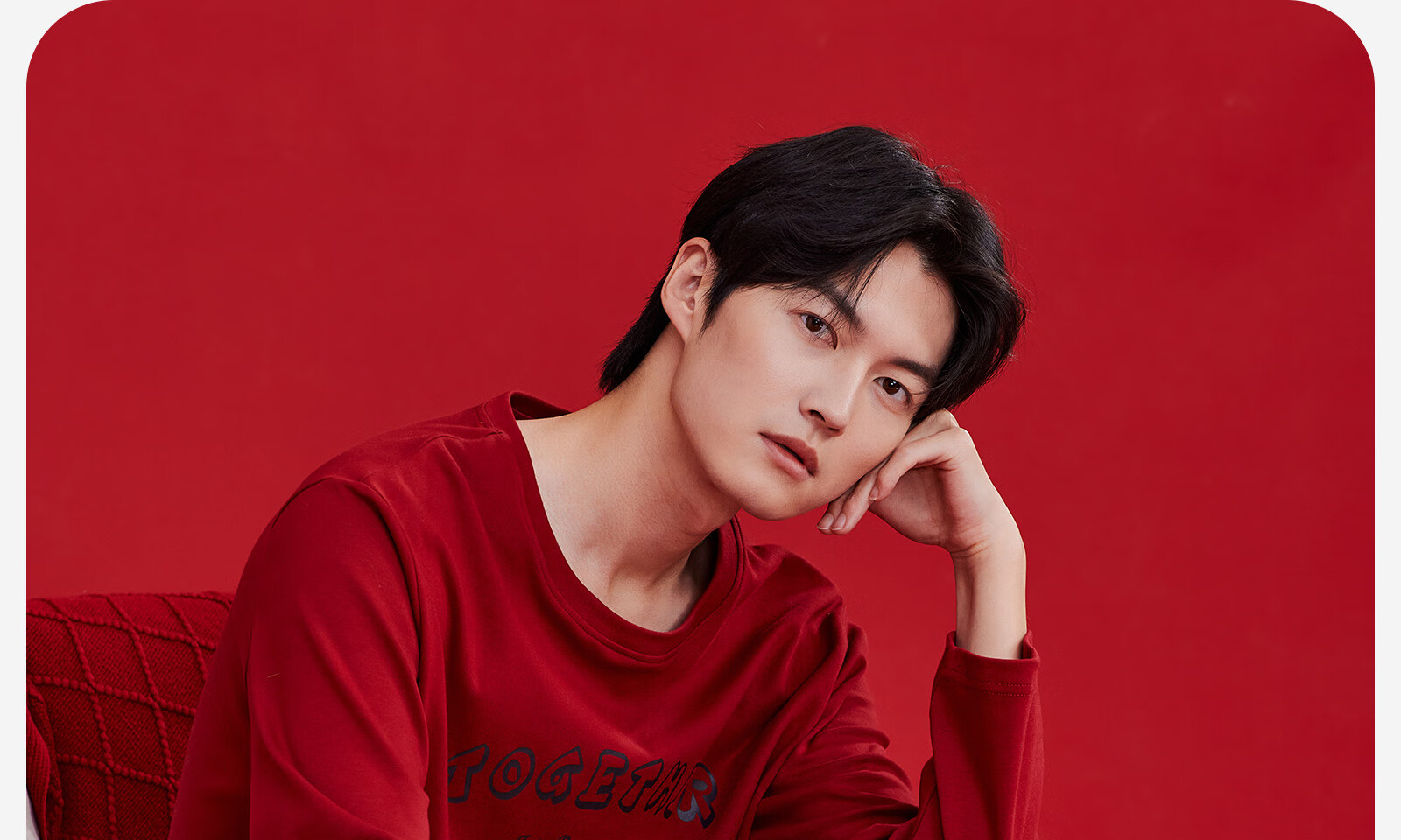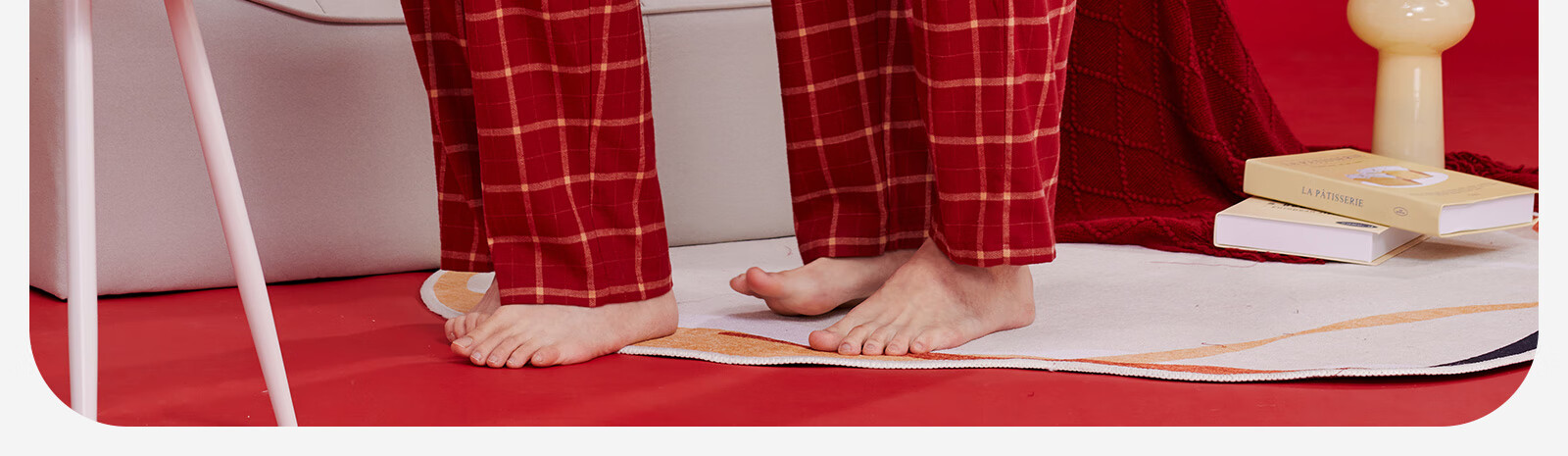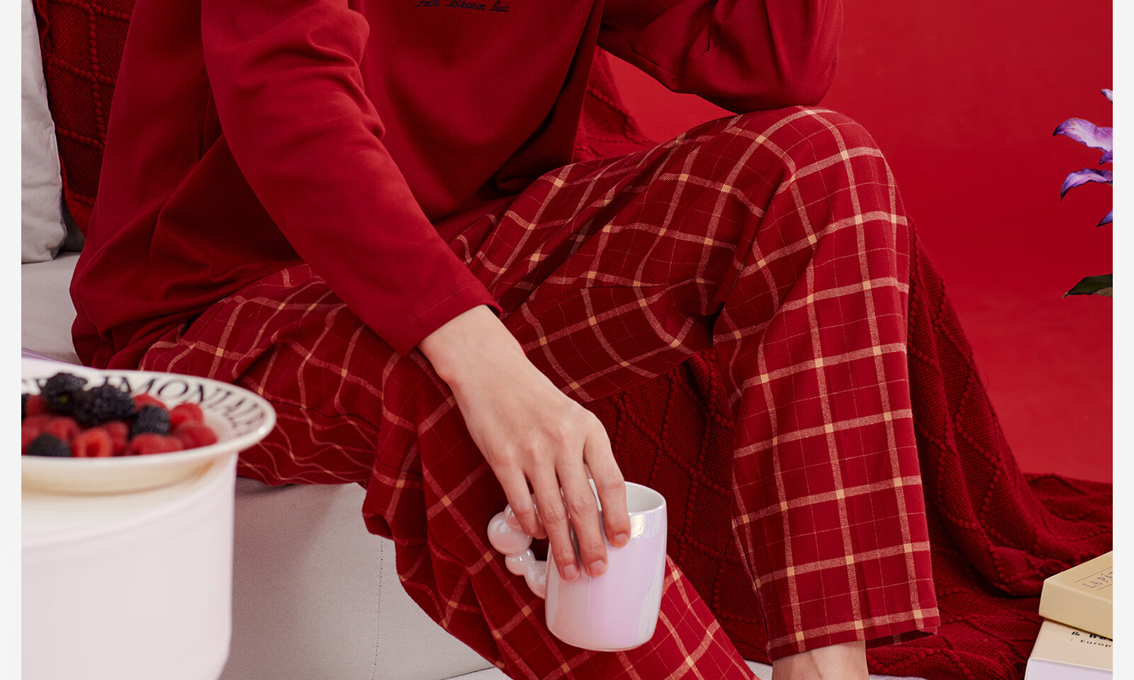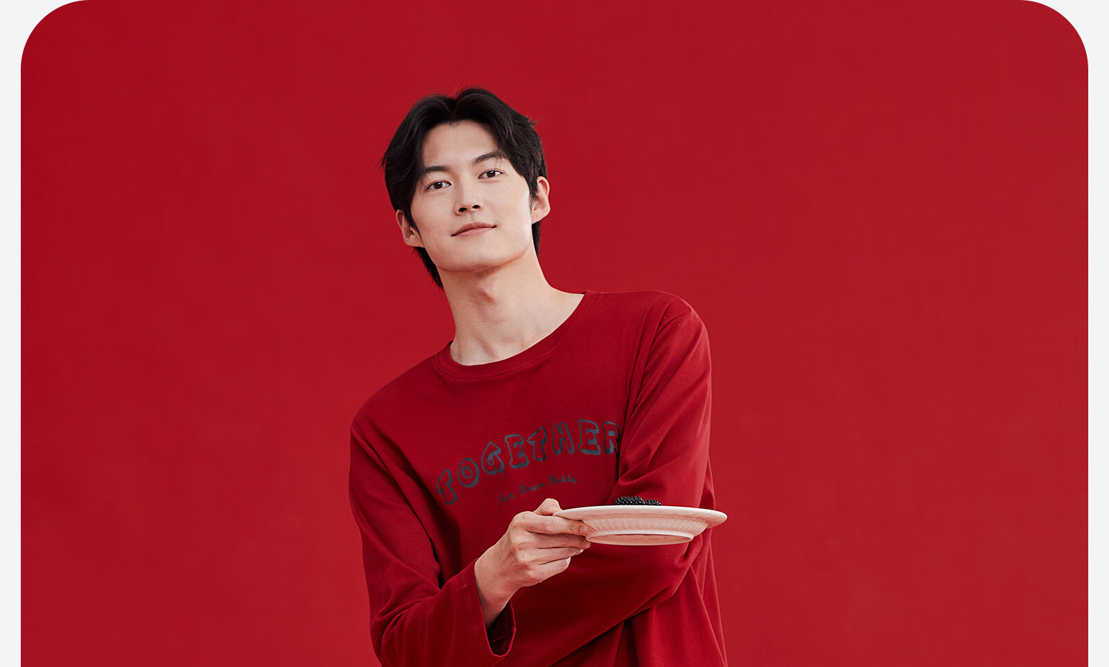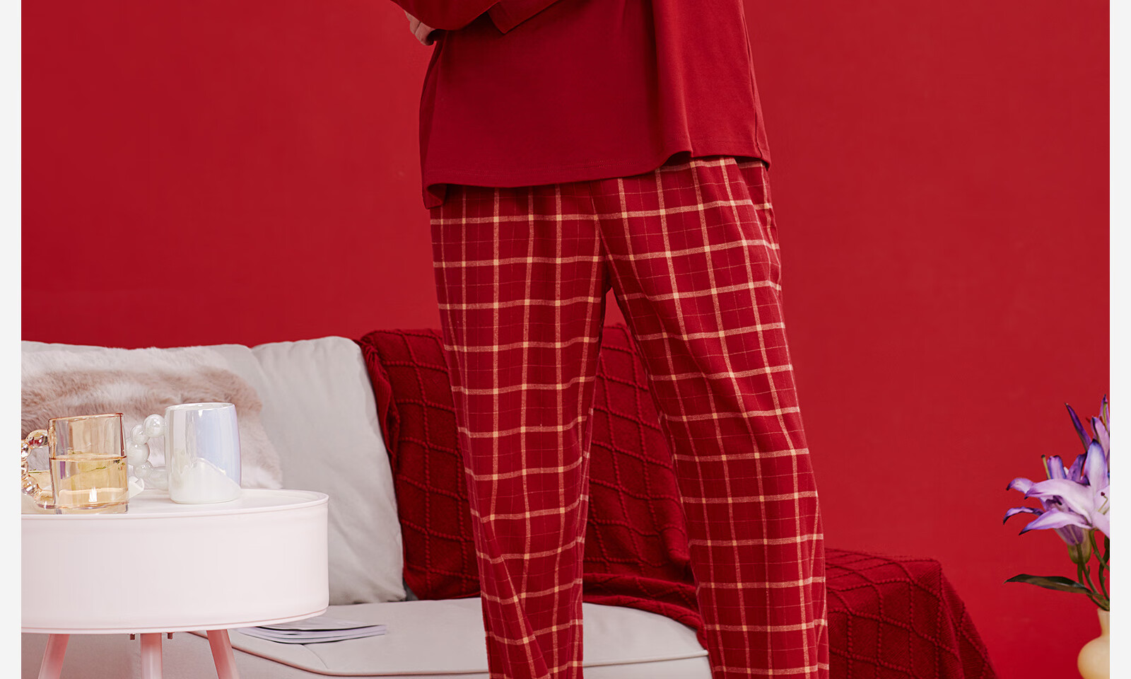 Darli red round neck couple pajamas for women spring and autumn pure cotton long-sleeved cartoon print wedding year red home clothes for men T8245243-029-red women M