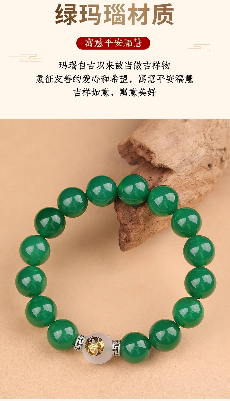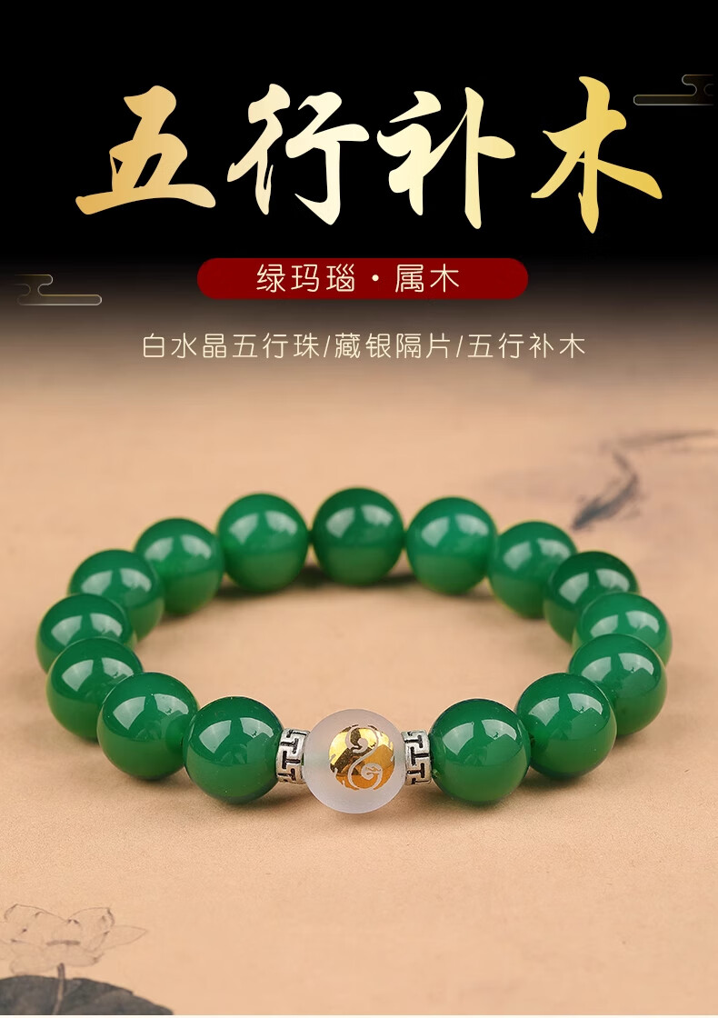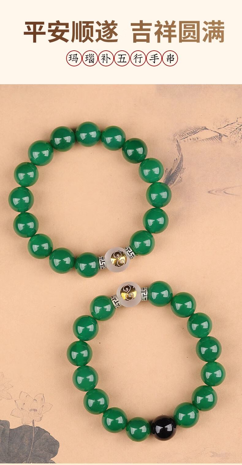 Bao Xin Fanrui BOSFRU Five Elements Missing Wood Green Agate Bracelet Balance Wind Lei Yi Gua Green Joyous Wood Jewelry Men's Bracelet Gift Five Elements Filling Wood Green Agate Bracelet Bead Diameter 14mm