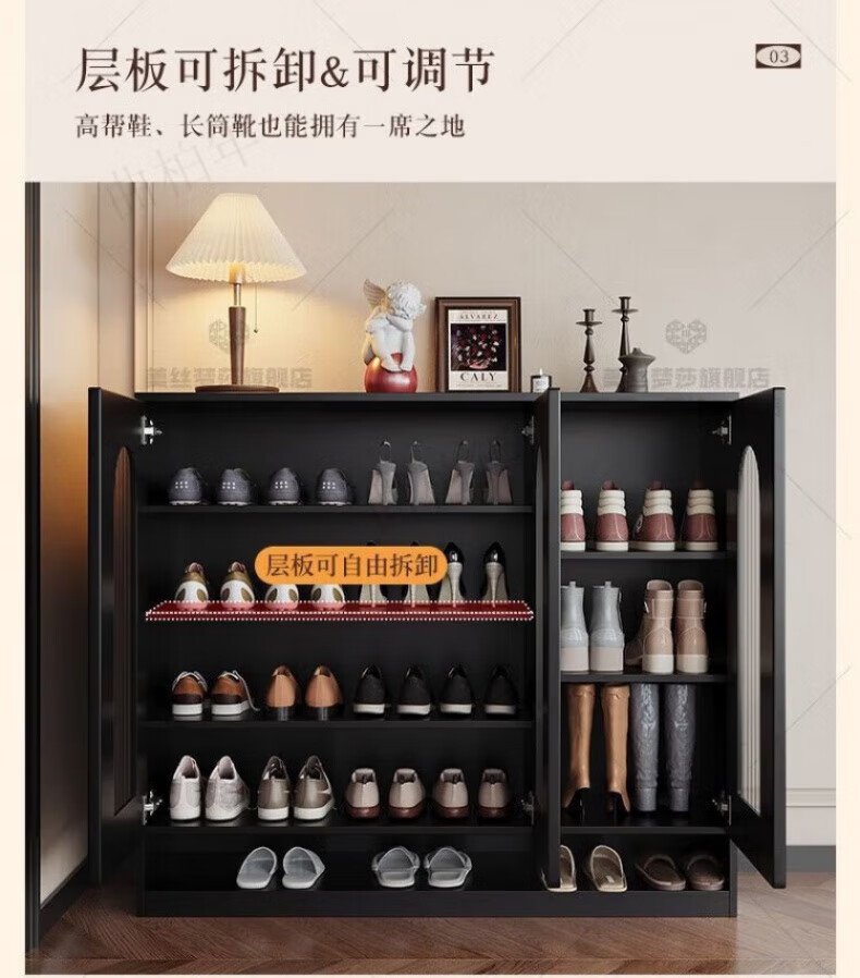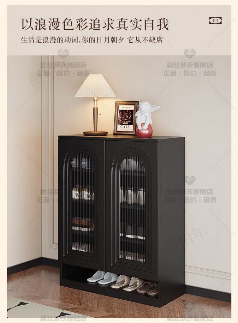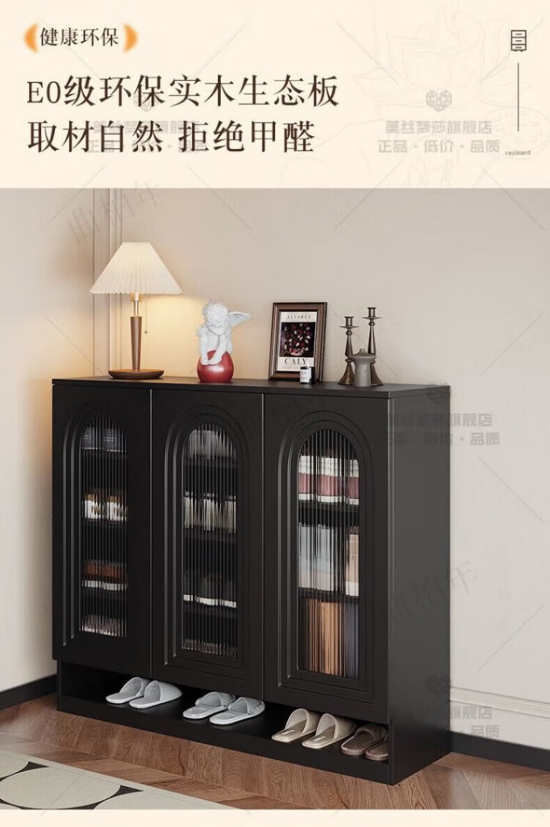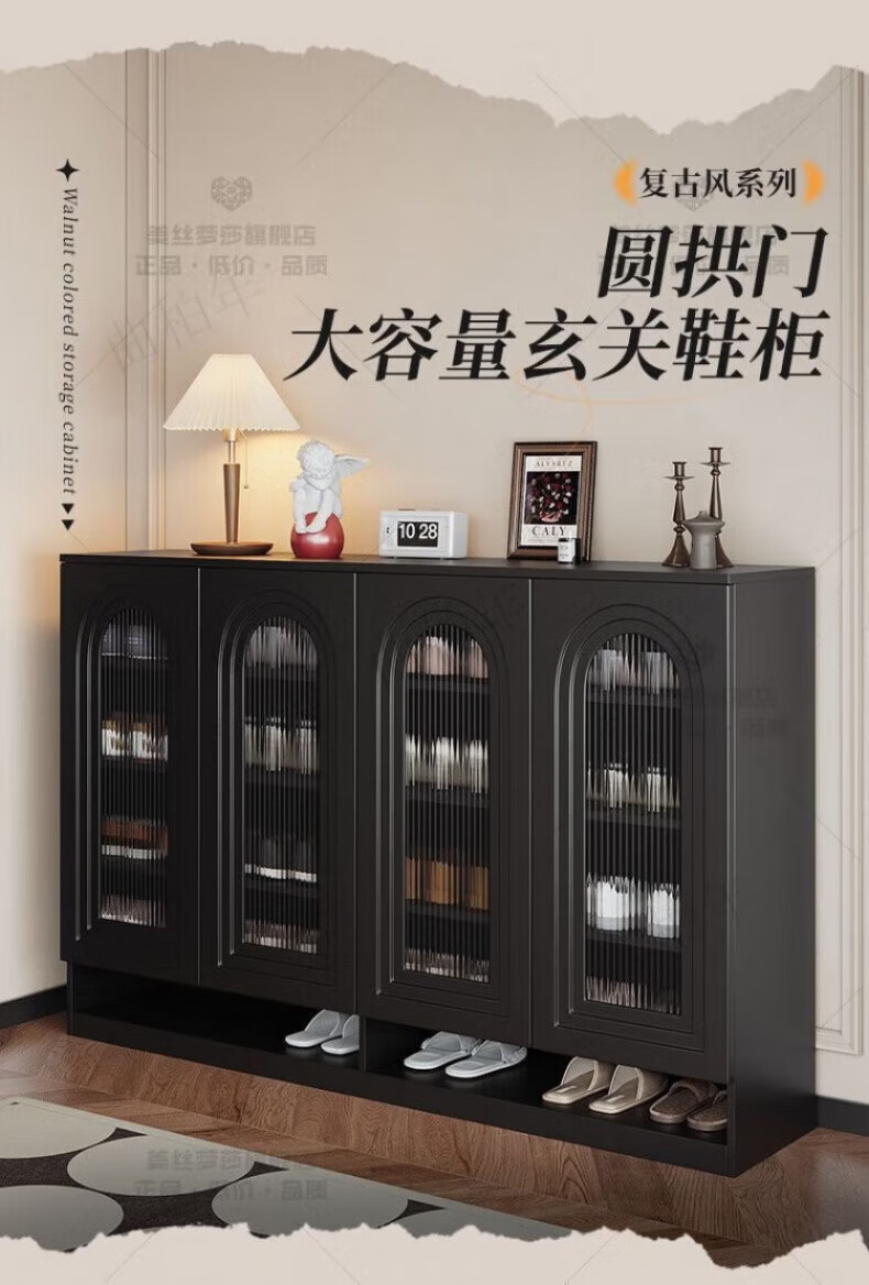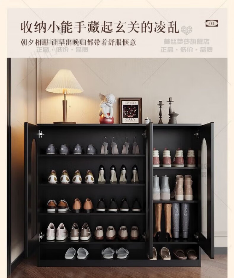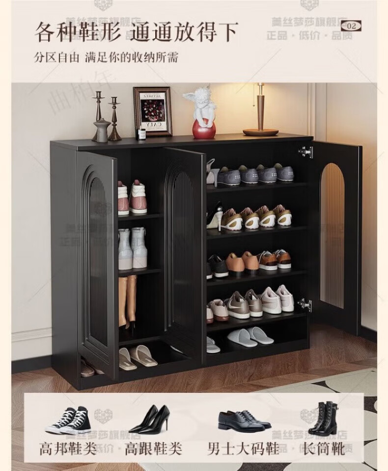 Qu Bainian solid wood shoe cabinet door entrance wall storage cabinet entrance cabinet storage cabinet small apartment simple storage cabinet solid wood 160cm shoe cabinet elegant black