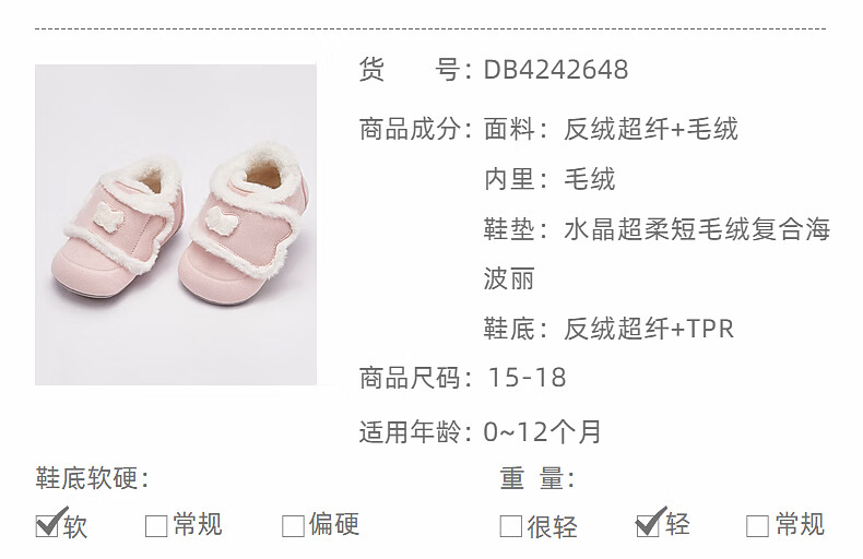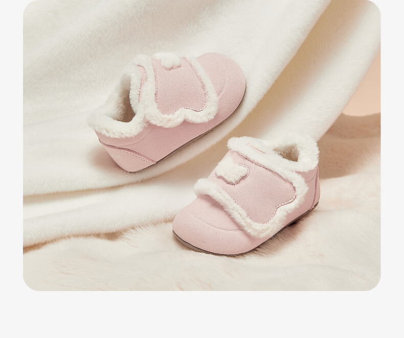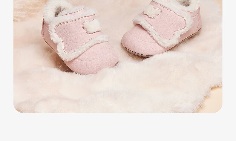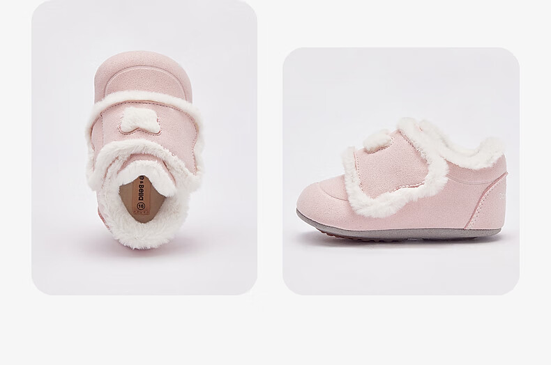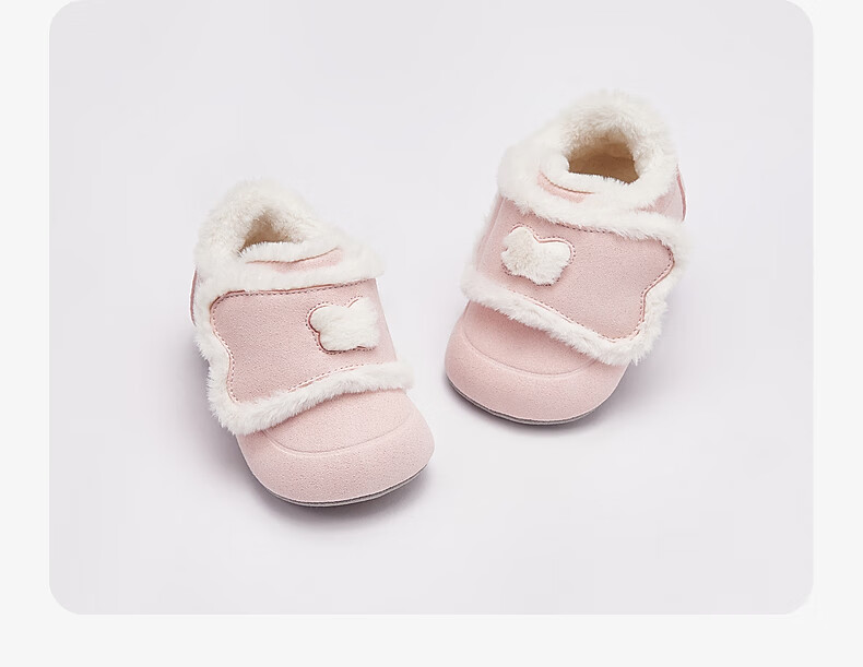 DAVE&BELLA baby shoes plus velvet newborn children's shoes winter new soft-soled cotton shoes for baby girls, children's shoes, toddler shoes, pink, in stock, size 16