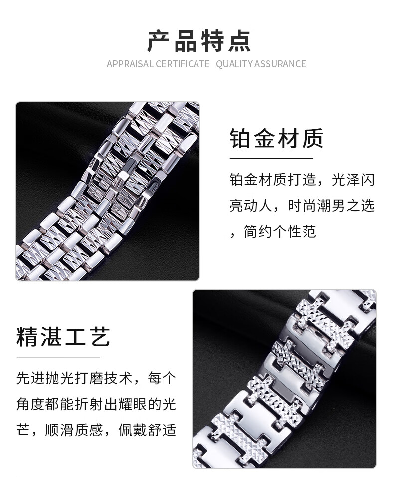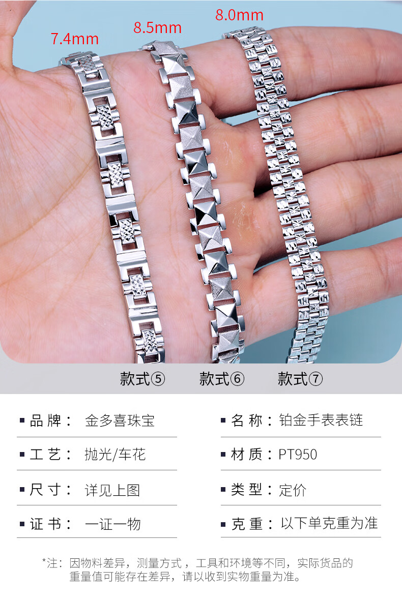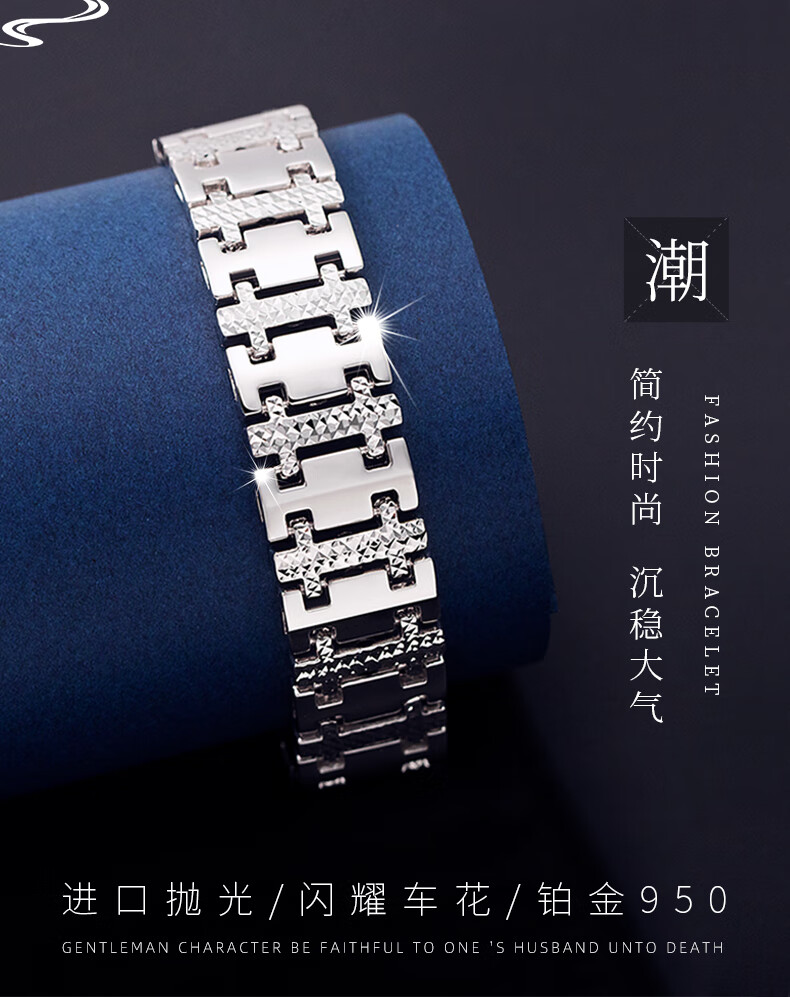 Jinduoxi platinum bracelet men's pt950 men's car flower watch chain pure gold platinum bracelet for men and women couple style 1 about 39.38g about 15mm long about 20 cm
