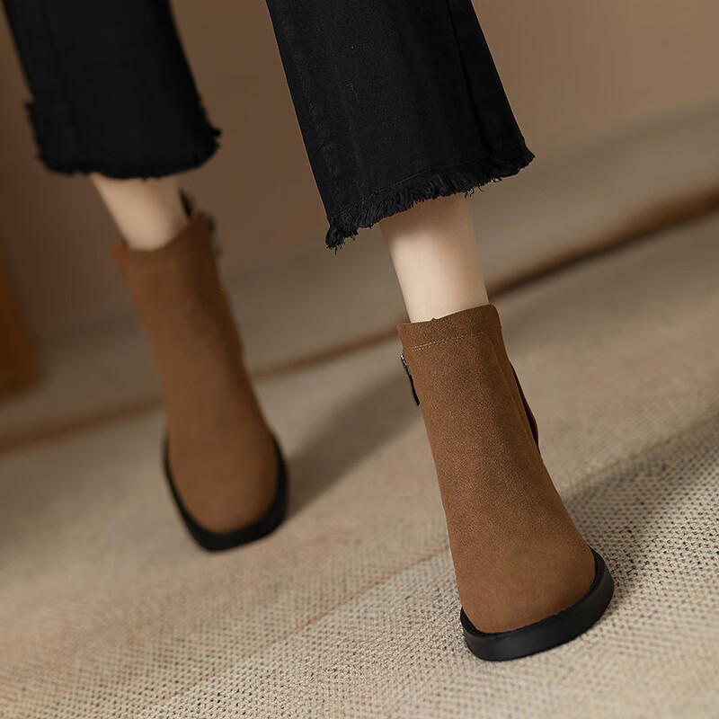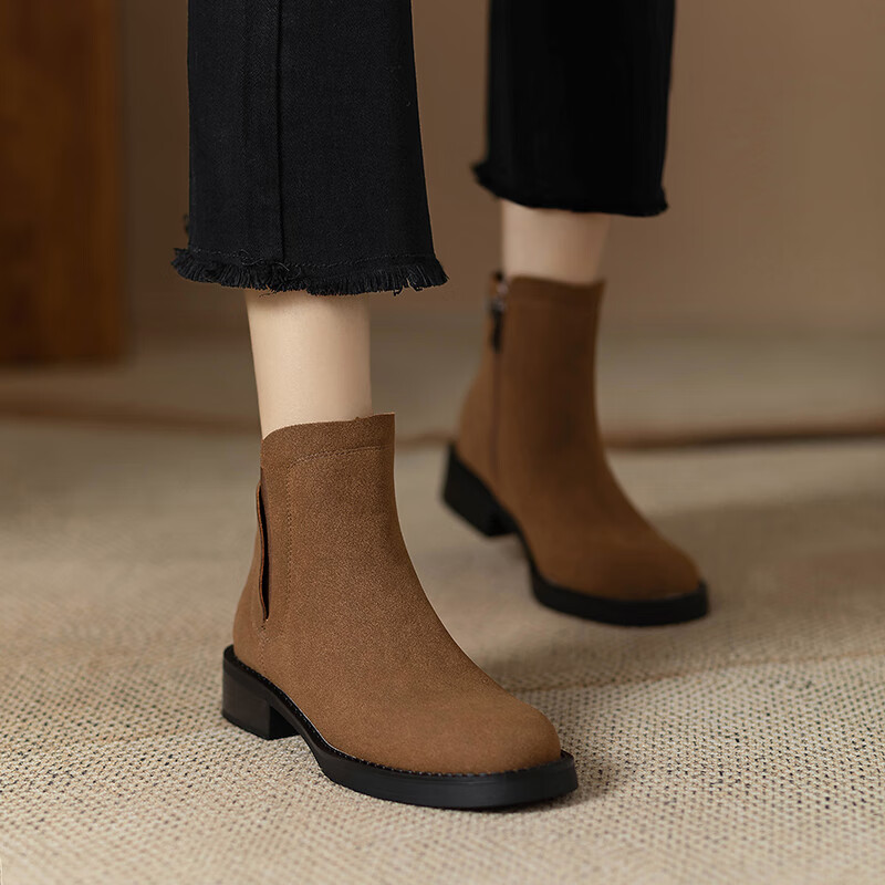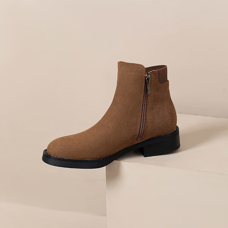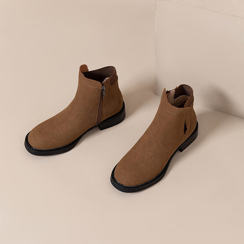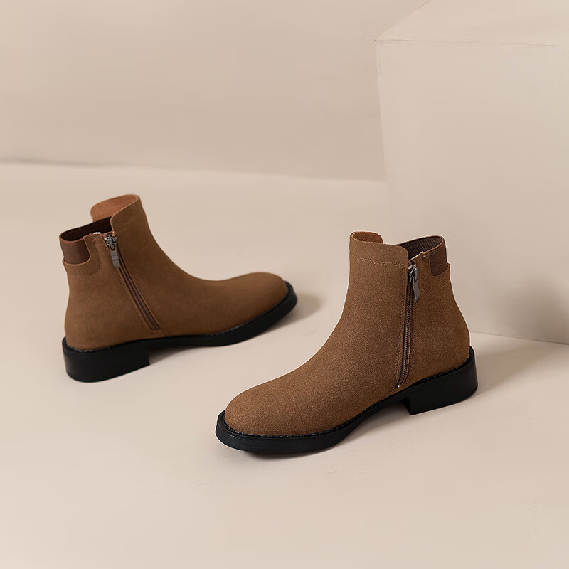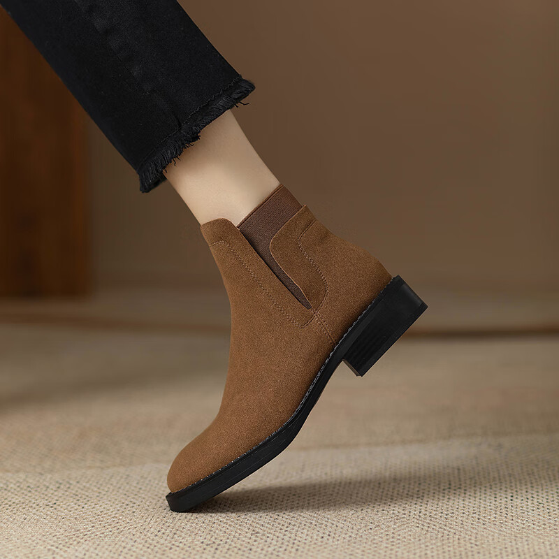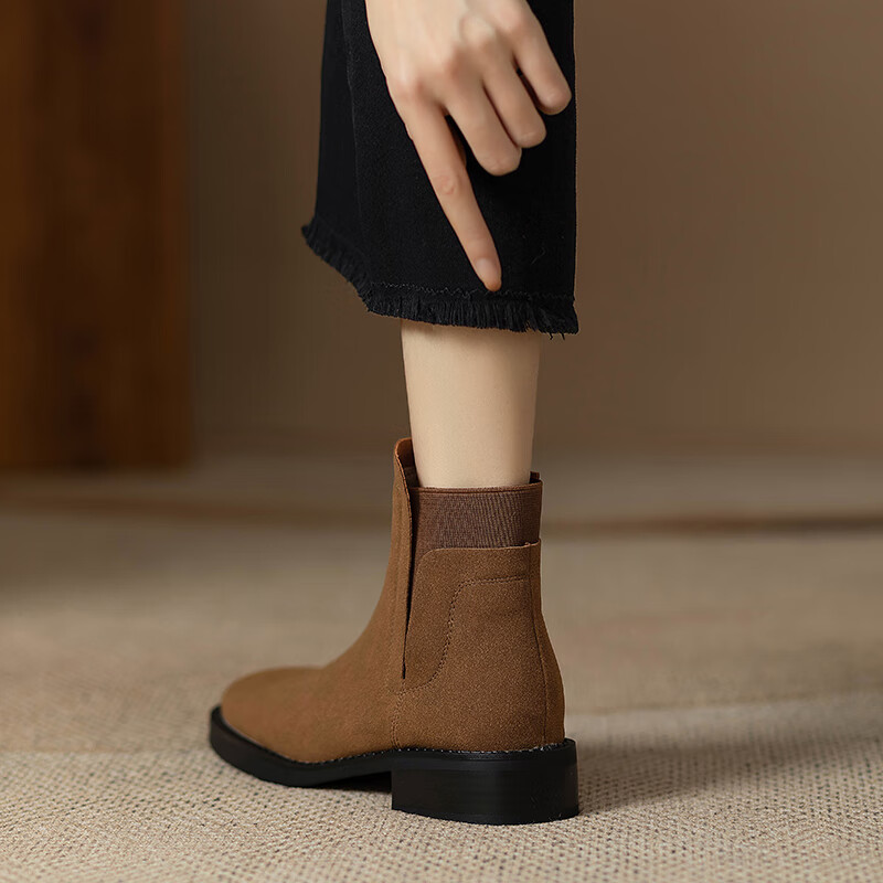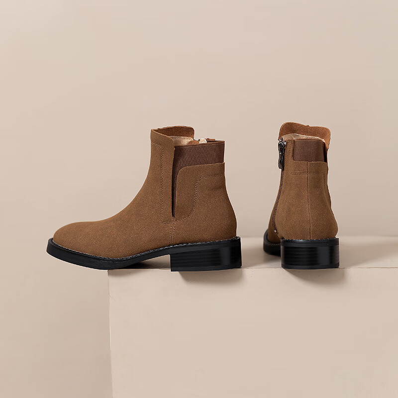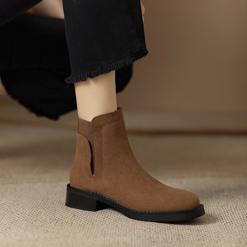 Belle Taju comfortable genuine leather Chelsea short boots for women 2024 new spring and autumn ankle boots flat card yellow (single lining) 37