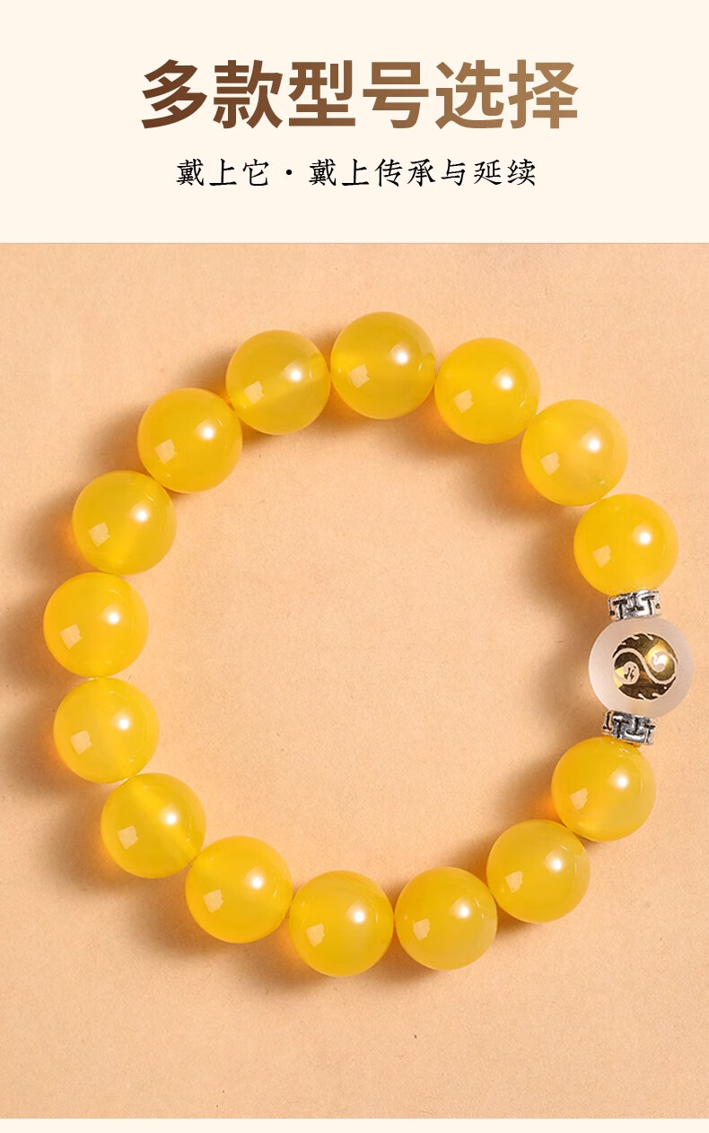 Bao Xinfanrui BOSFRU five elements earth-deficient and earth-replenishing jewelry bracelet, natural crystal, customized yellow agate earth-loving bracelet for boyfriend, five-star replenishing earth-yellow agate bracelet, bead diameter 14mm