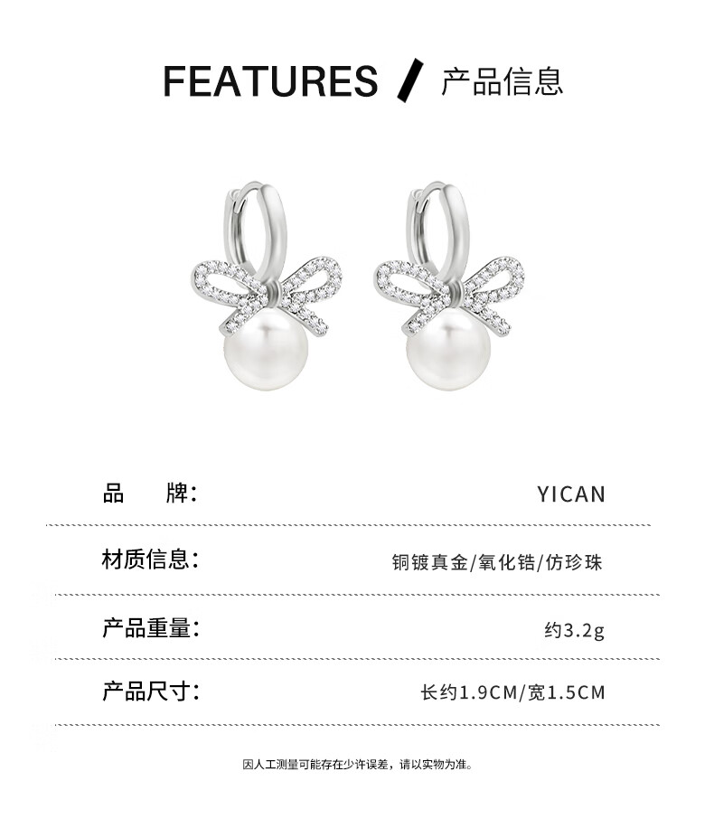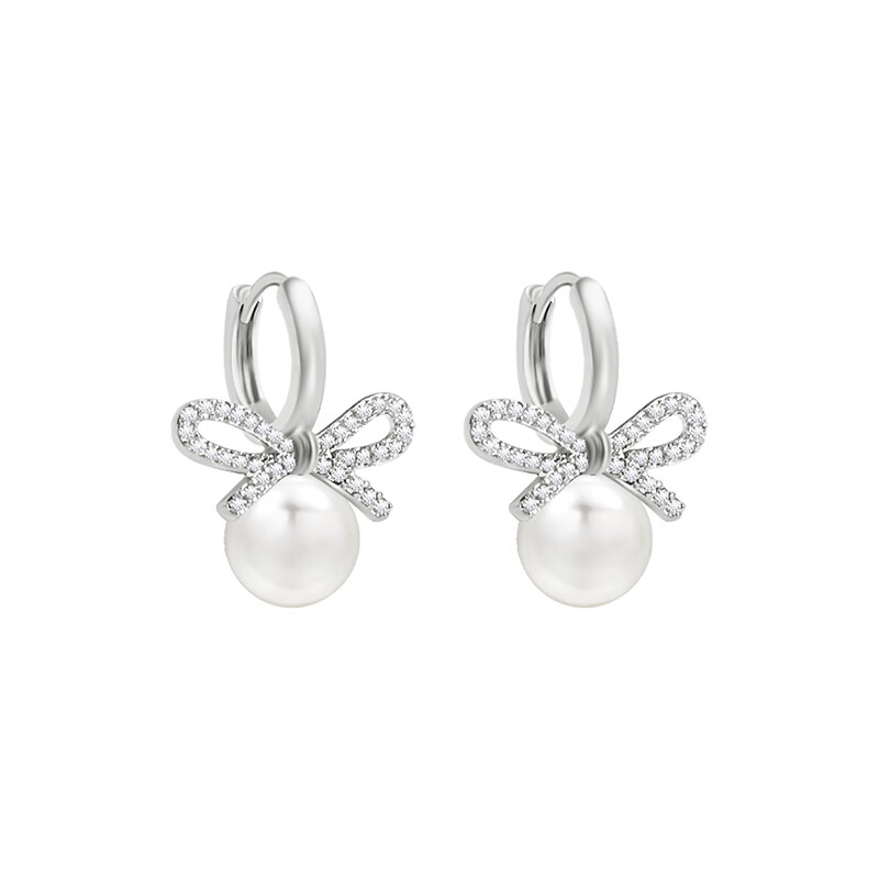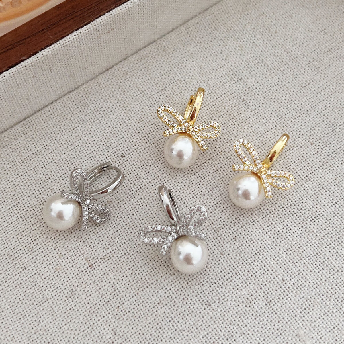 Yichan Japanese and Korean rhinestone bow imitation pearl earrings for women high-end earrings 2025 new hot style niche temperament earrings rhinestone silver bow pearl earrings