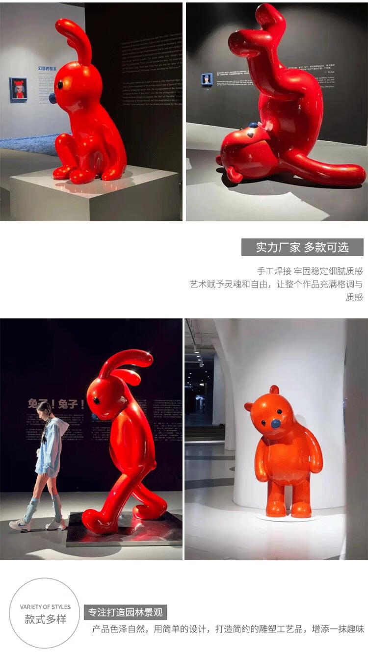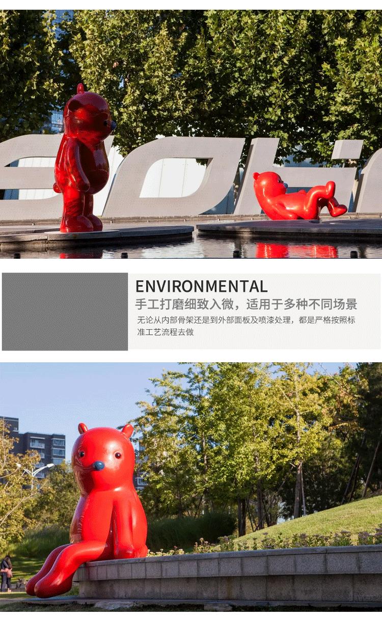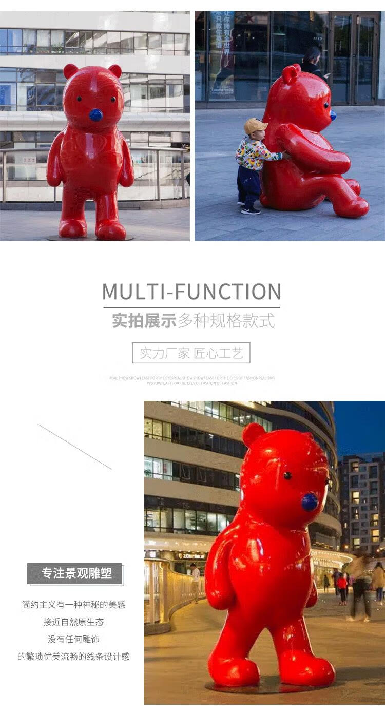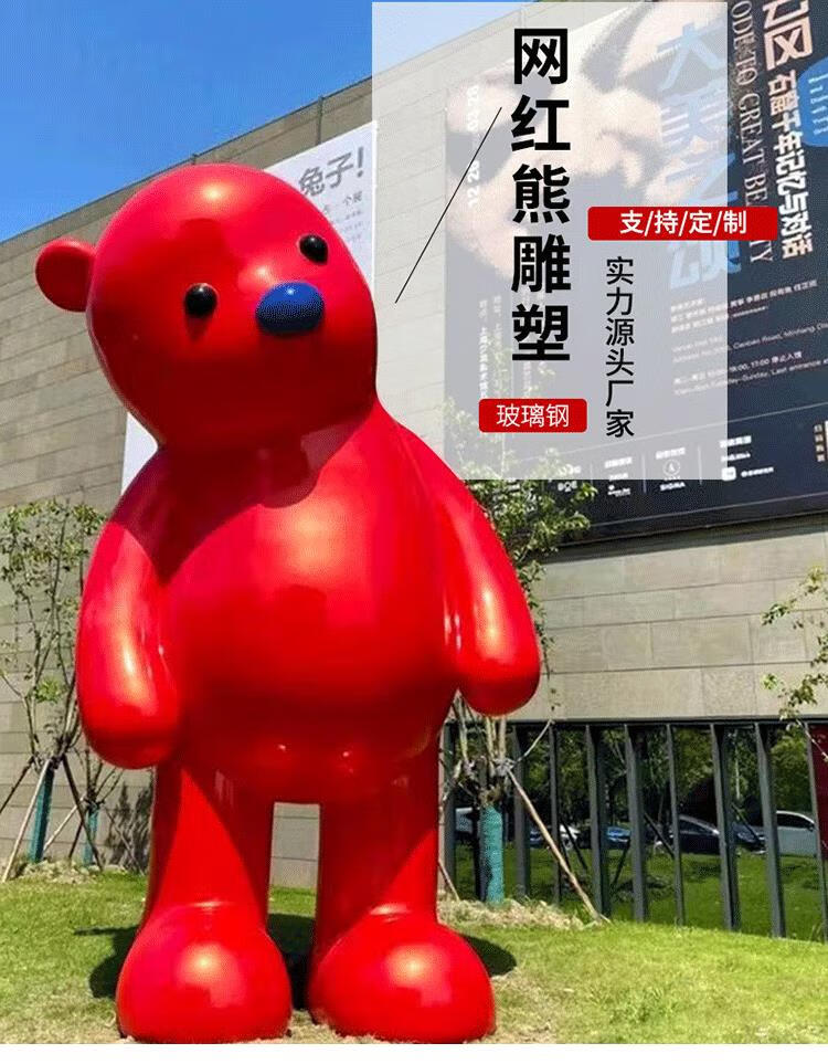 Fiberglass internet celebrity cartoon violent bear Zhang Zhanzhan rabbit doll mascot sculpture red bear outdoor ornament bear sitting posture 140cm fixed jin
