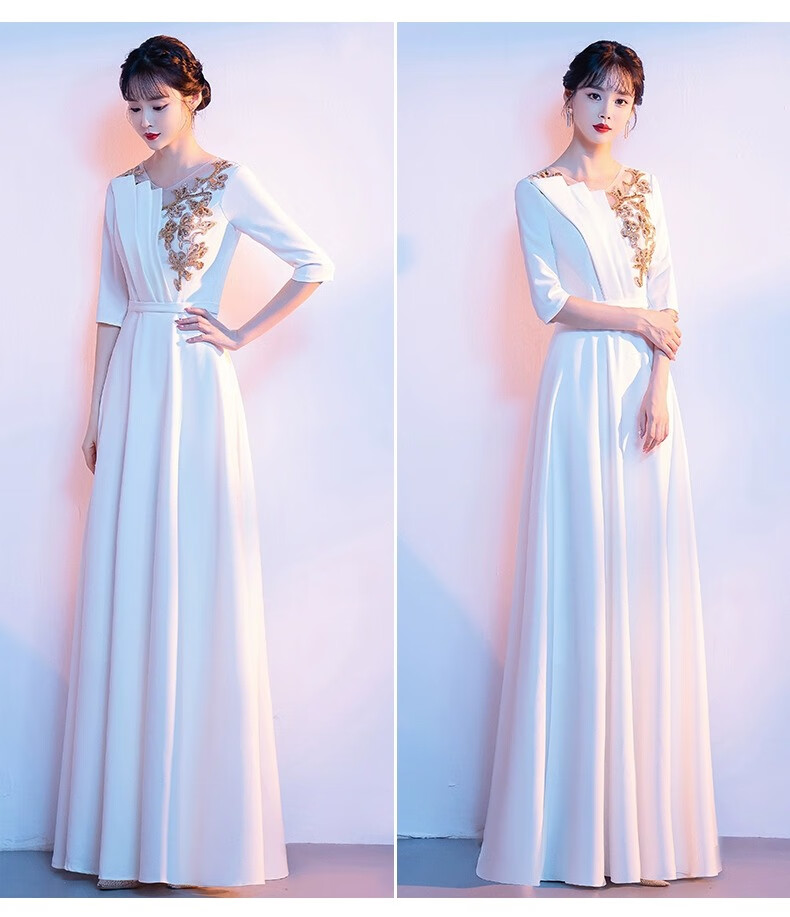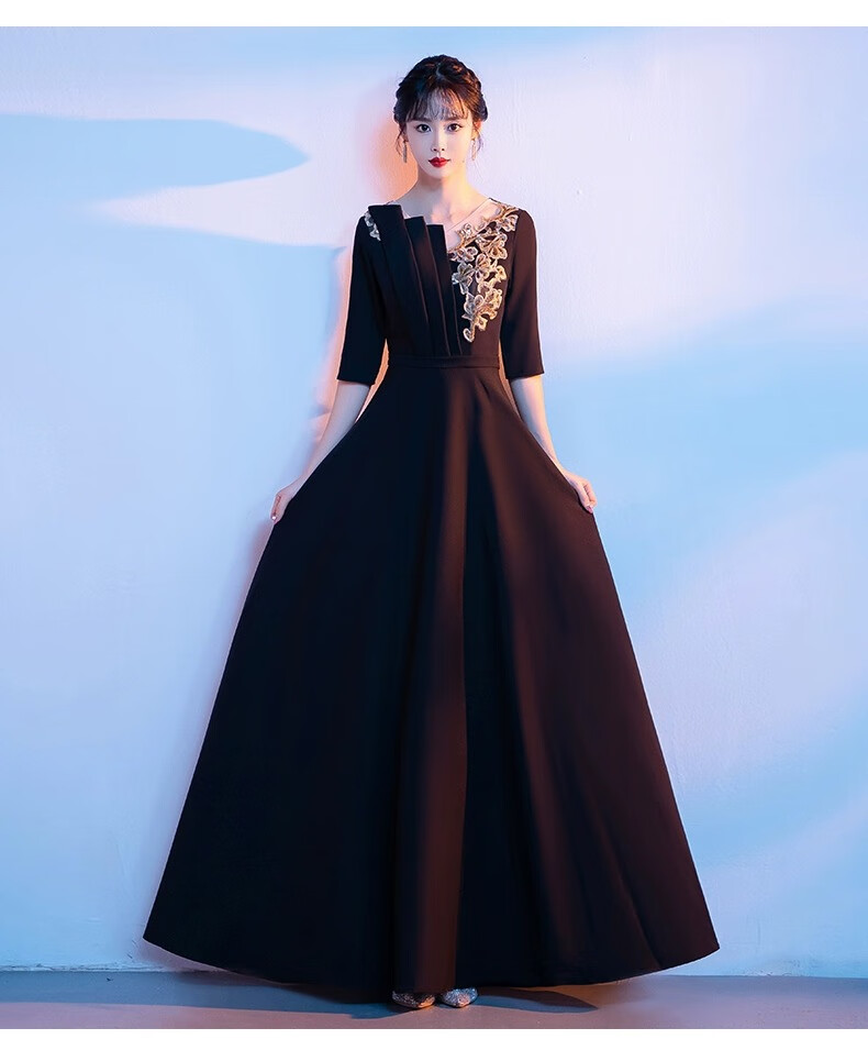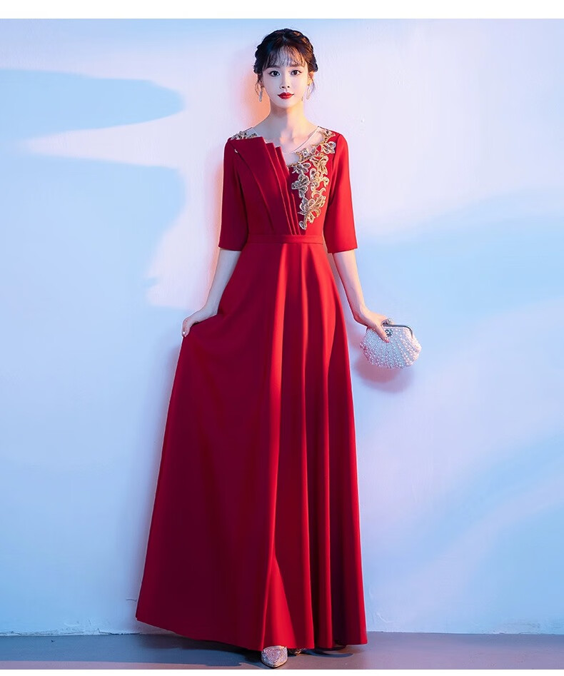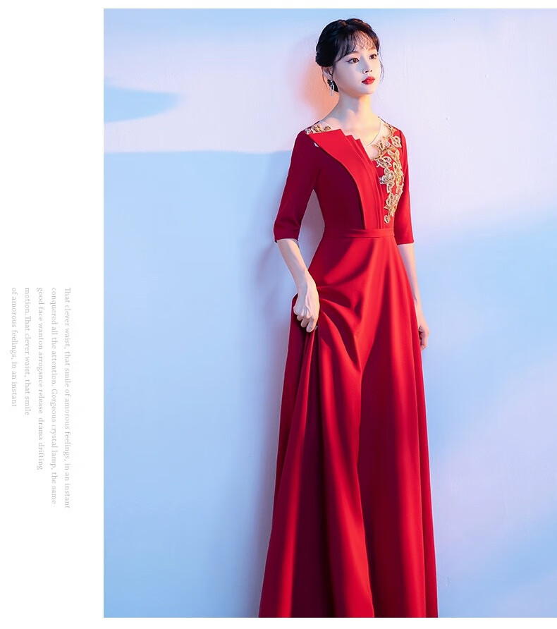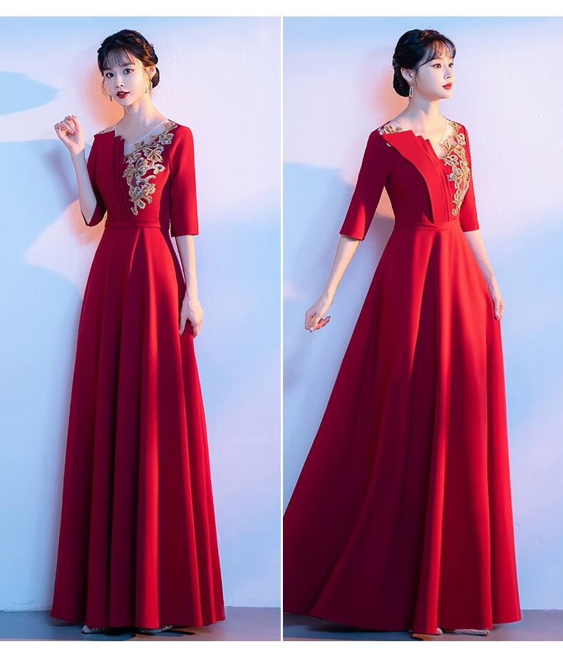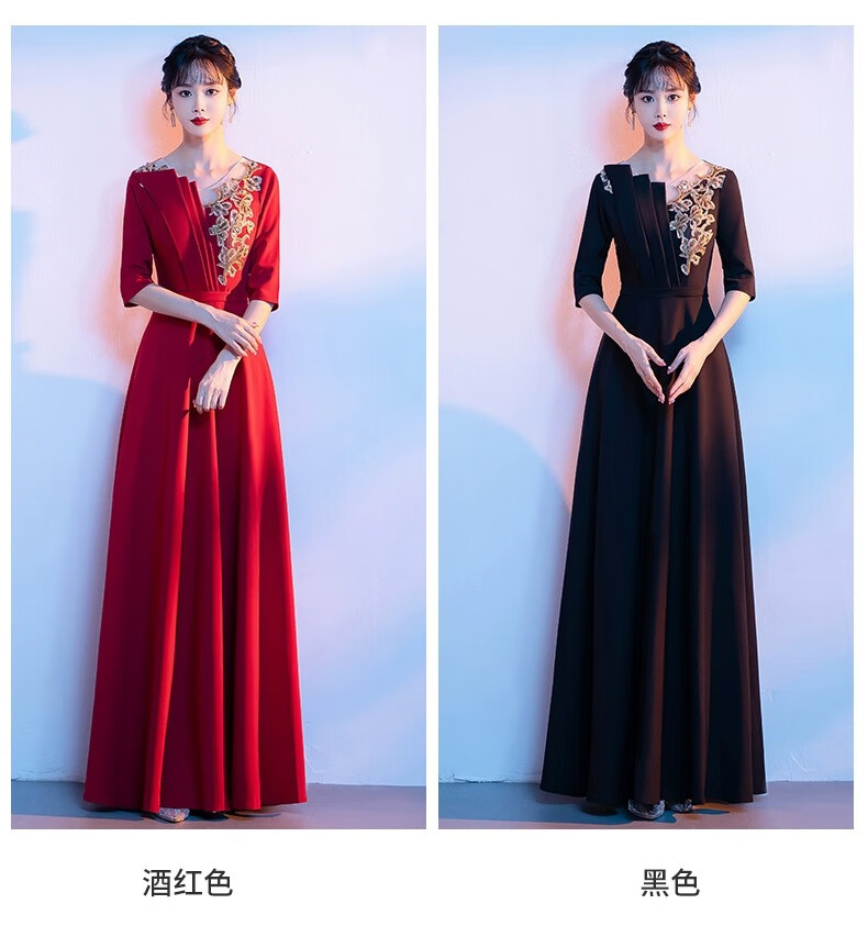 Li Baixin National Day Chorus Performance Clothing Women's Long Skirt New Adult Red Song Competition Stage Performance Host Evening Dress Burgundy M Recommended 90-100Jin Jin is equal to 0.5 kg