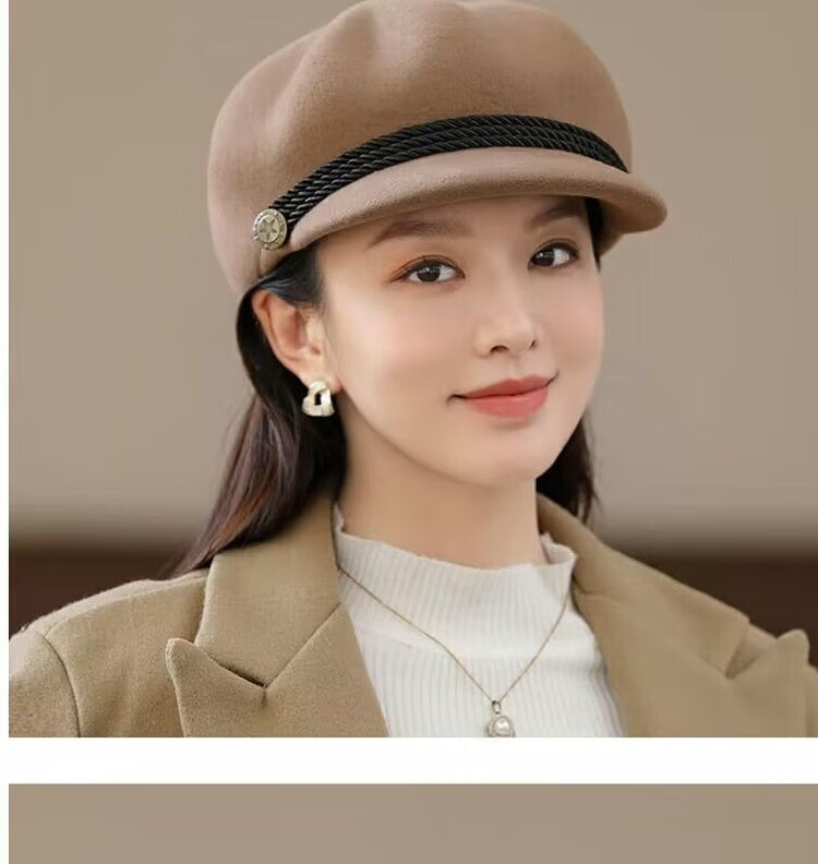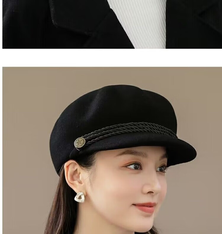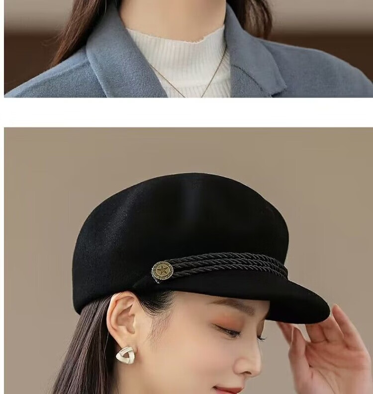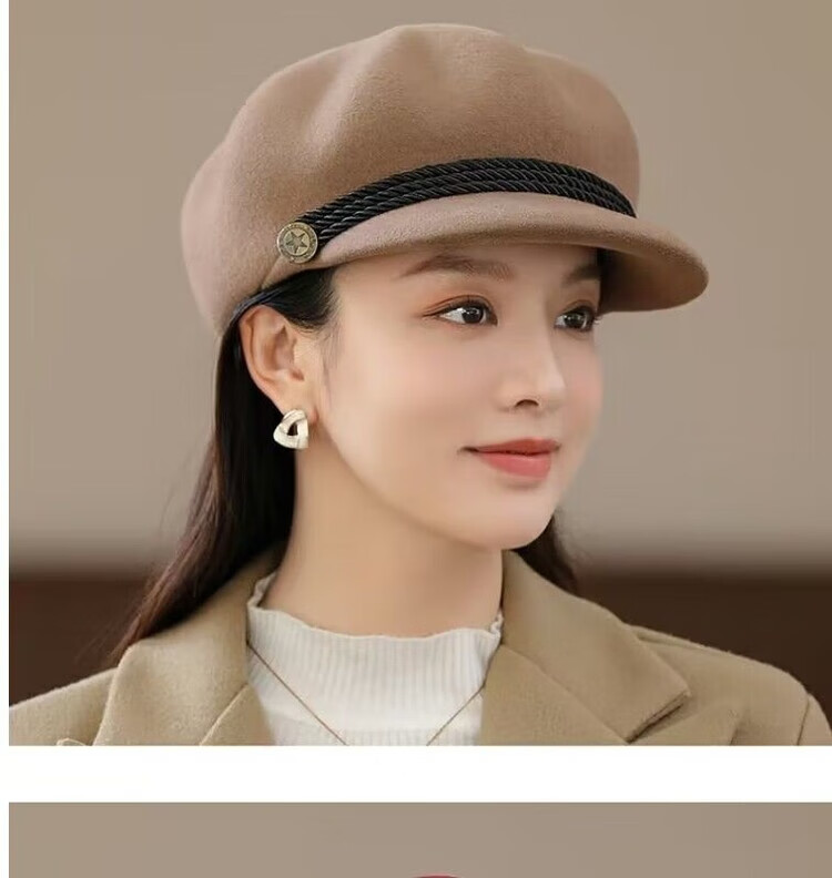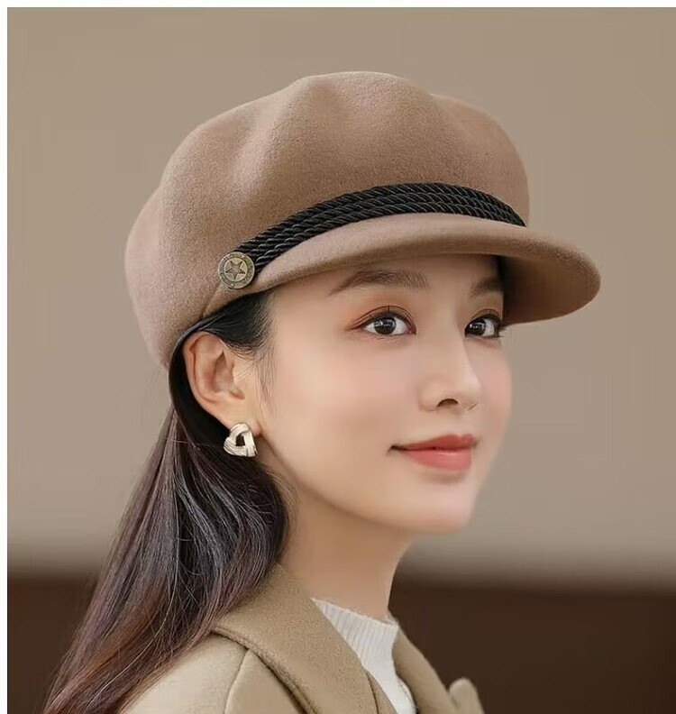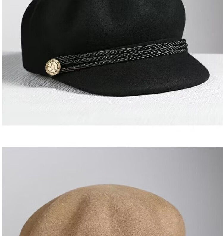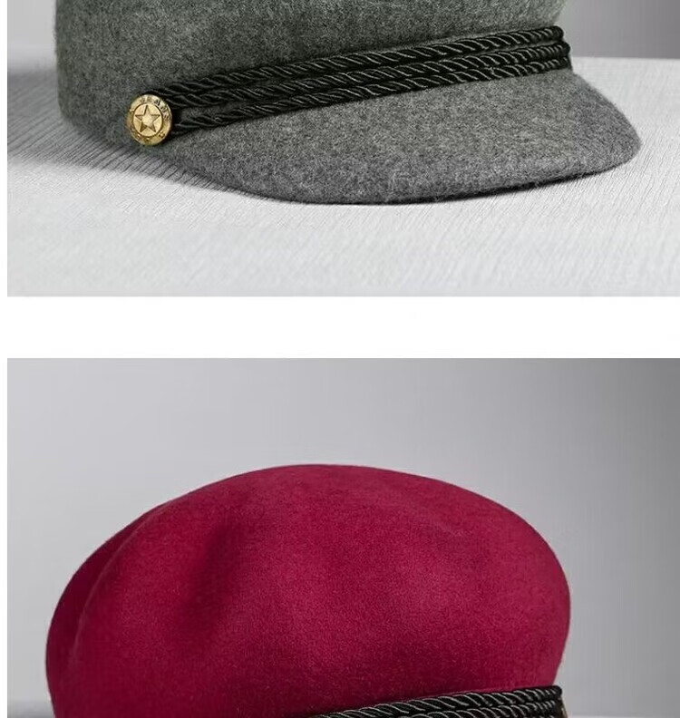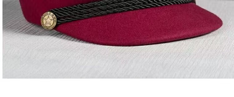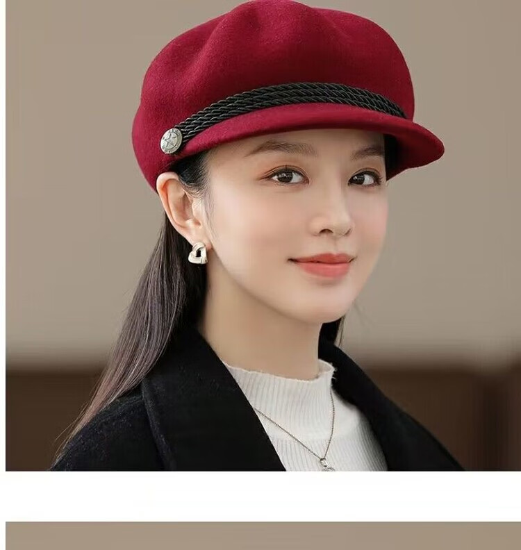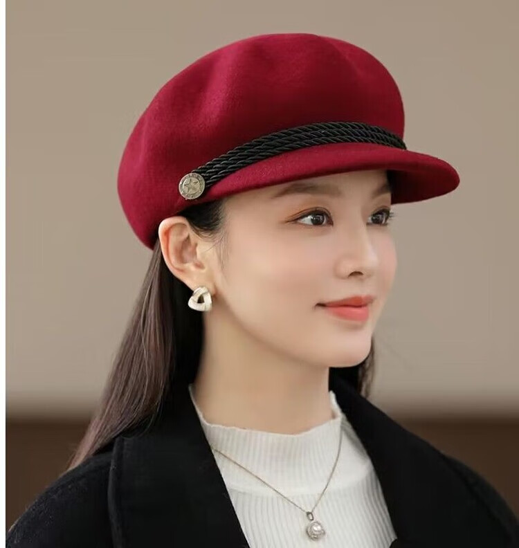Hengyuanxiang Hat Women's Korean Style Autumn and Winter Woolen Beret British Temperament Fashion Versatile Duck Bill Octagon Hat Burgundy (Star) Adjustable (54-59cm)