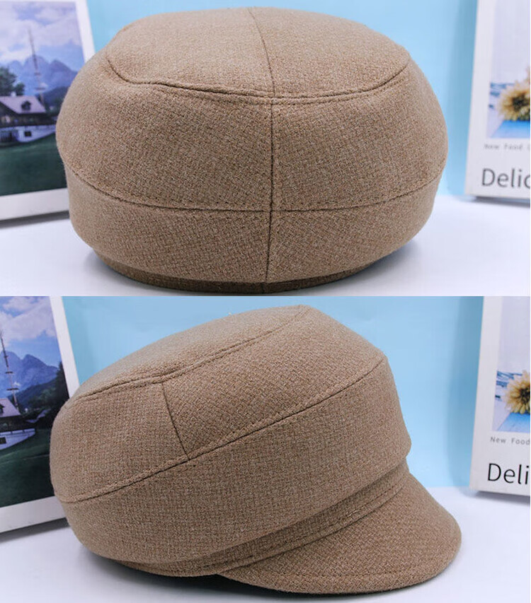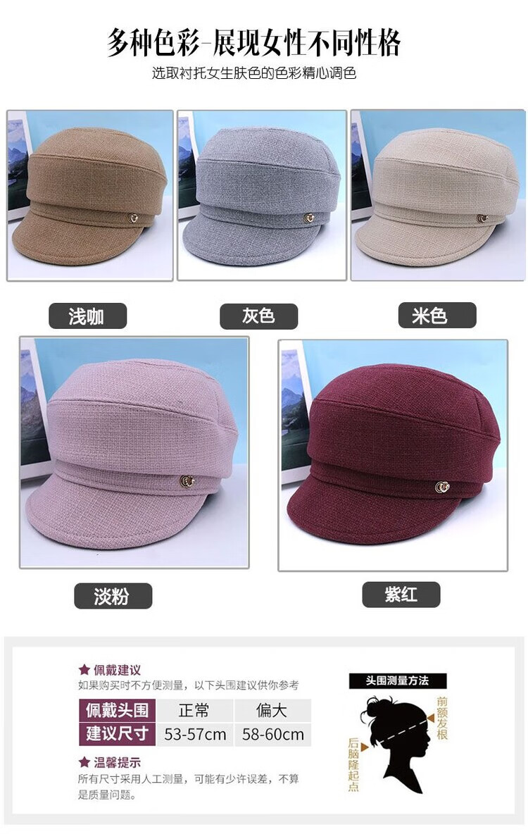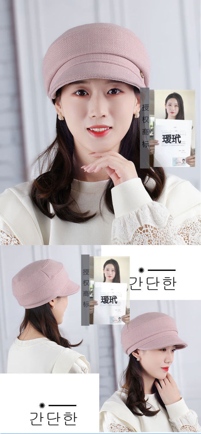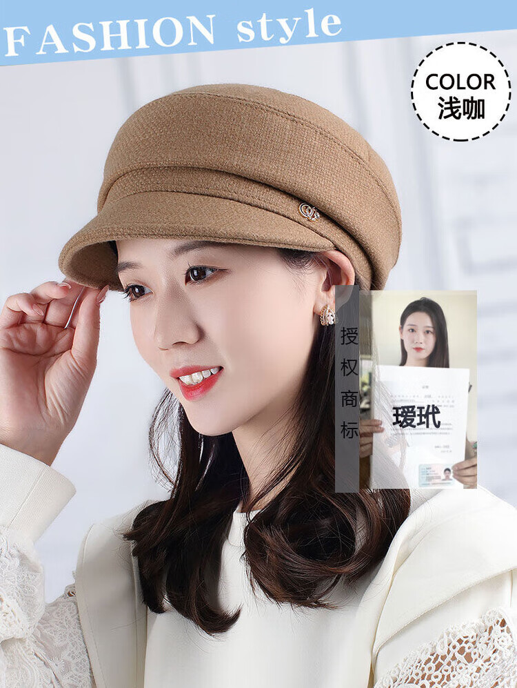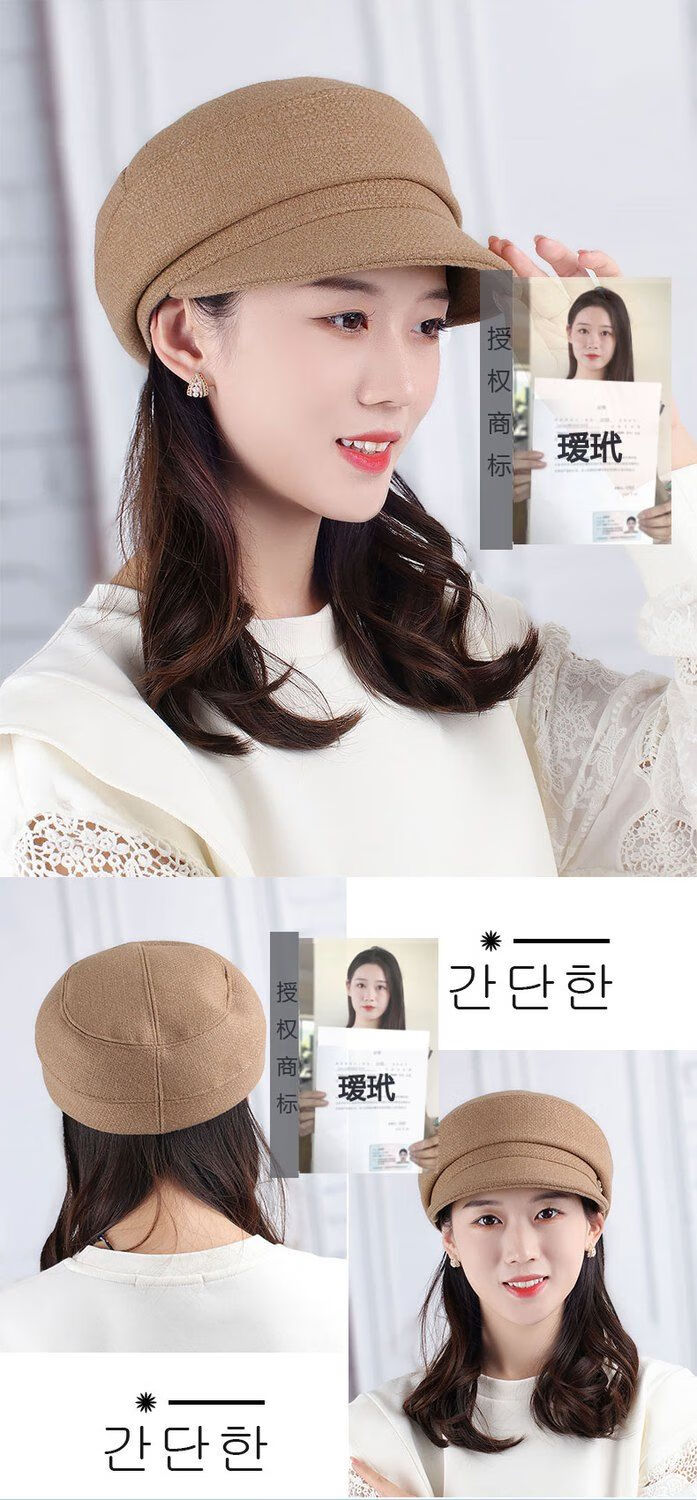 Hengyuanxiang Autumn and Winter Metal Decoration Feminine Peaked Cap Elegant and Versatile Woolen Beret Dome Beret Net Red Hat Autumn Beige 54-58 Drawstring