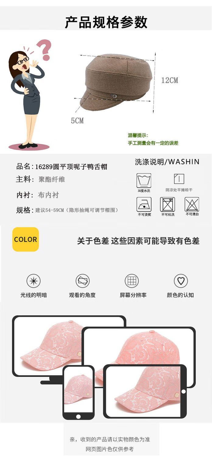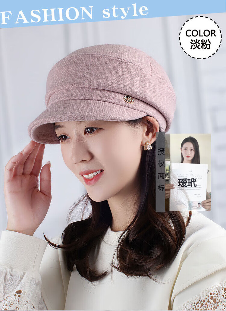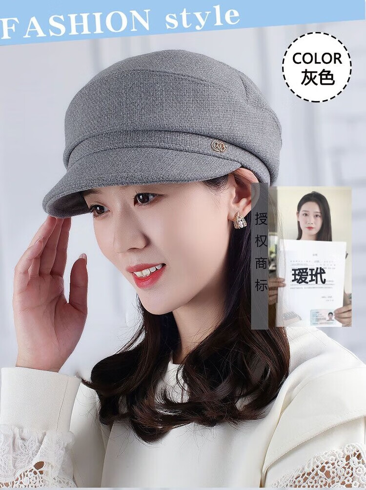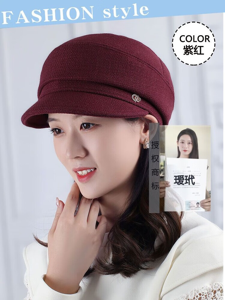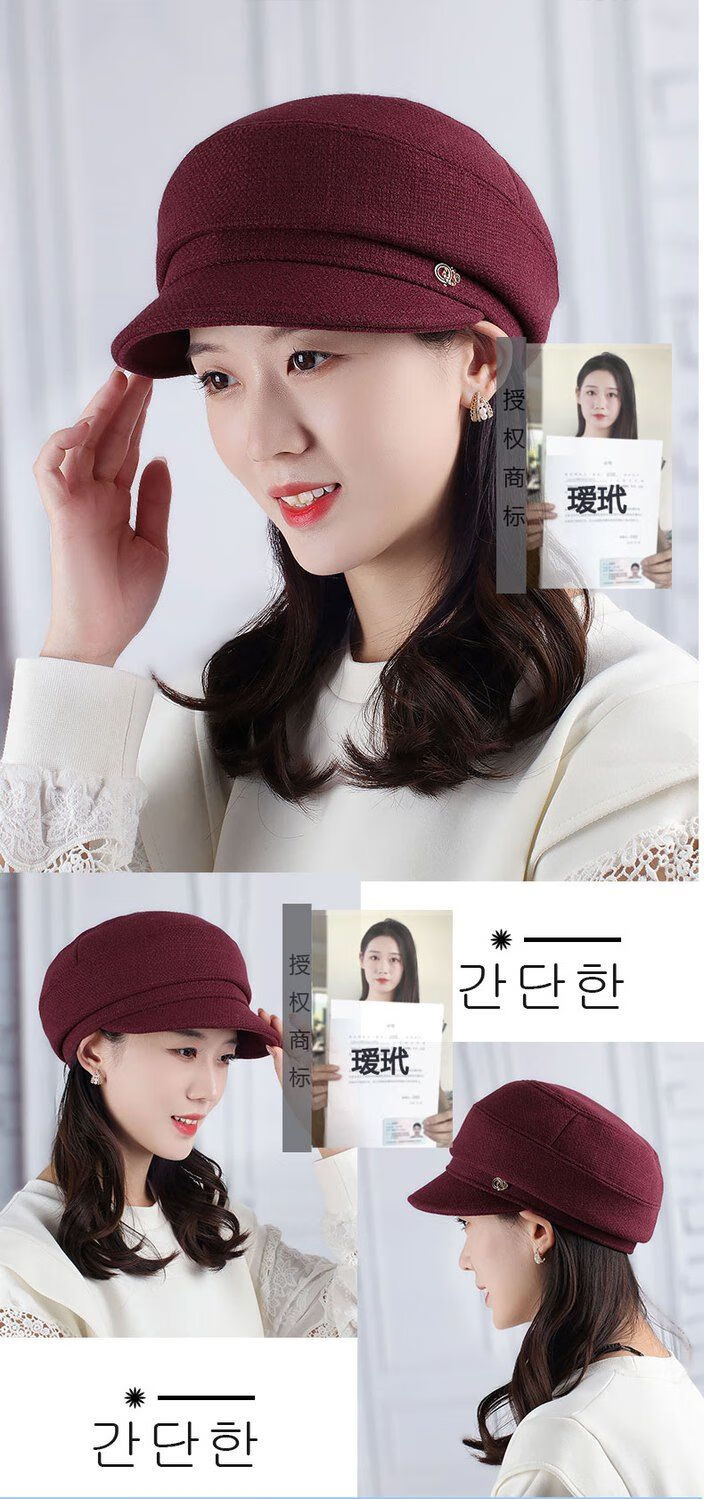 Hengyuanxiang Autumn and Winter Metal Decoration Feminine Peaked Cap Elegant and Versatile Woolen Beret Dome Beret Net Red Hat Autumn Beige 54-58 Drawstring