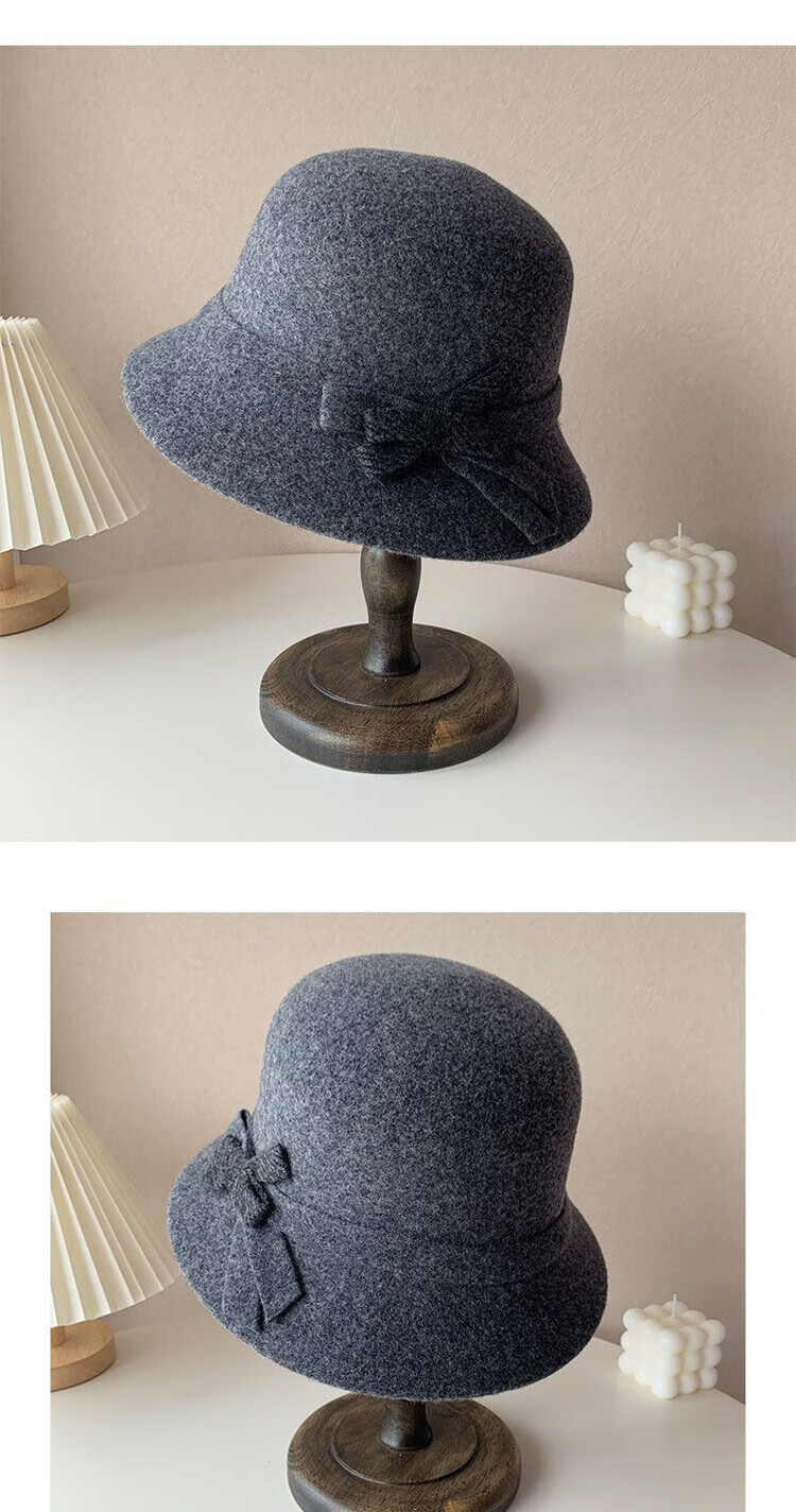 Hengyuanxiang Wool Hat Women's Winter Woolen Fisherman Hat Mom Fashionable Top Hat Middle-aged and Elderly Grandma Warm Basin Hat Dark Gray Adjustable