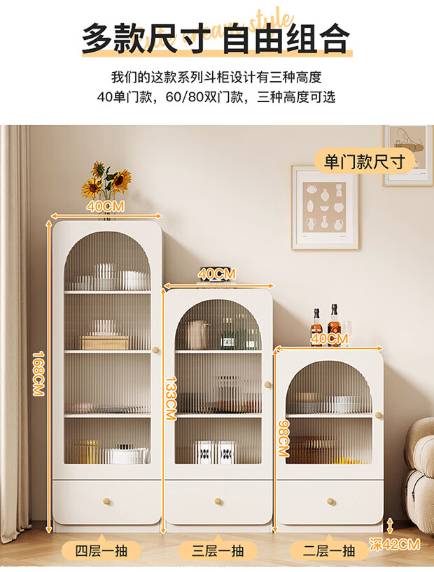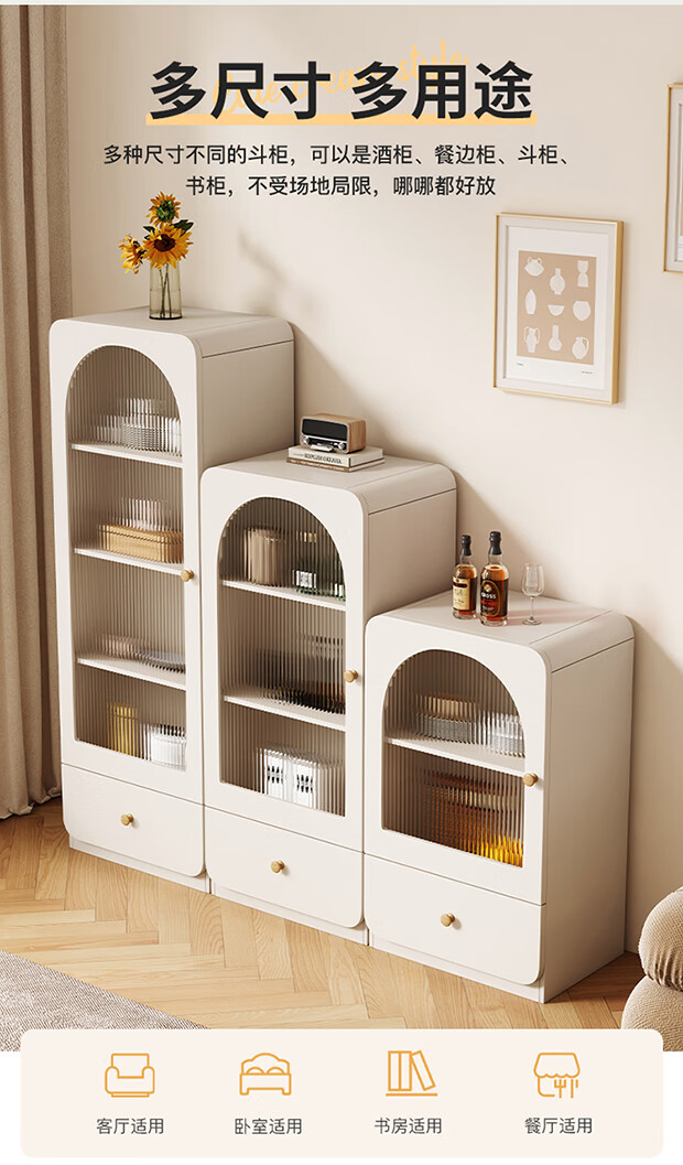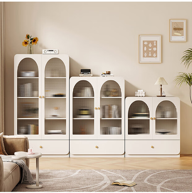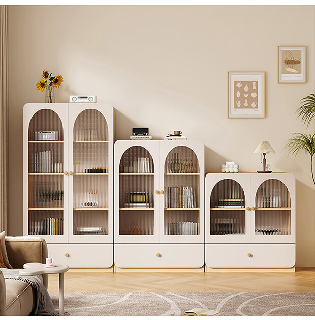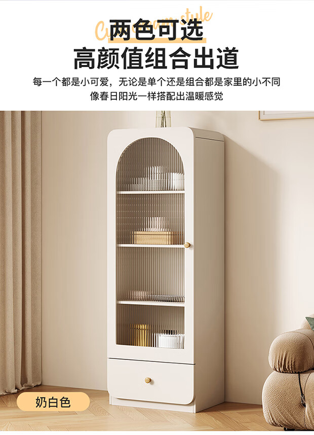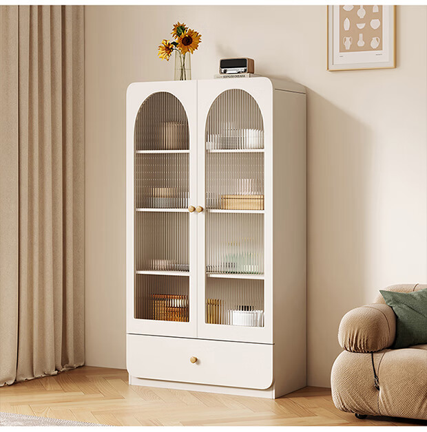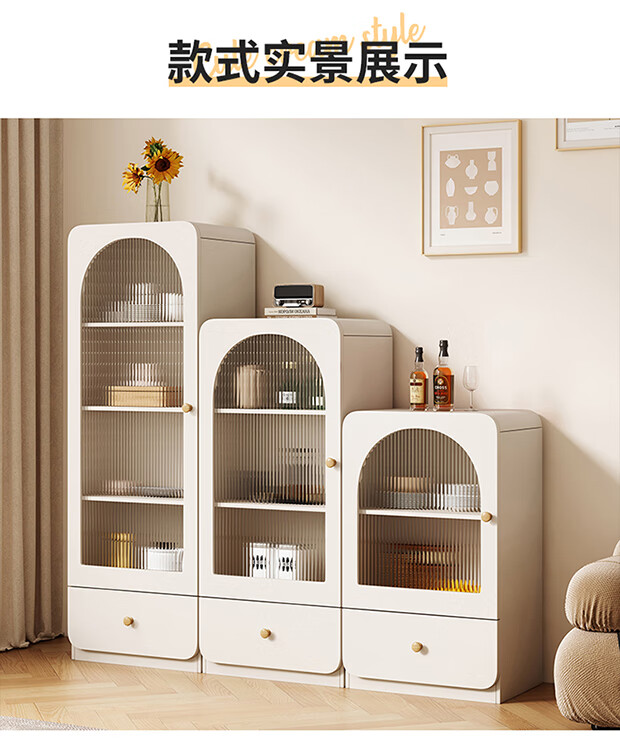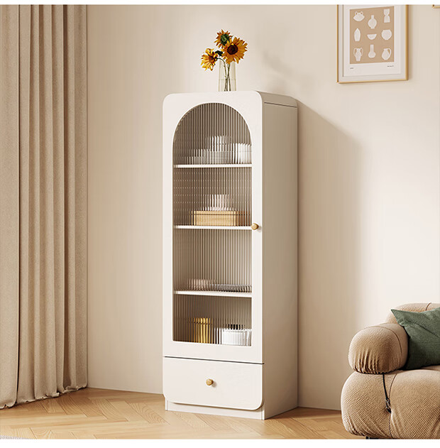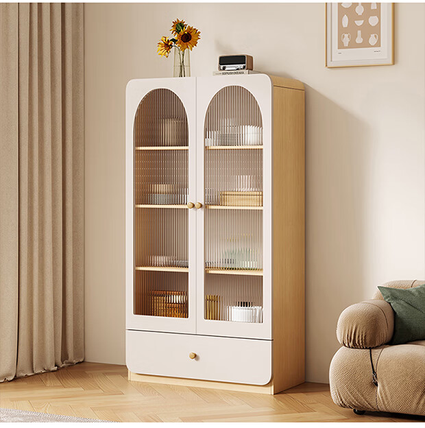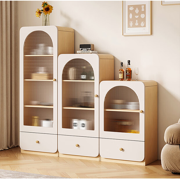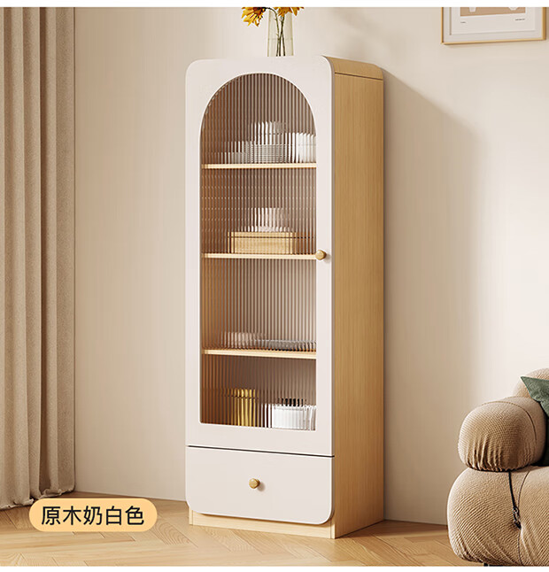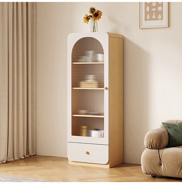 Entao cream style dining side wine cabinet against the wall home living room TV side cabinet glass door bookcase display storage storage cabinet 40*42*133-single door (raw wood color)
