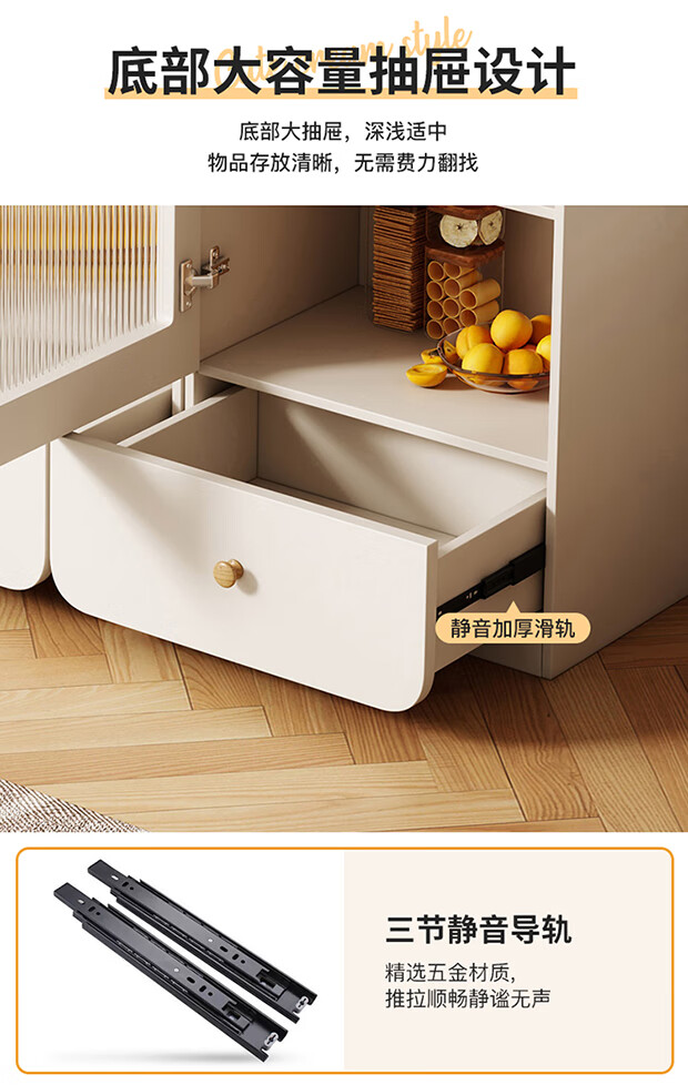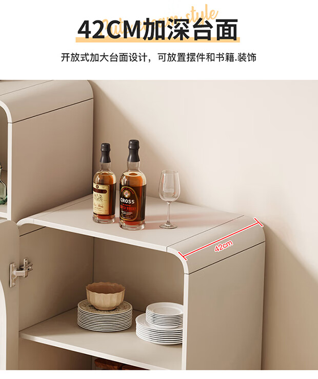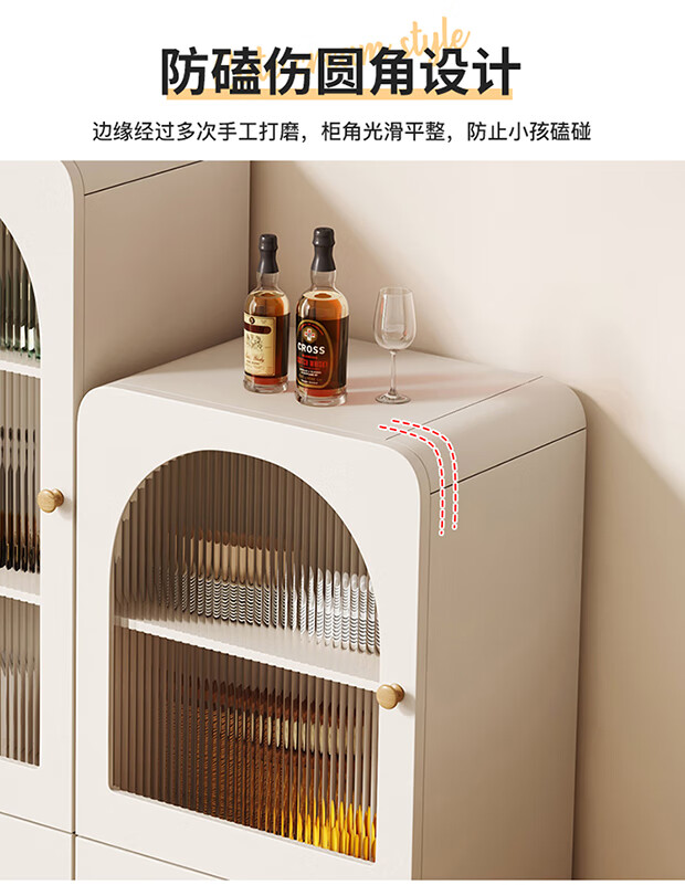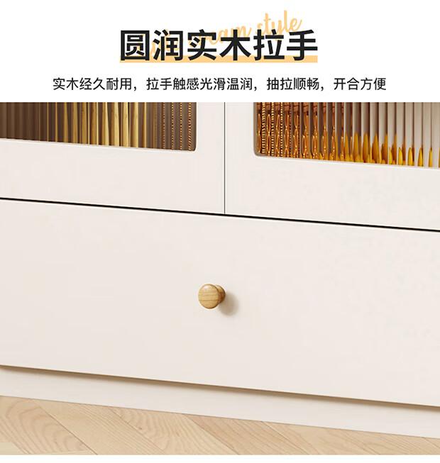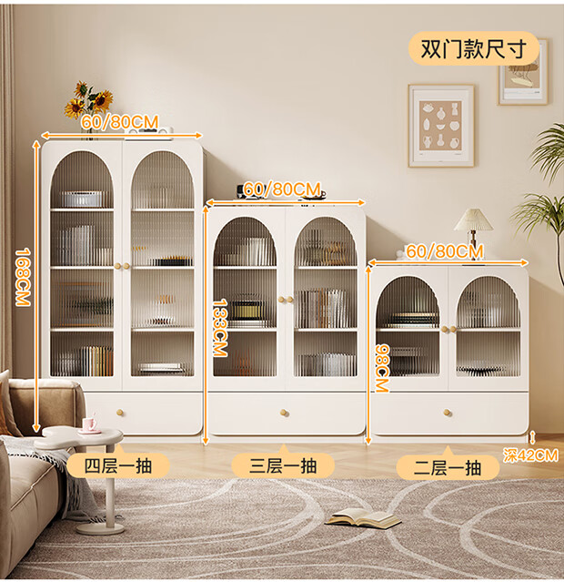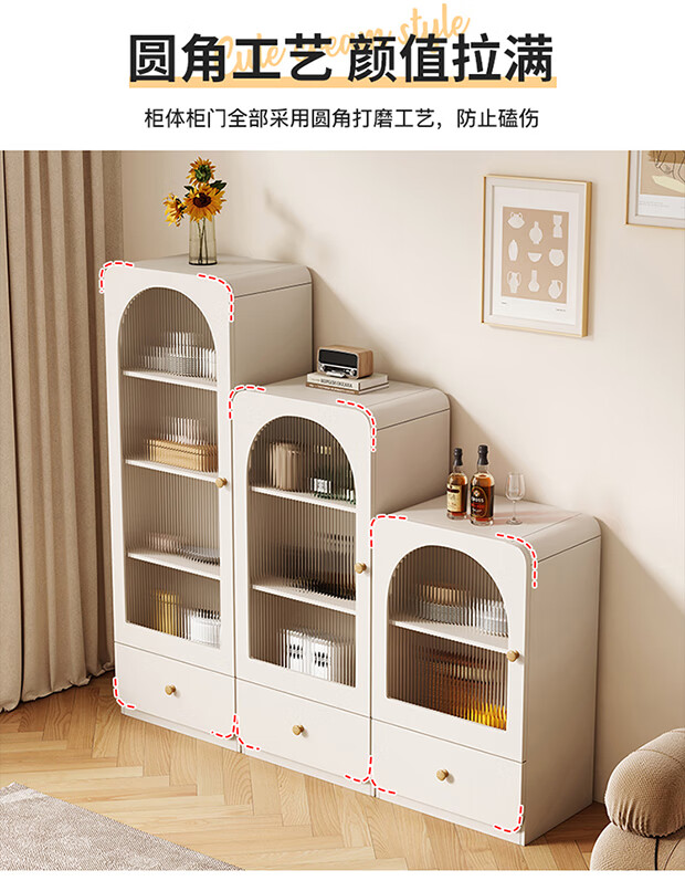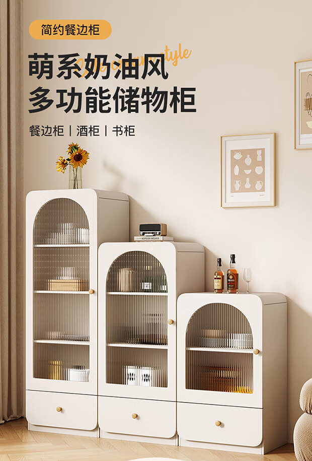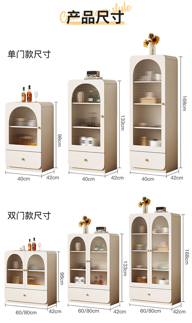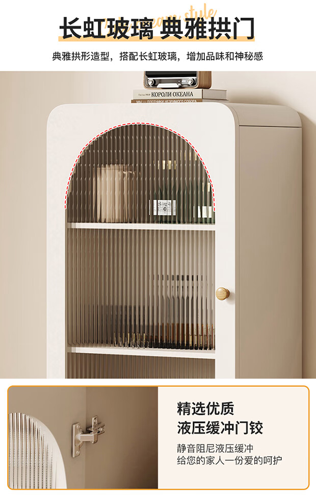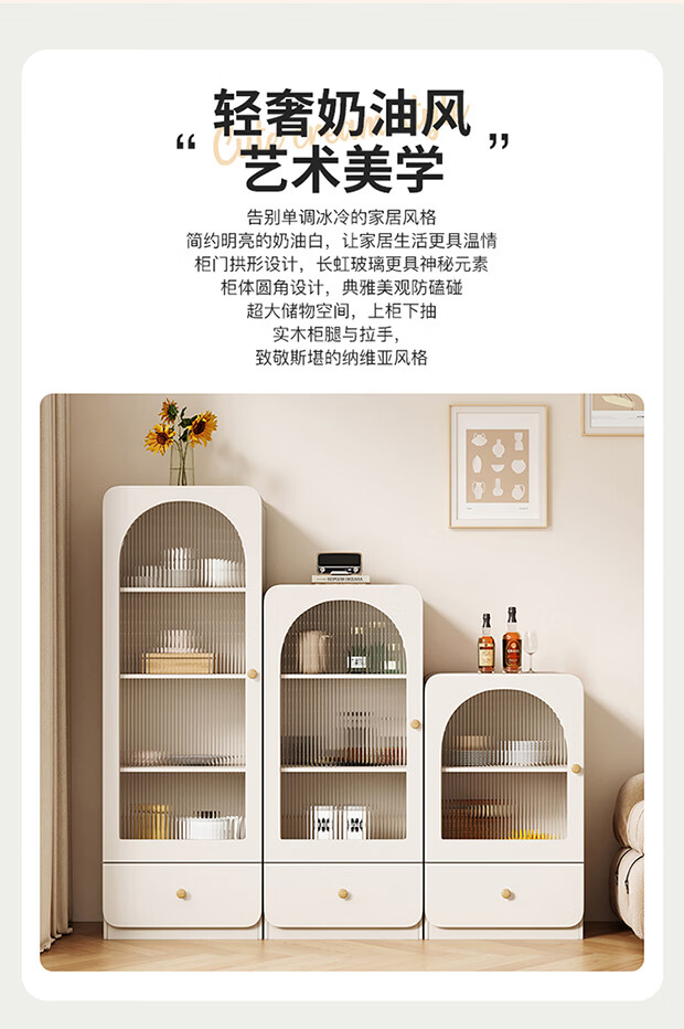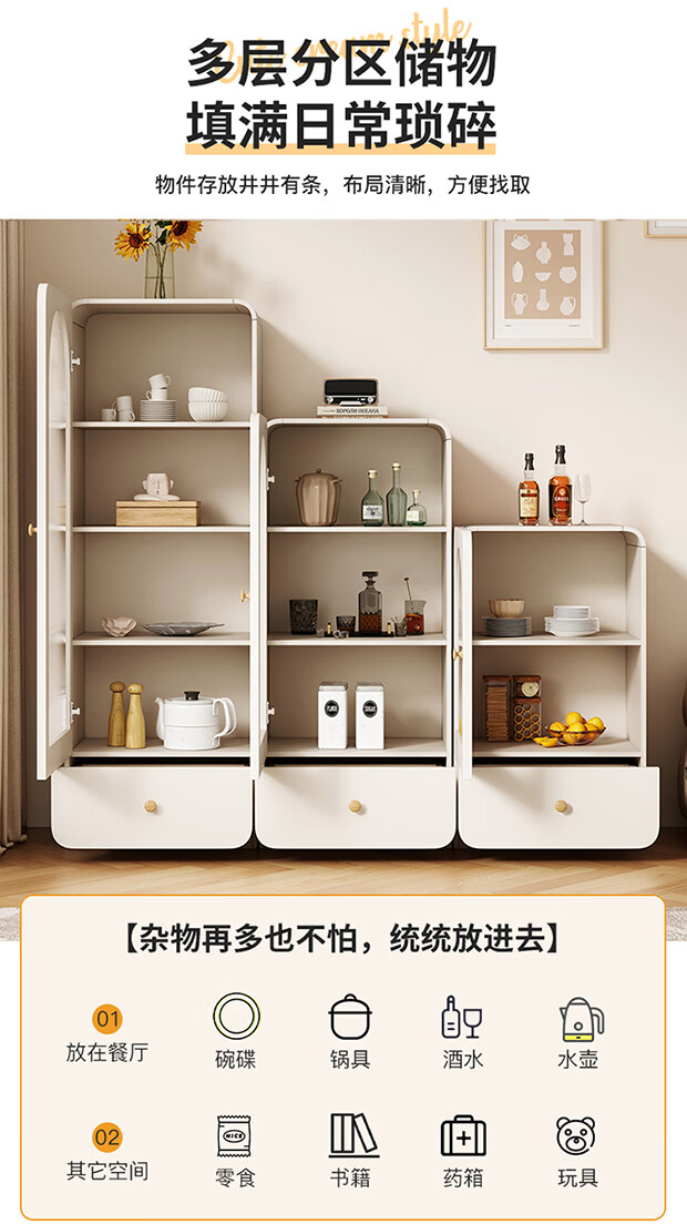 Entao cream style dining side wine cabinet against the wall home living room TV side cabinet glass door bookcase display storage storage cabinet 40*42*133-single door (raw wood color)