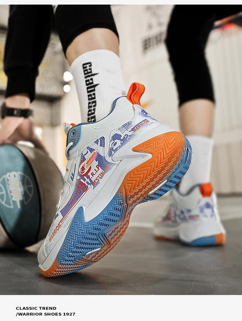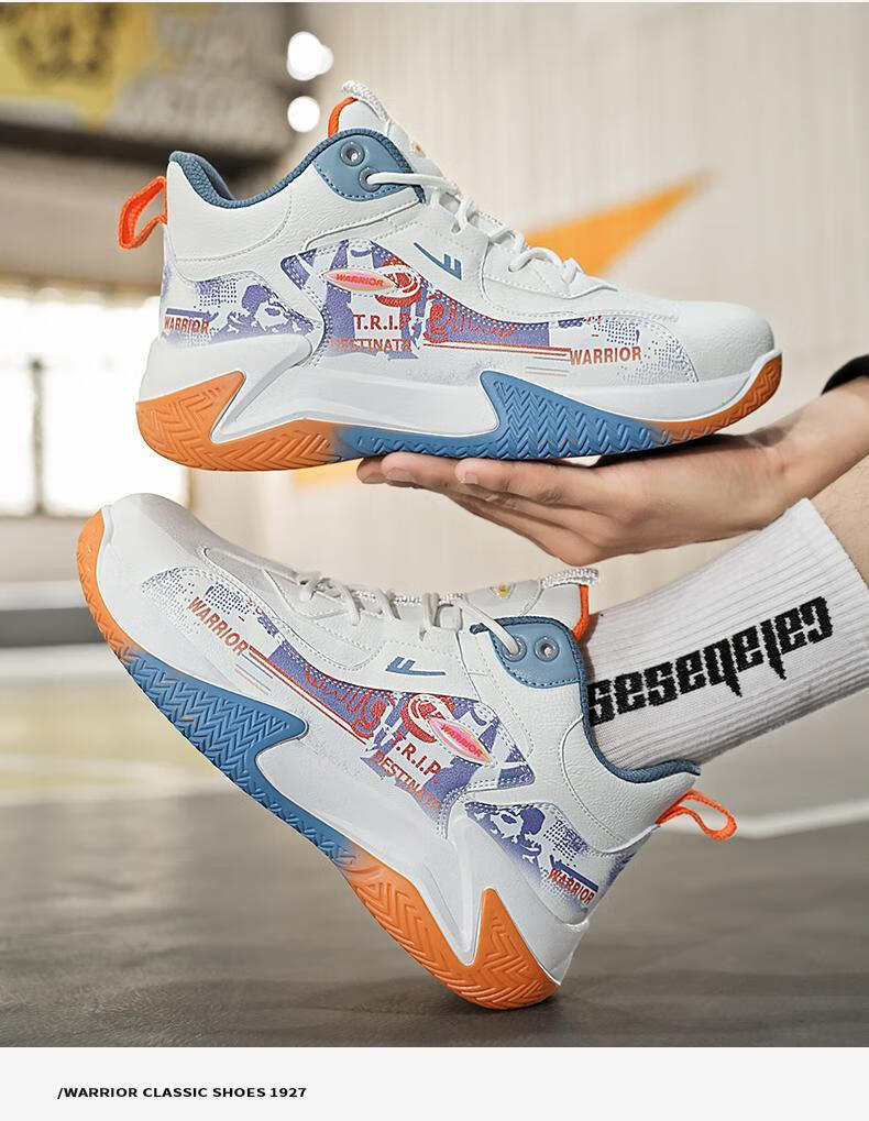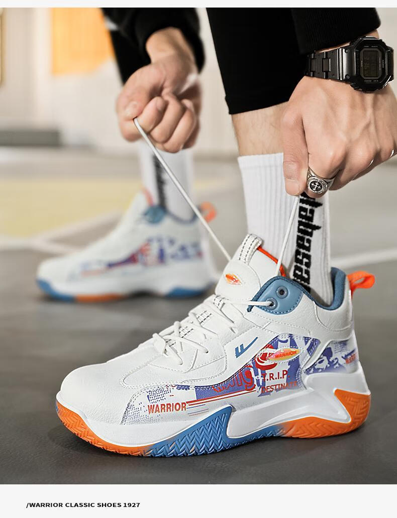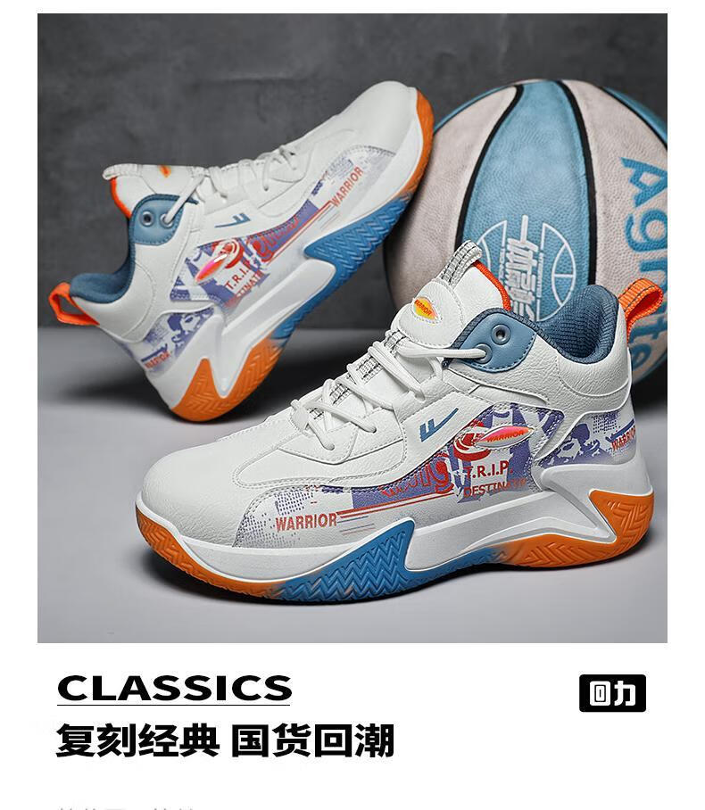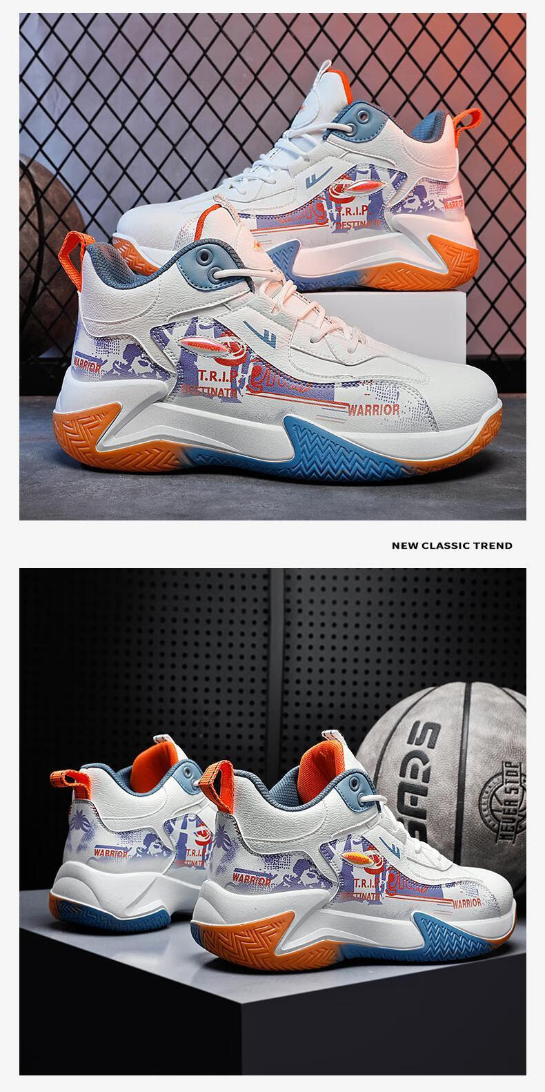Pull back basketball shoes men's shoes new autumn high-top sports shoes youth leather waterproof thick sole non-slip heightening running shoes white/blue/orange 40