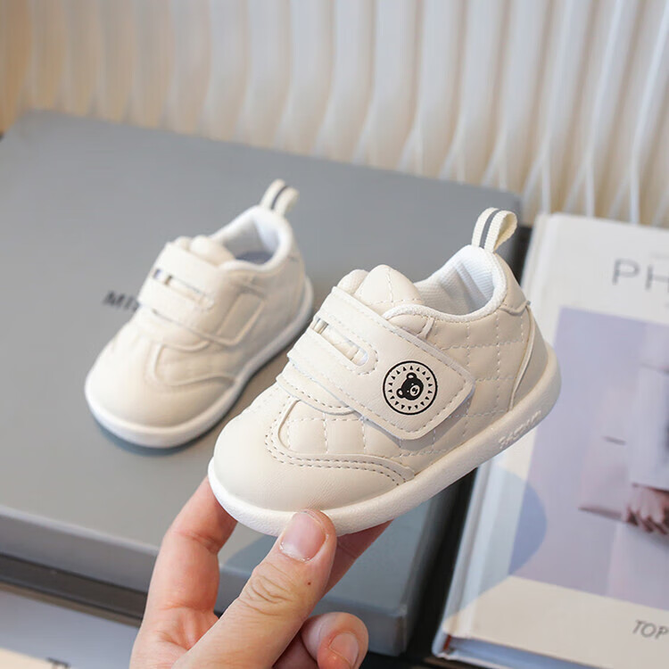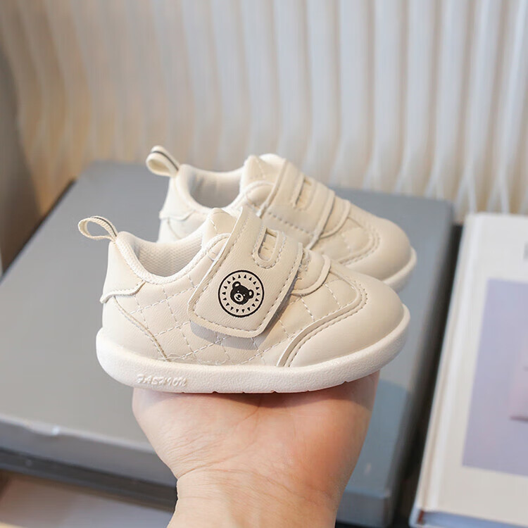 Qisiman Spring and Autumn Baby Toddler Shoes 1 to 2 Years Old Soft Sole Anti-Slip Infant Children's Single Shoes Men's and Women's Sneakers White Shoes 0 Khaki Color 17 Size/Inner Length 12CM