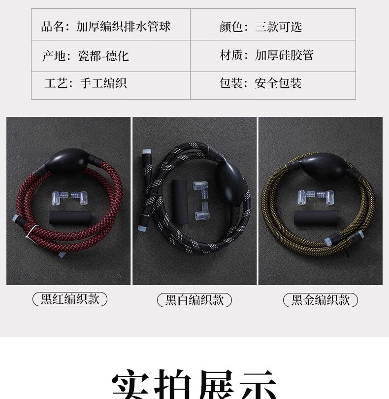 Tea tray drain pipe with absorbent ball Kungfu tea set accessories tea table coffee table drain pipe tea ceremony spare parts silicone hose black red length 90cm no Specifications