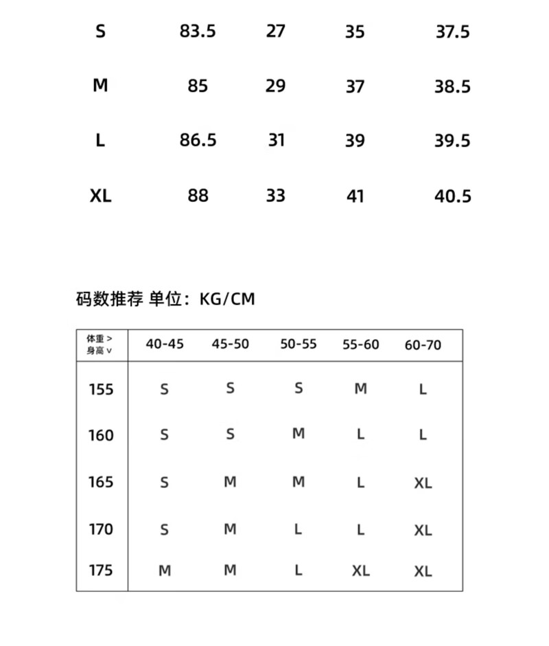China (cm) 160-165/84-86 165-170 / 88-90 167-172 / 92-96 168-173 / 98-102 170-176 / 106-110