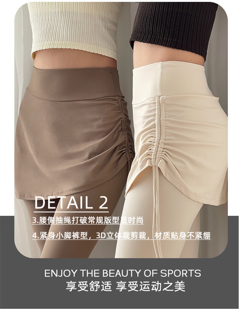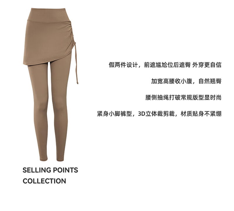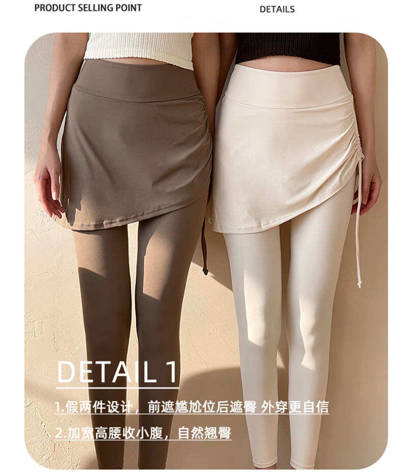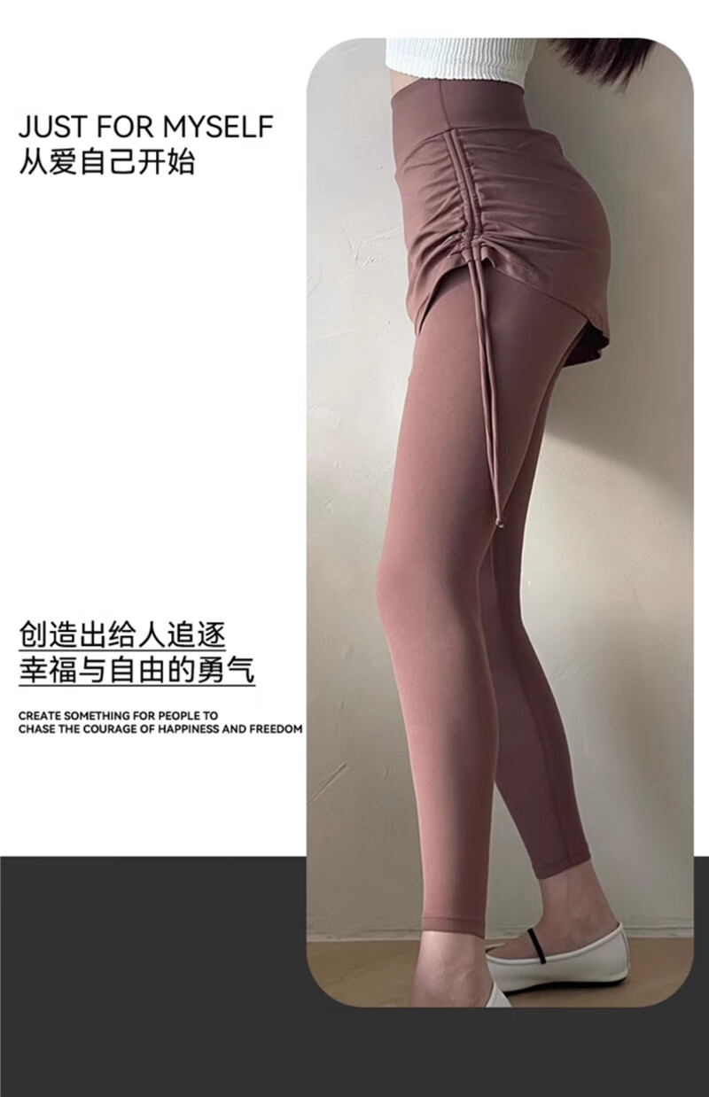 Cote Dilan brand yoga pants, Pilates, outdoor sports training, fitness pants, high waist, hip lift, anti-exposure cover skirt, fake two pieces, black S