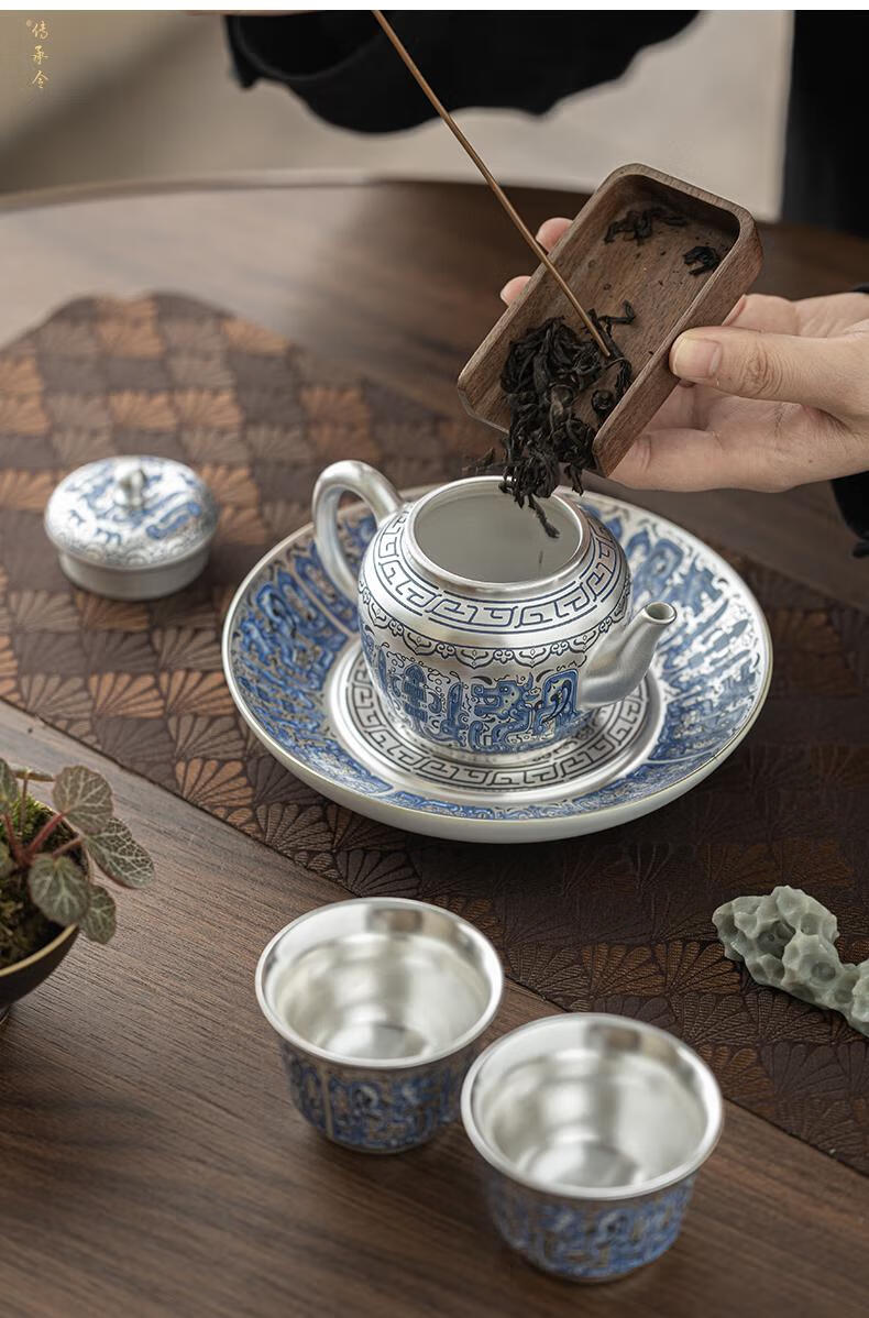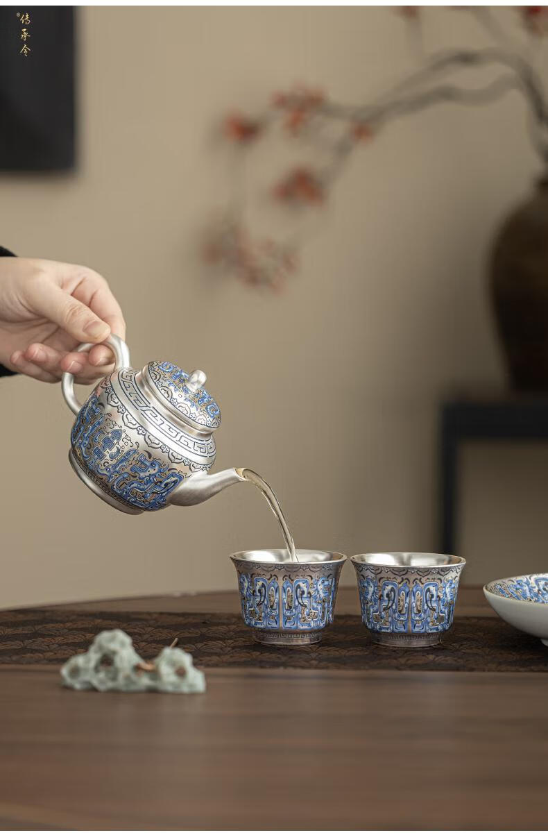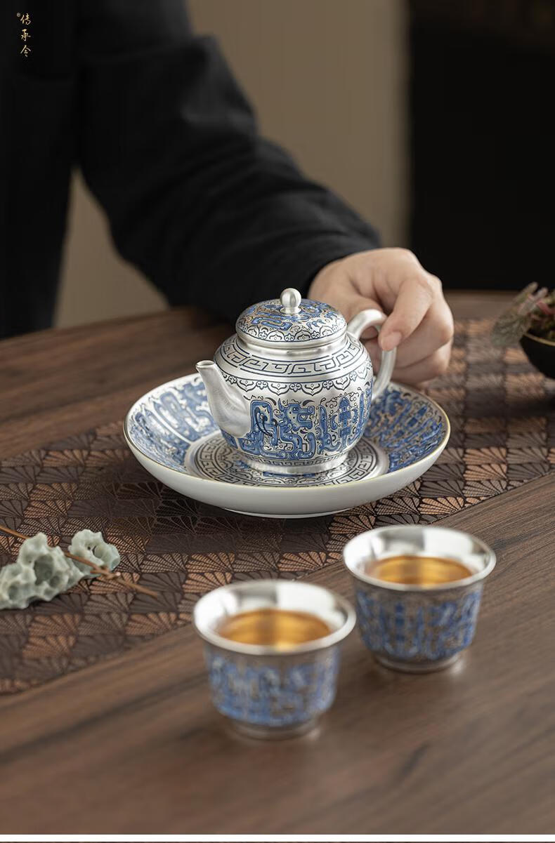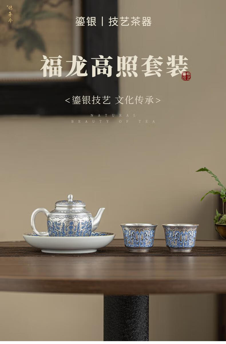 Heritage order high-end gilt silver one pot and two cups kung fu tea set teapot high-end gift box for leaders and elders gilt silver Fulong Gaozhao Yuanzheng teapot set one pot and two cups gift box