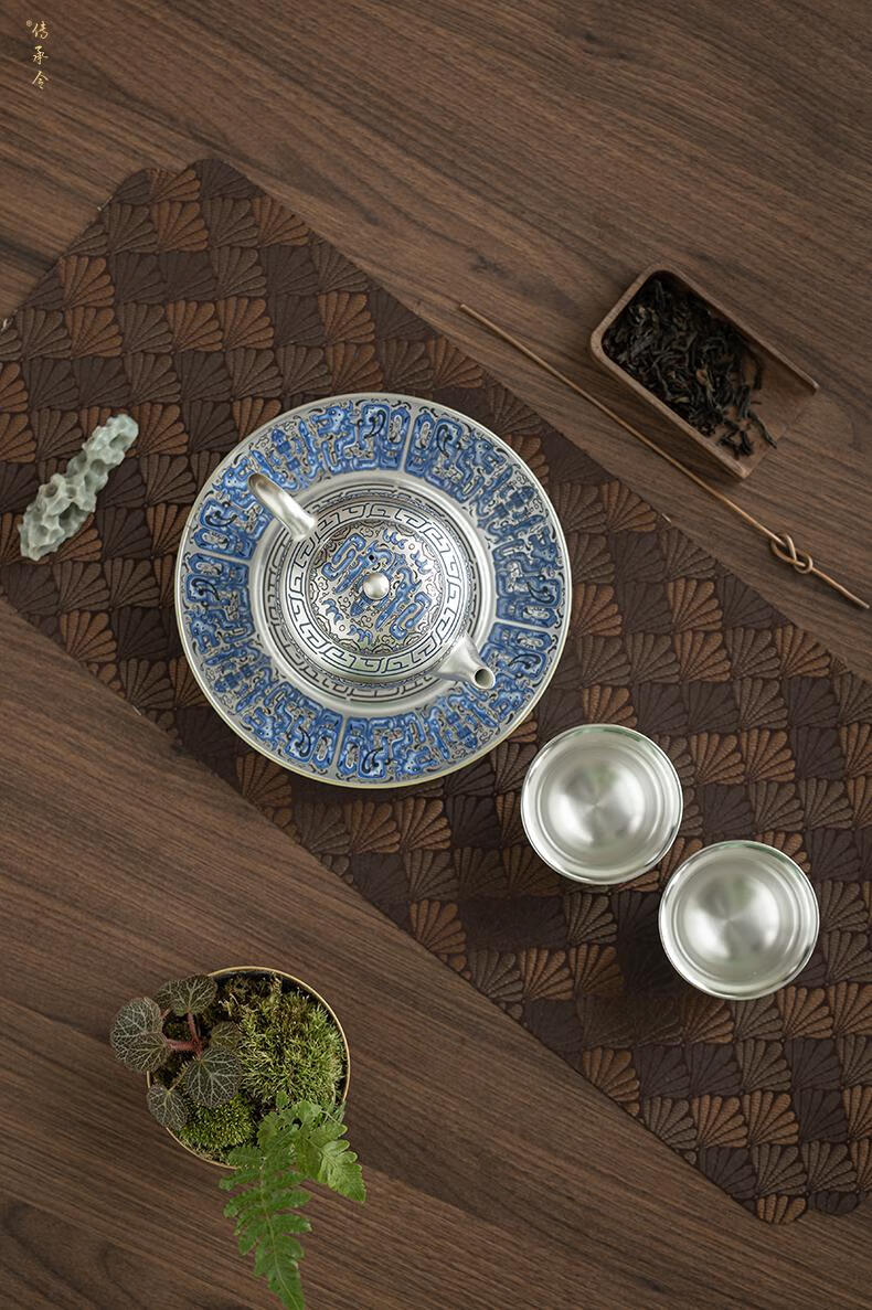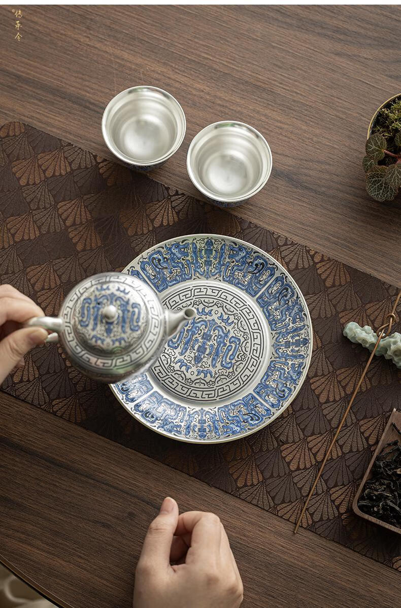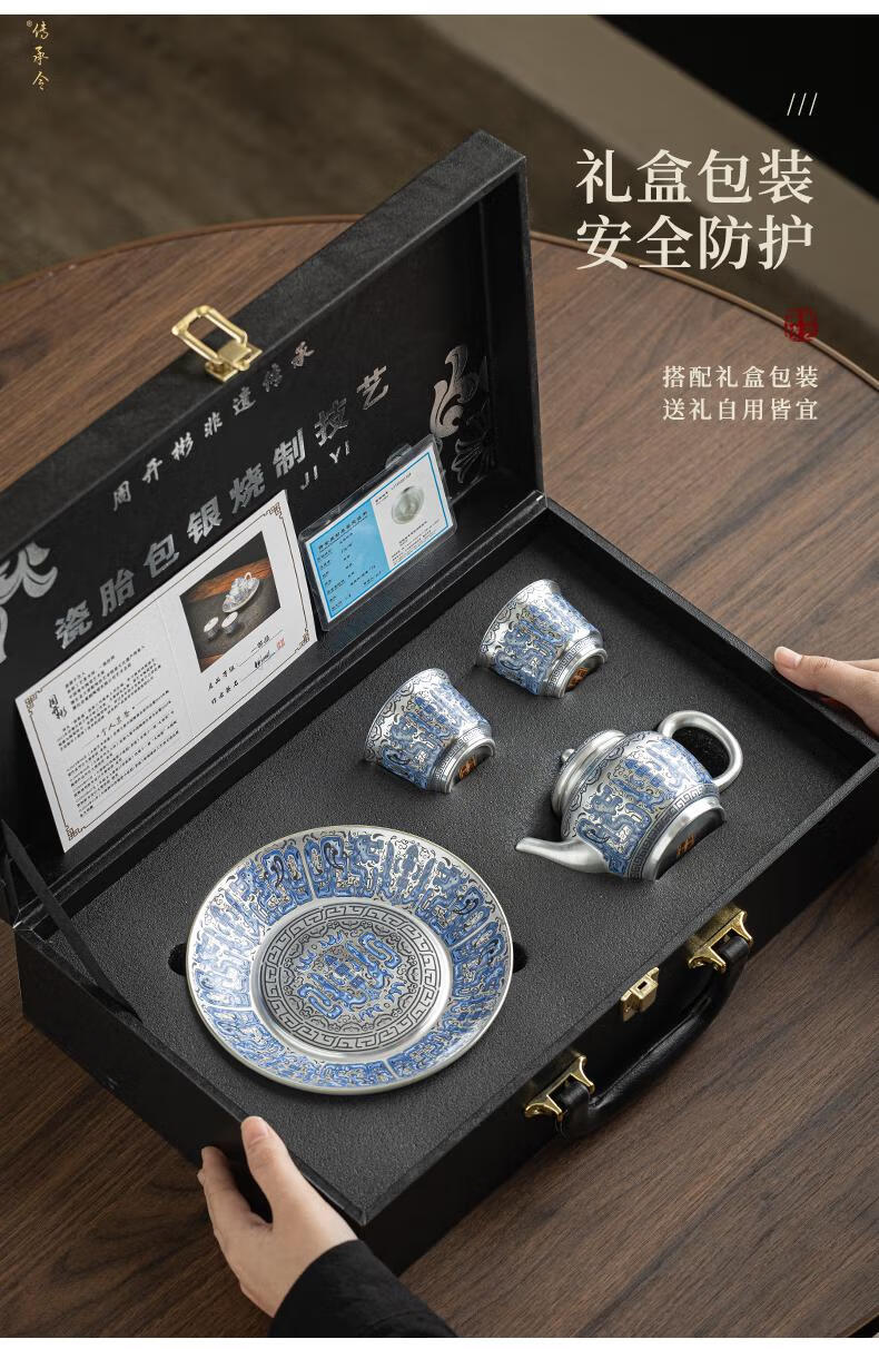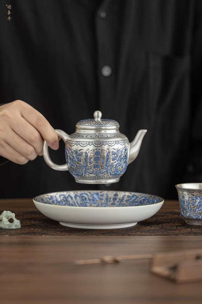 Heritage order high-end gilt silver one pot and two cups kung fu tea set teapot high-end gift box for leaders and elders gilt silver Fulong Gaozhao Yuanzheng teapot set one pot and two cups gift box