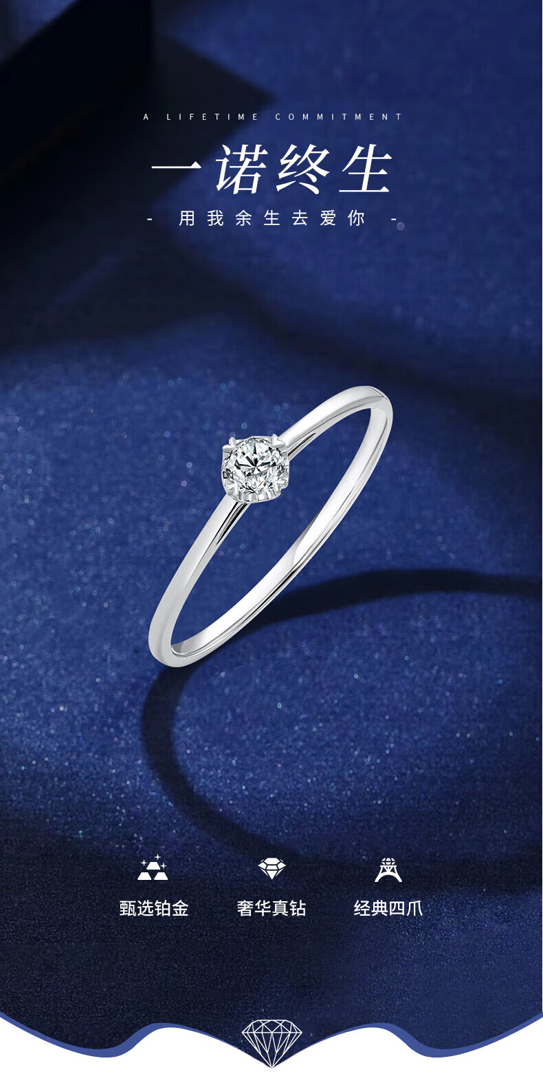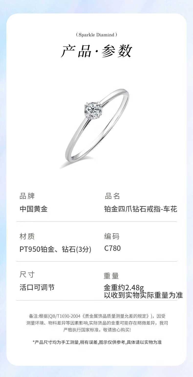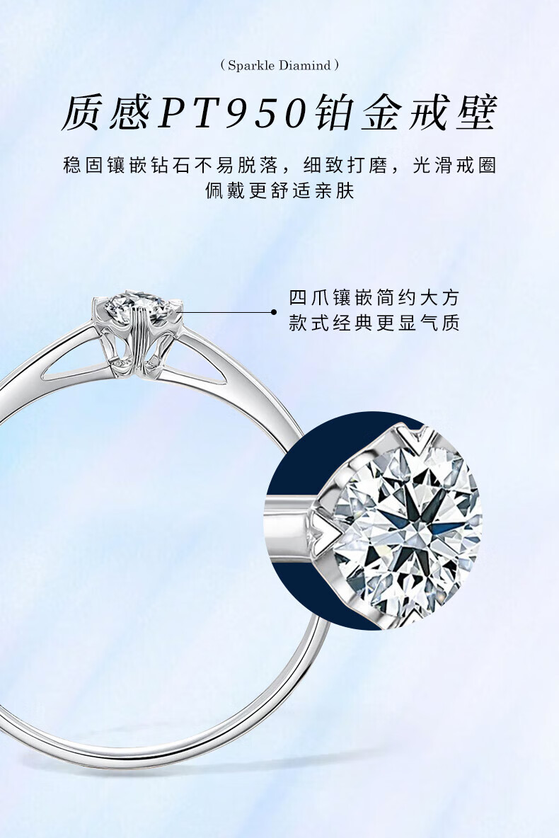 China Gold (CHINA GOLD) Platinum Diamond Ring Women's Platinum Proposal Diamond Ring Birthday Gift for Girlfriend and Wife Wedding Anniversary Practical Gift Platinum Four-Prong Diamond Ring-Car Flower