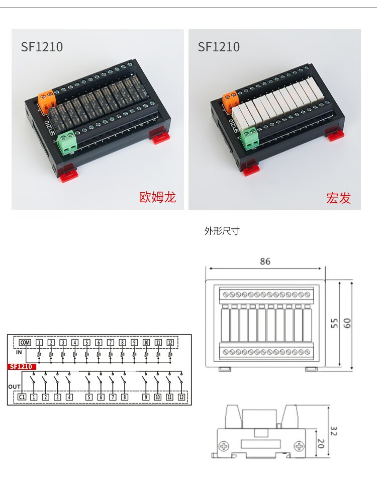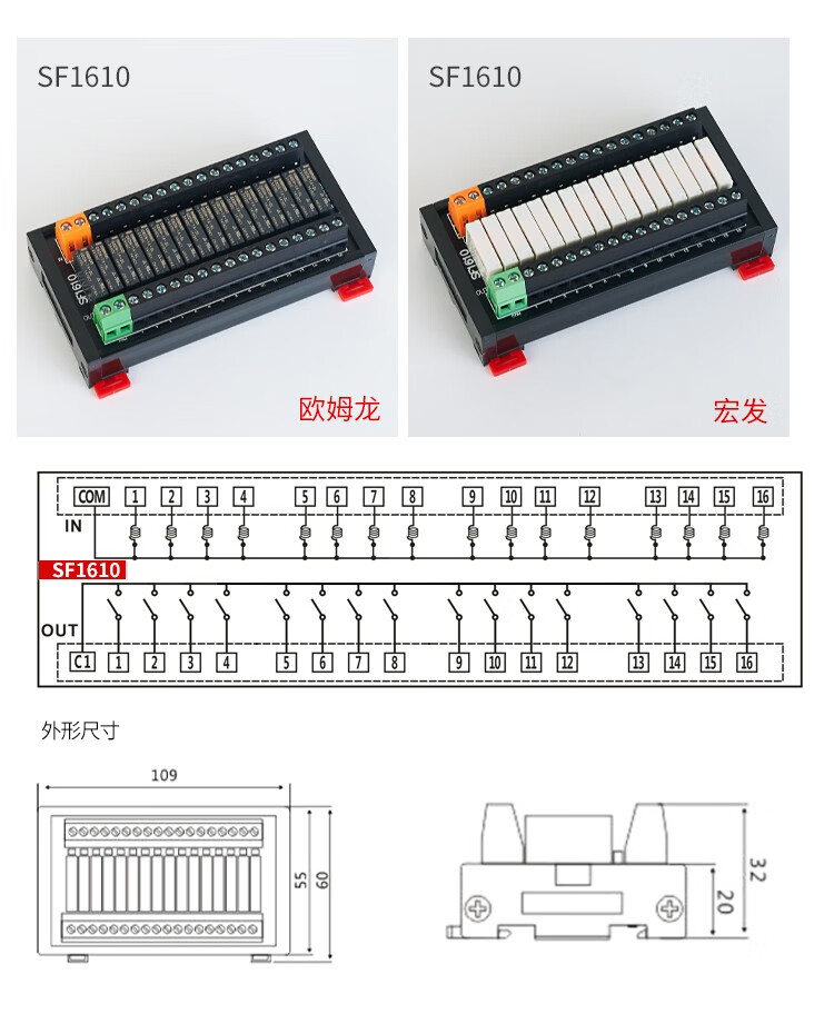 Taiwan control 4/8/16-channel Omron relay module module 24V relay combination control board SF0810 Hongfa SF1210 12-channel 12VDC Omron relay module