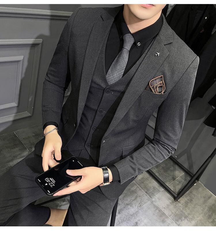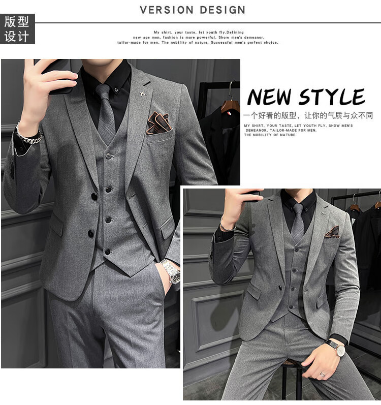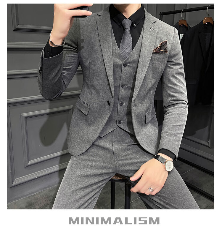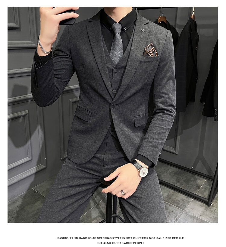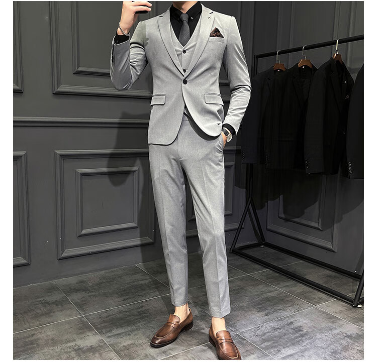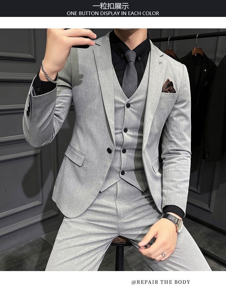 ROMON Groom's Suit Men's Business Professional Formal Wedding Dress Casual British Style Slim Suit Men's Medium Gray 2-piece Suit + Pants + Shirt + XL 123-134Jin Jin equals 0.5 kg Wear