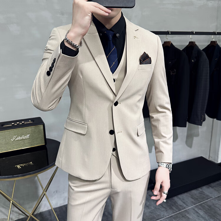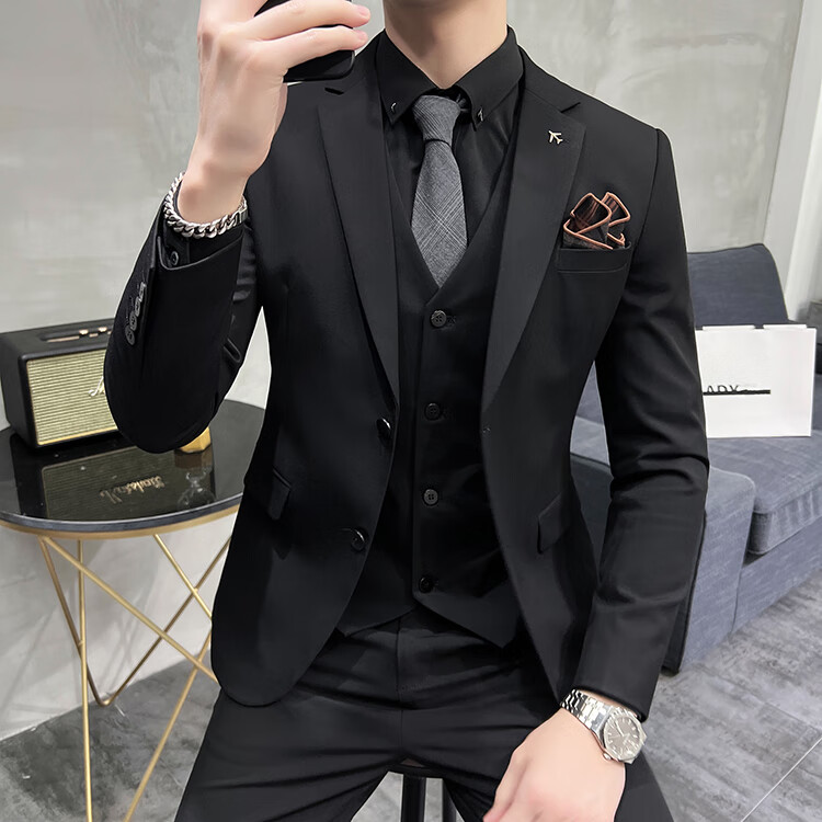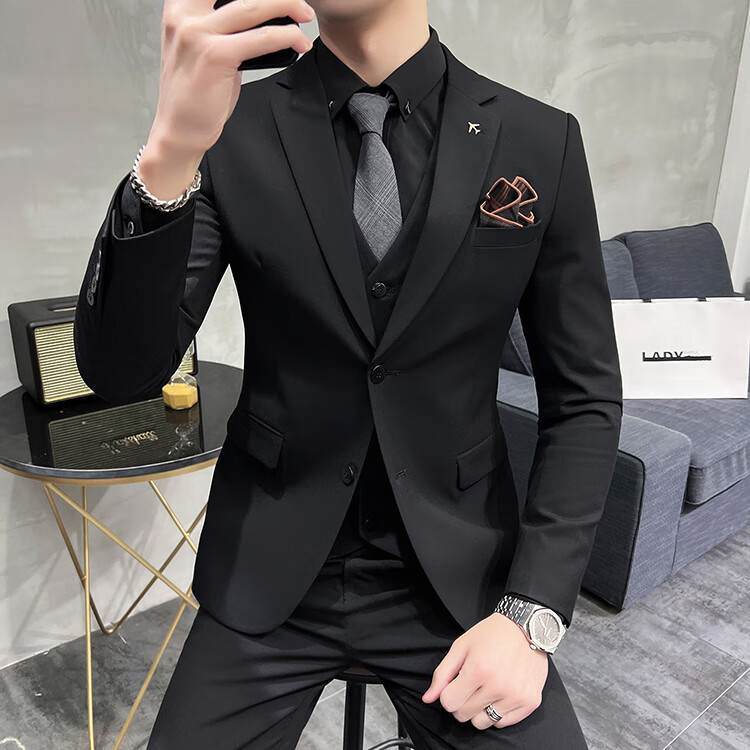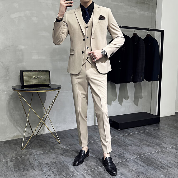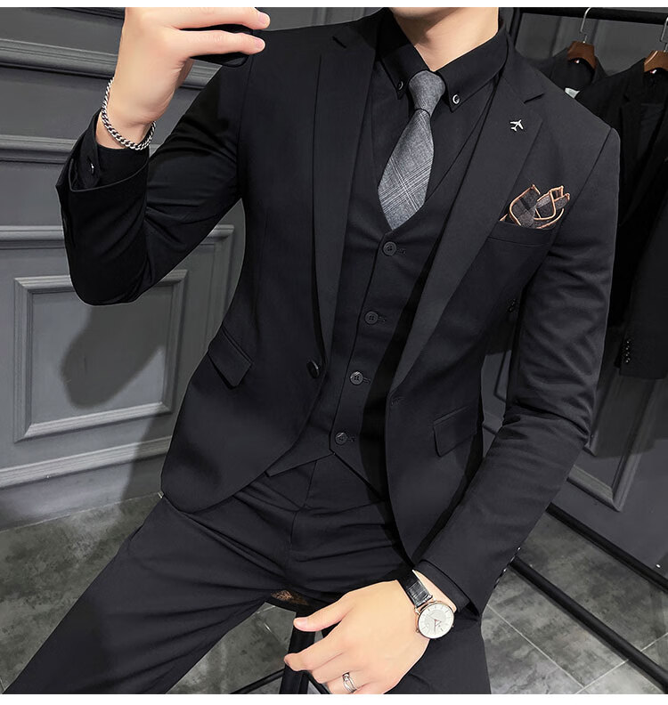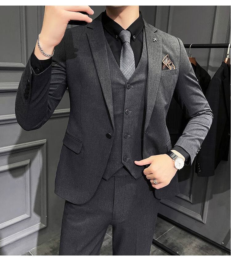 ROMON Groom's Suit Men's Business Professional Formal Wedding Dress Casual British Style Slim Suit Men's Medium Gray 2-piece Suit + Pants + Shirt + XL 123-134Jin Jin equals 0.5 kg Wear