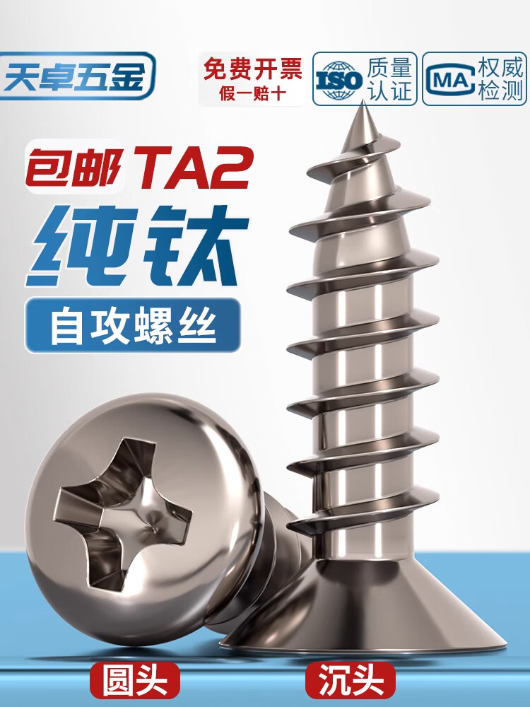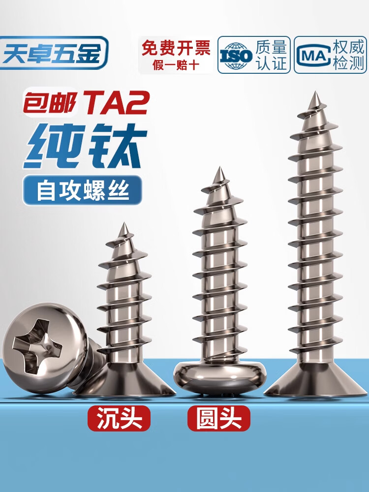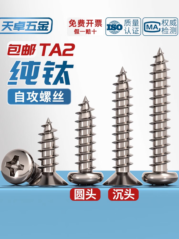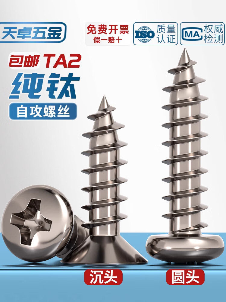 Tianzhuo Hardware National Standard TA2 pure titanium pan head umbrella head countersunk head large flat head flat head round head cross self-tapping screw M3M4M5mm countersunk head M5.5*25 2 pieces