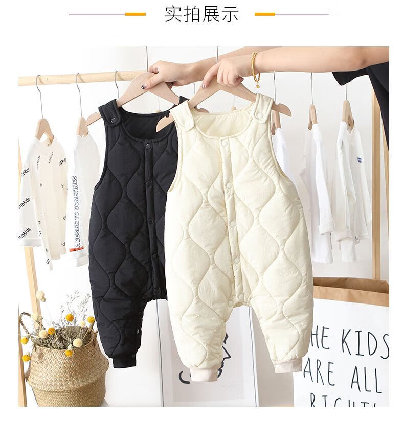 Disney brand children's down pants for boys and girls, autumn and winter overalls cotton pants, baby jumpsuits, thickened warm trousers, apricot (darker color) 90cm