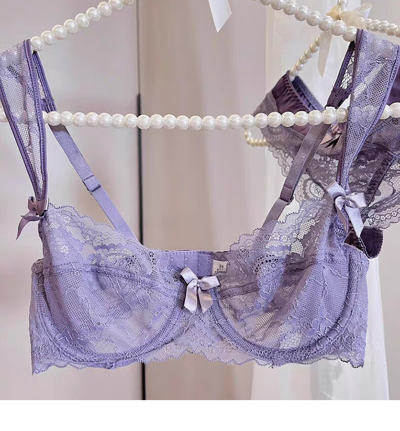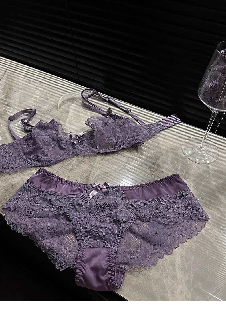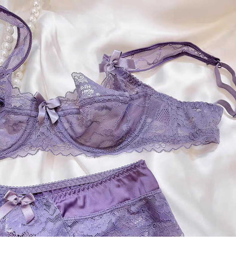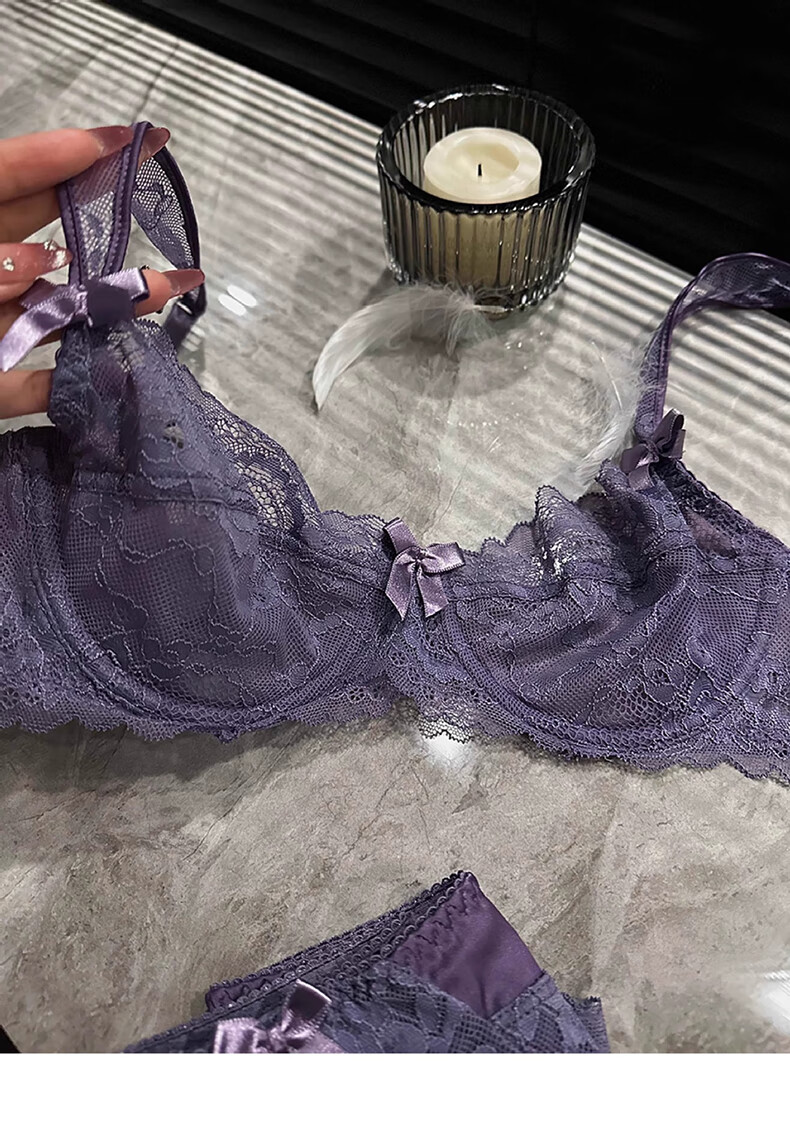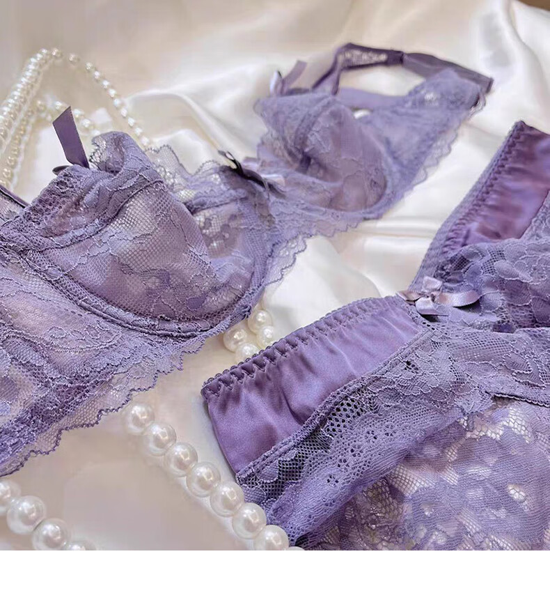 Yunshun Underwear Women's French Bra Set New Breathable Thin Sexy Lace Underwear Women's Push Up Big Breasts Make Their Smaller Lace Set Purple M 34/75 ABC