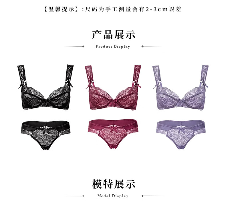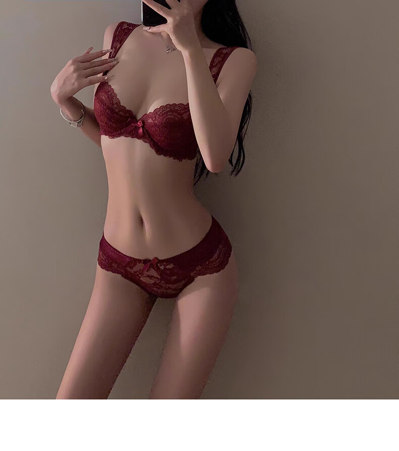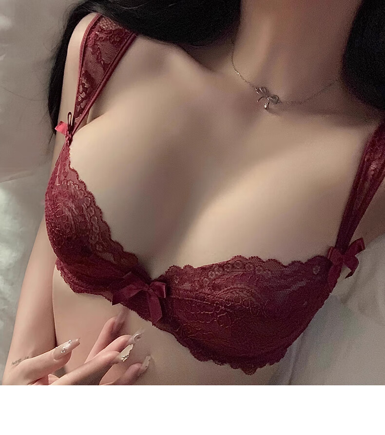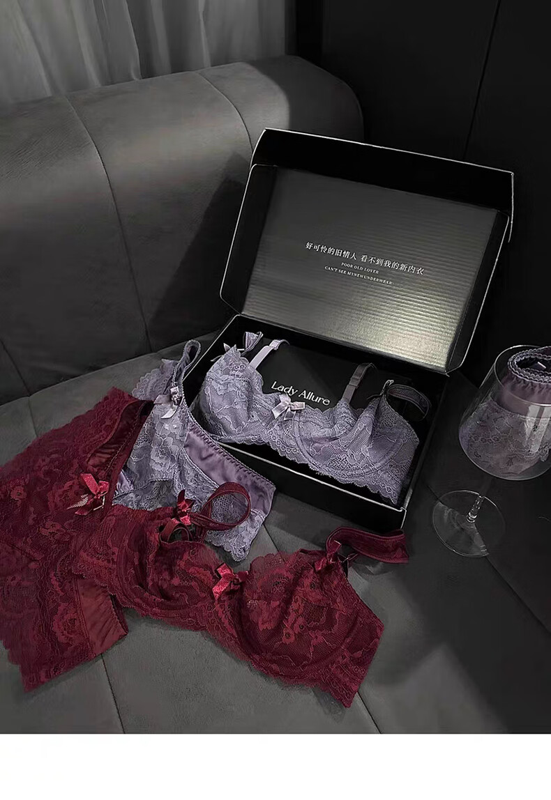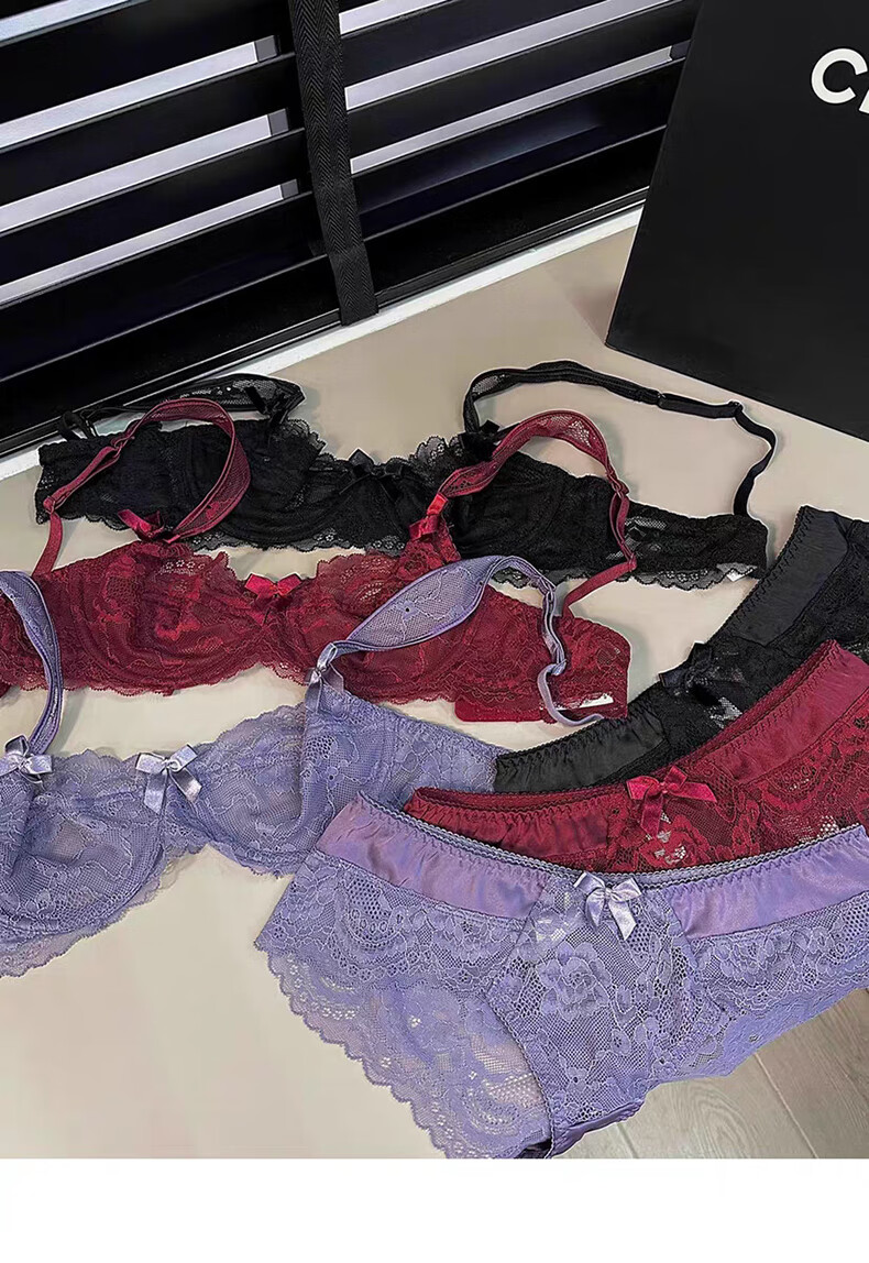 Yunshun Underwear Women's French Bra Set New Breathable Thin Sexy Lace Underwear Women's Push Up Big Breasts Make Their Smaller Lace Set Purple M 34/75 ABC