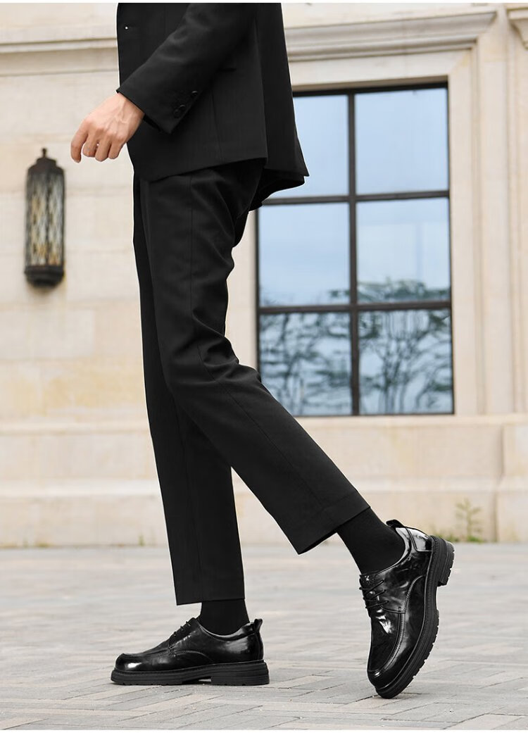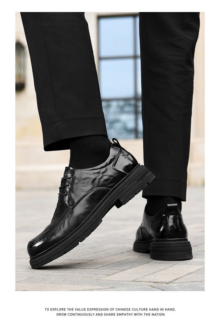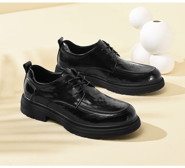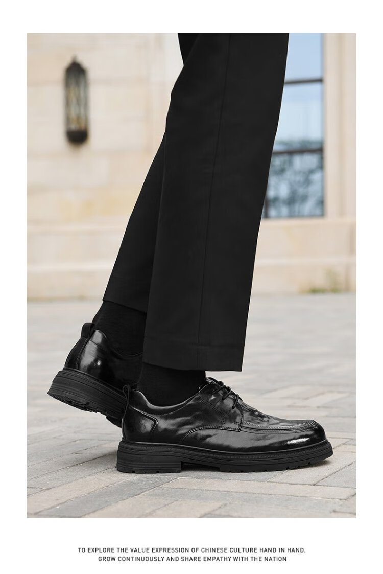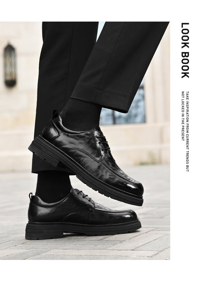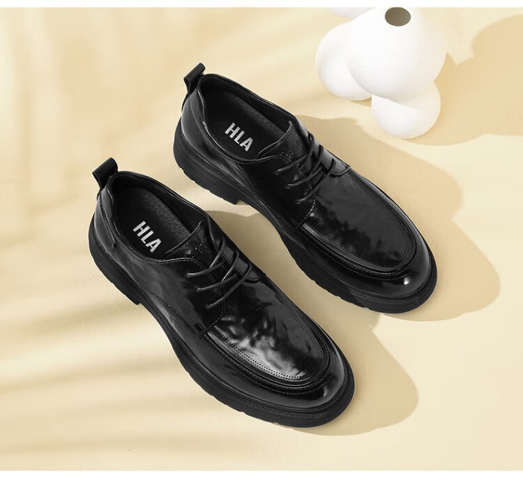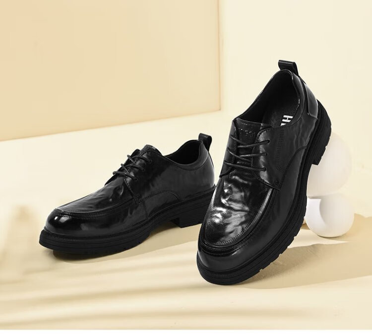 Heilan House Men's Shoes Autumn New Business Casual Leather Shoes Men's Hand Scratched Pattern Soft Surface Soft Wear-Resistant Formal Derby Shoes Men's Fashion Black Four Seasons Ready Stock 40