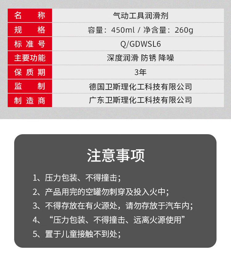 Wesley pneumatic tool lubricant special rust remover anti-rust lubrication maintenance pneumatic screwdriver wrench pneumatic tool lubricant 450ML