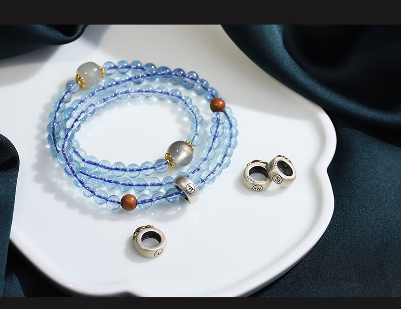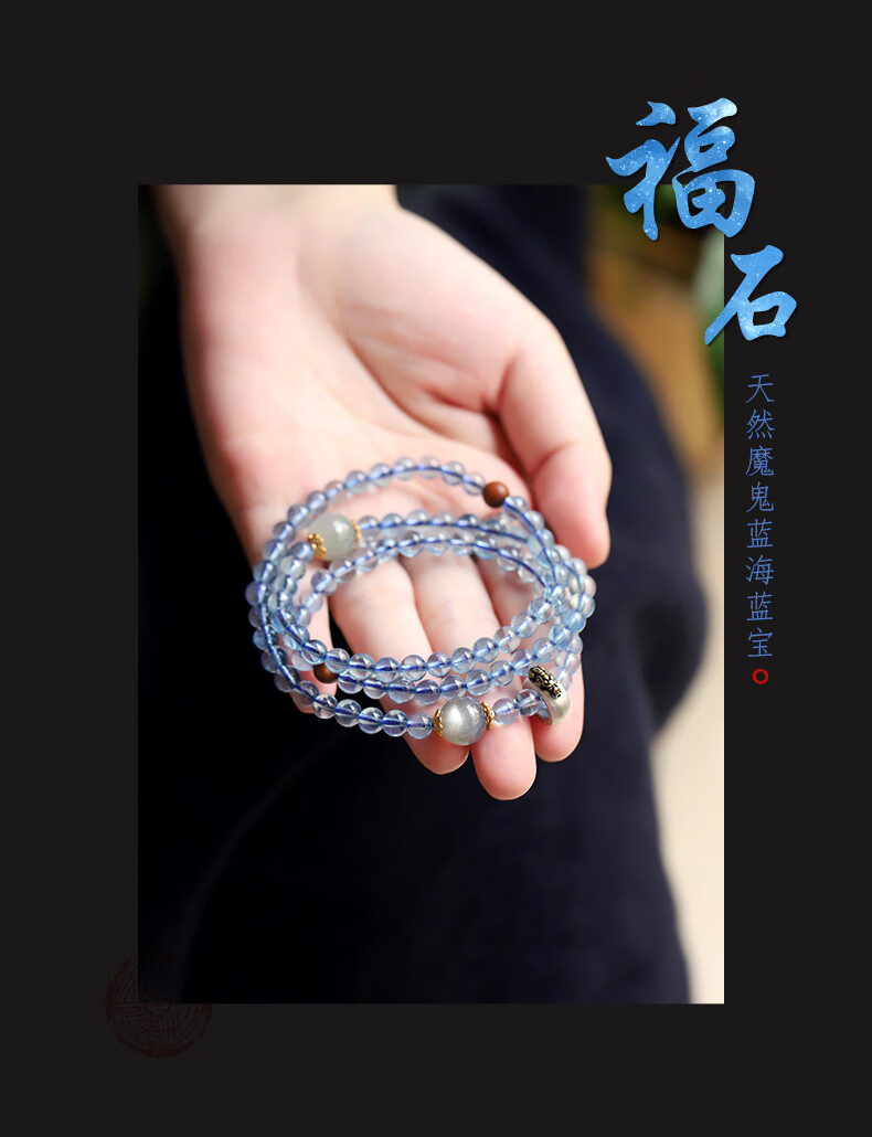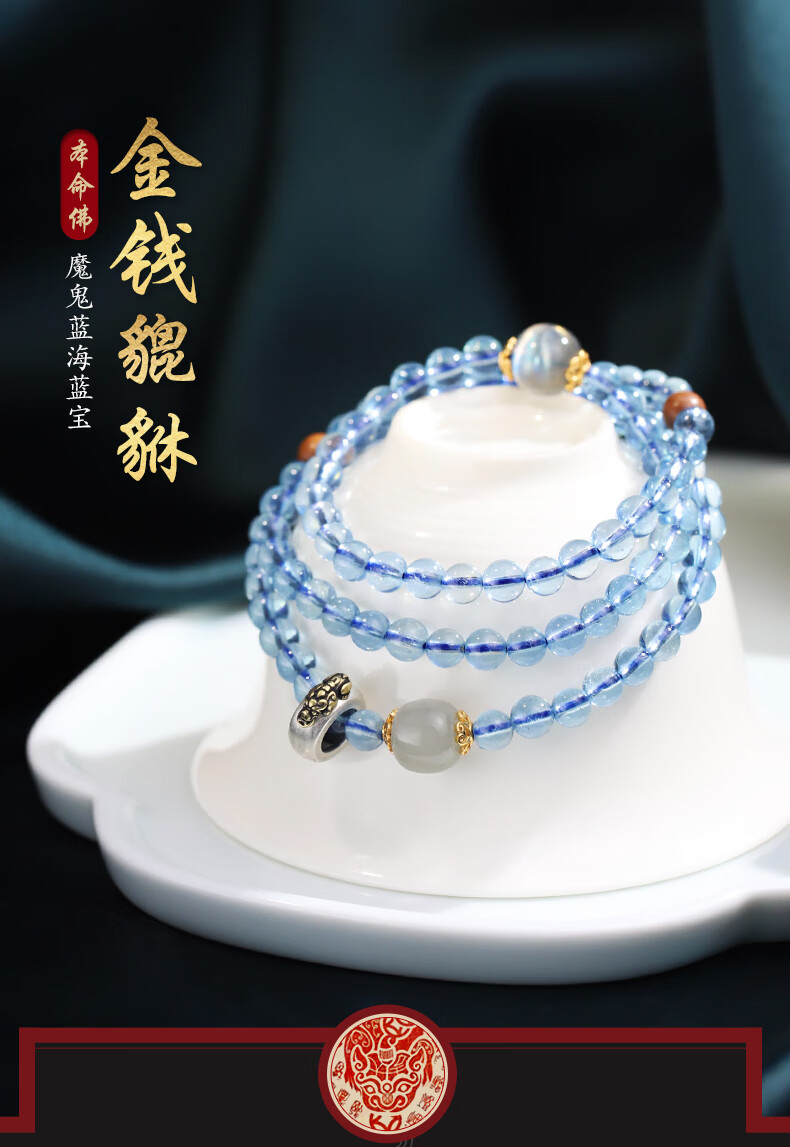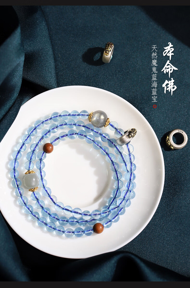 Layun Feiyin natural ice aquamarine bracelet for women 7A blue crystal multi-circle mercury reverse gemstone bracelet Buddhist beads rosary, rat, Thousand-Hand Guanyin