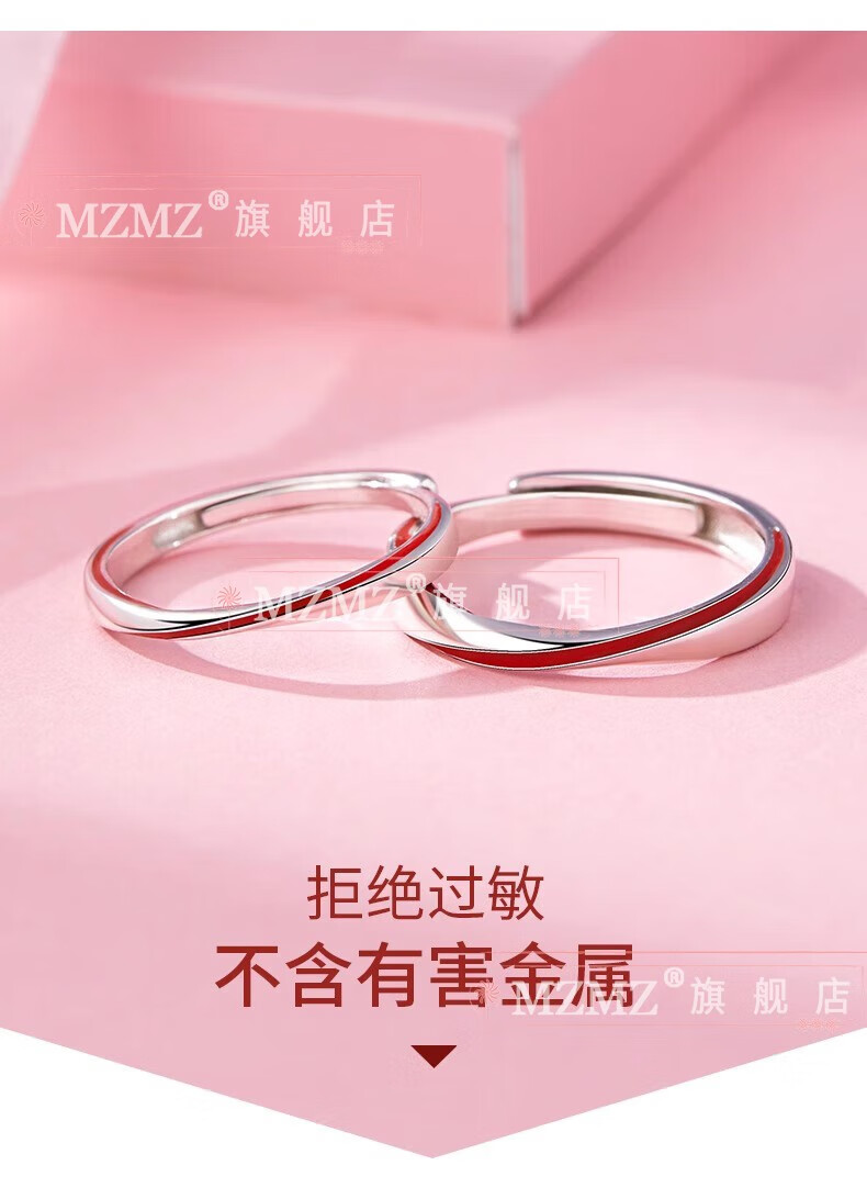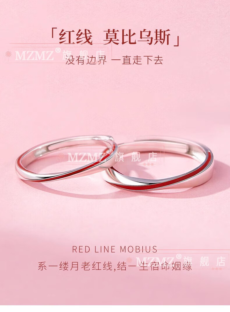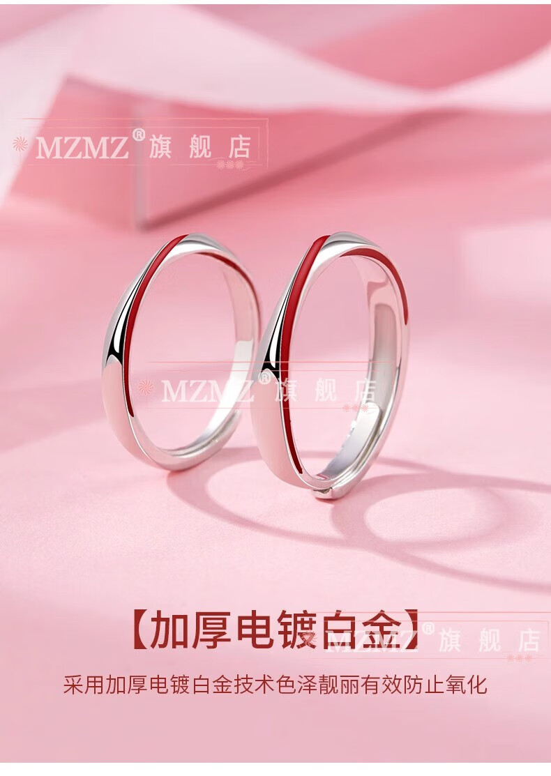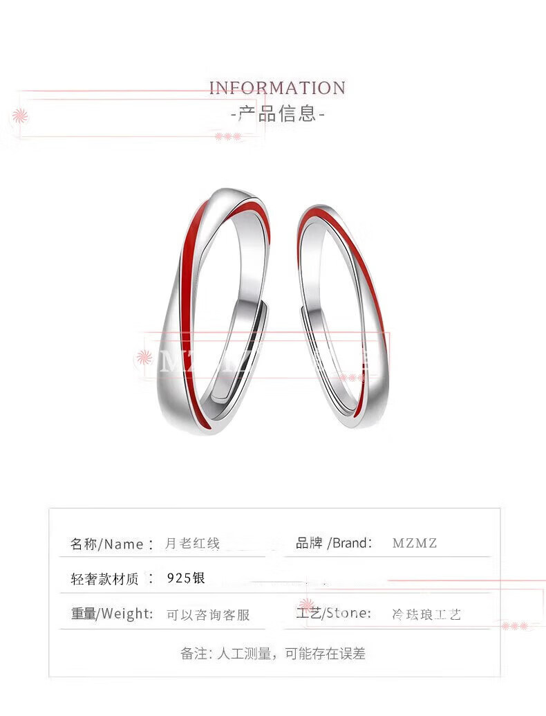 MZMZ Yue Lao Red Line Couple Ring PT950 Platinum Adjustable Ring Engagement Ring Birthday Gift for Girlfriend and Wife Light Luxury Style - Couple Ring (Live)