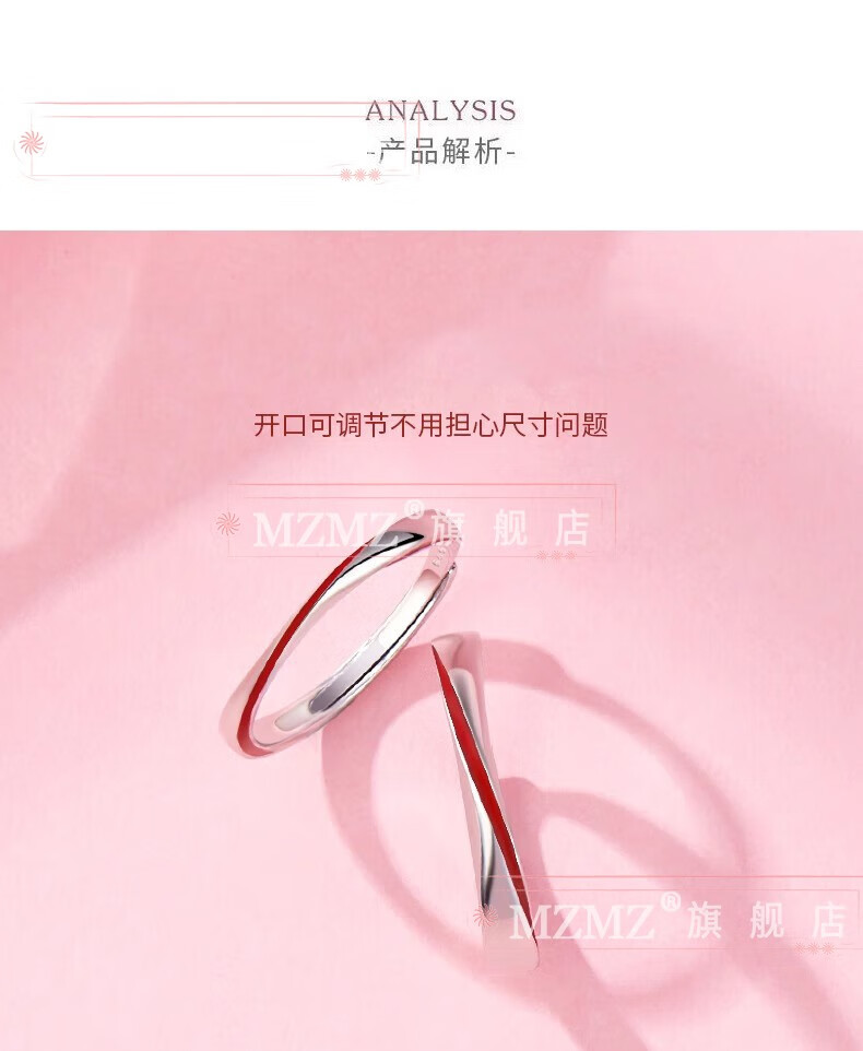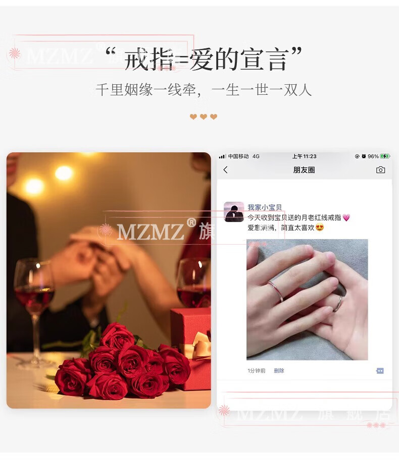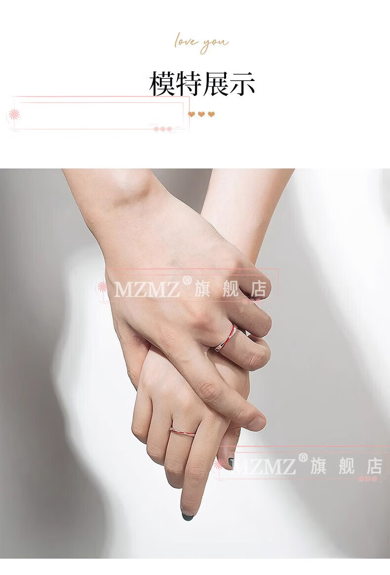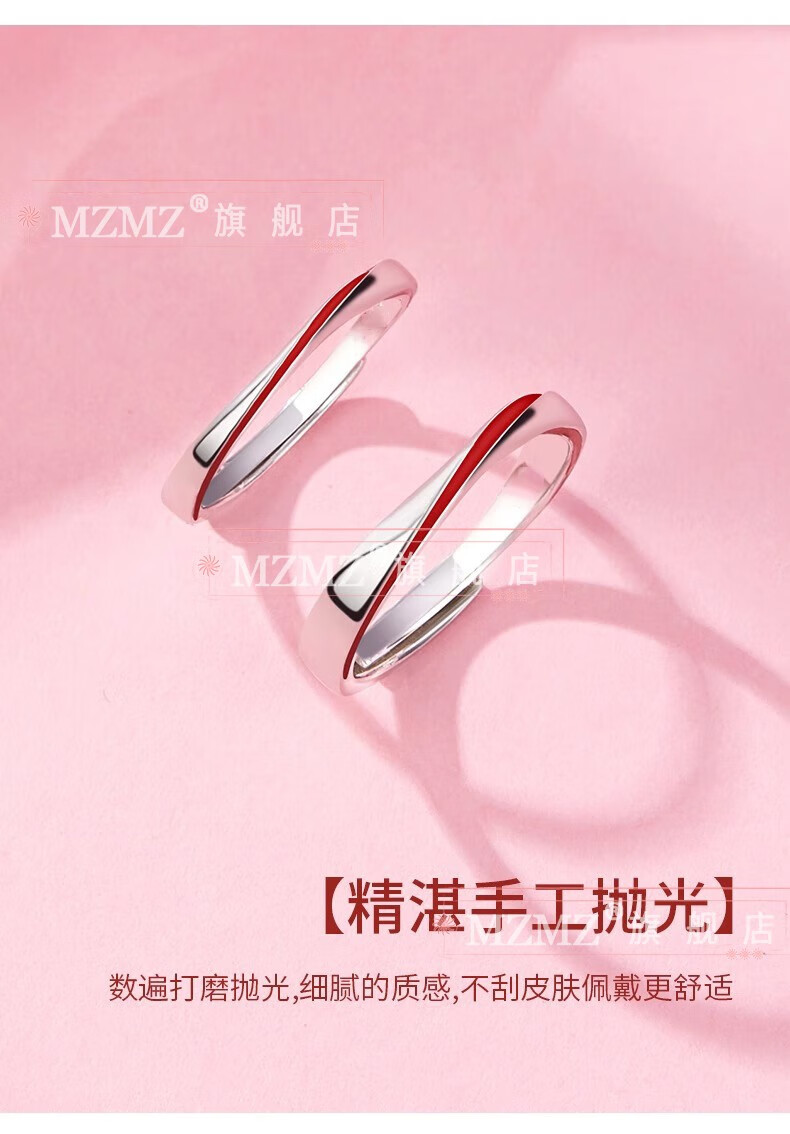 MZMZ Yue Lao Red Line Couple Ring PT950 Platinum Adjustable Ring Engagement Ring Birthday Gift for Girlfriend and Wife Light Luxury Style - Couple Ring (Live)