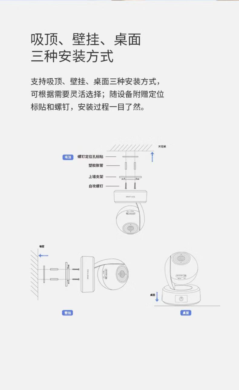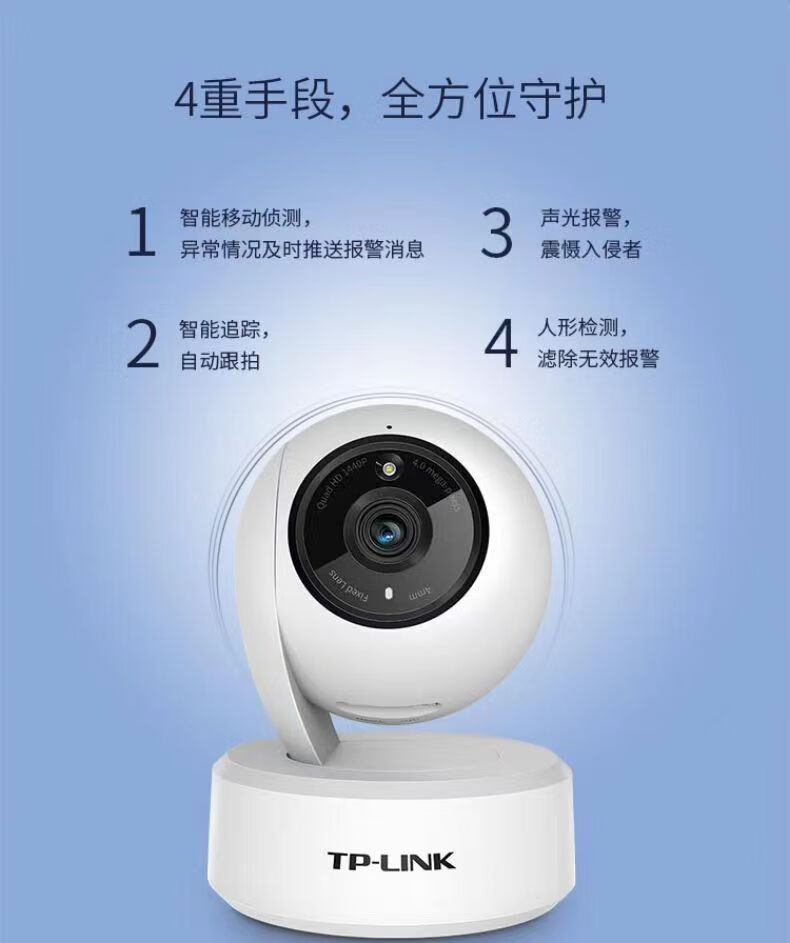 Pulian TP-LINK camera 400W full color high-definition wireless network monitor home surveillance camera 360-degree no dead angle mobile phone remote care baby monitor 43CL+3 million pixels+with network port 64GB memory card