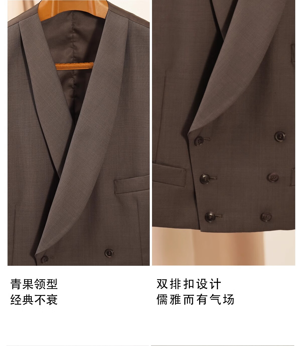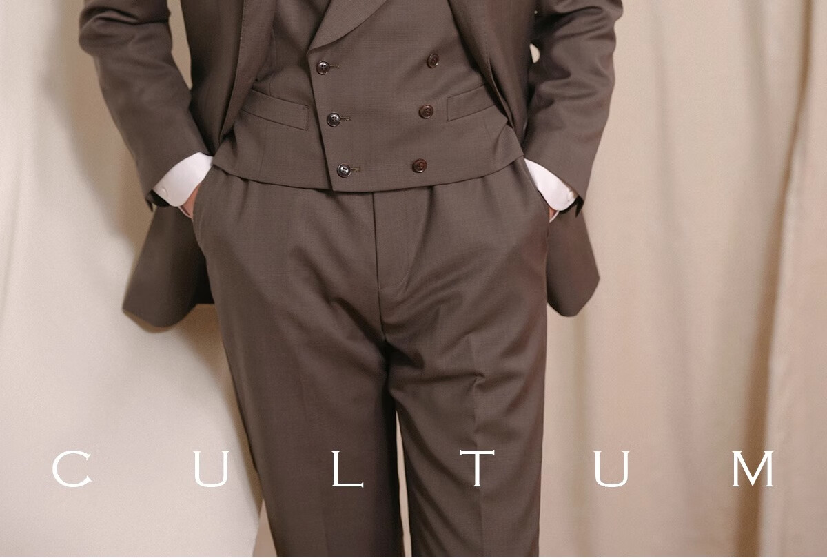 CULTUM Iron-free, semi-linen lining, Australian wool British prince check suit suit, men's wedding groom suit, gray coffee prince check three-piece suit 3XL (52C)