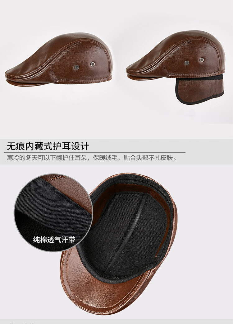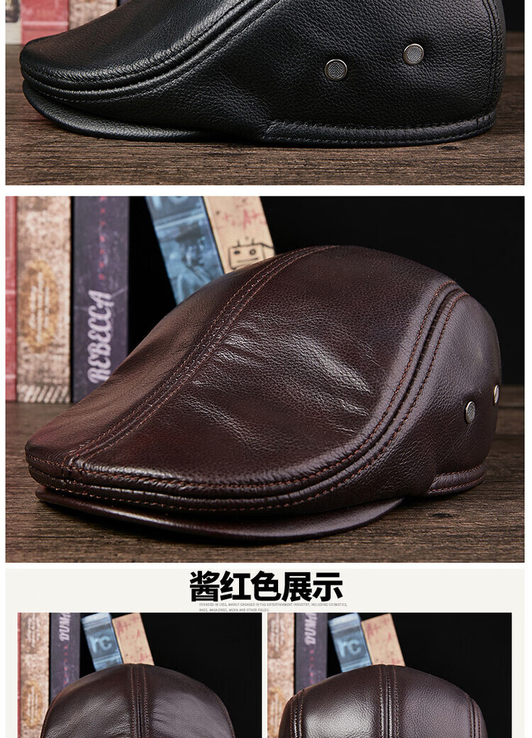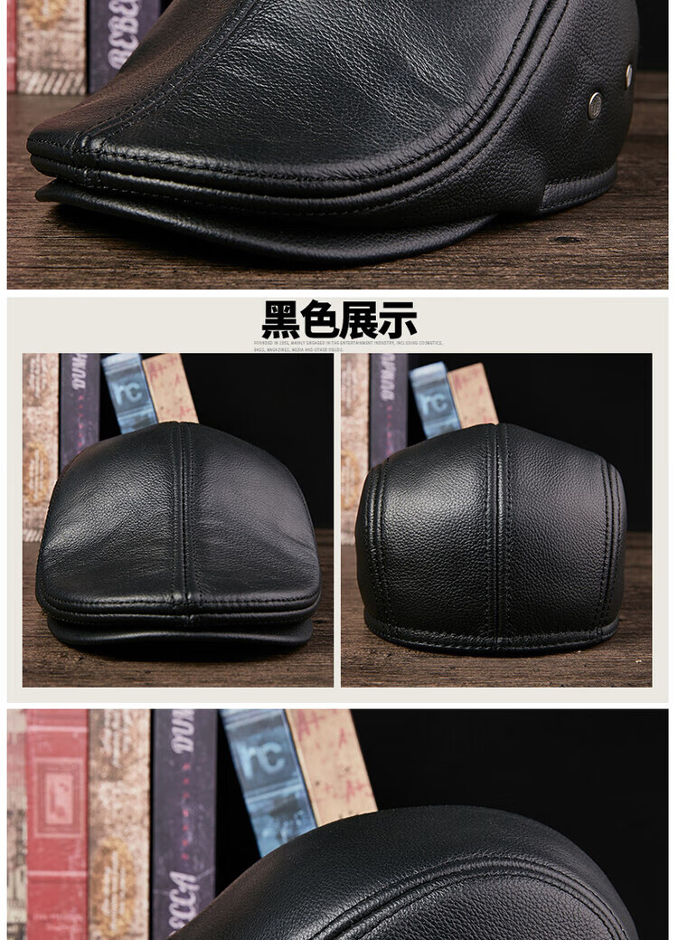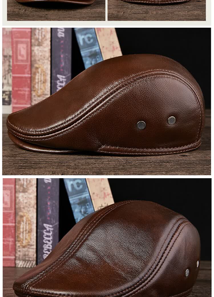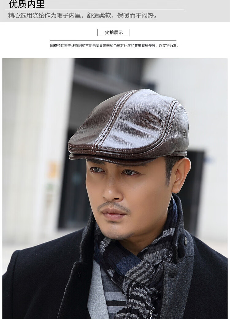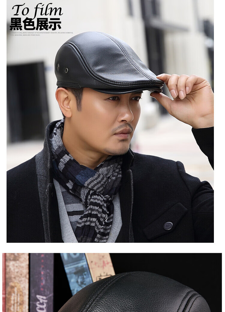 Xue Che Autumn and Winter Genuine Leather Duck Hat for Middle-aged and Elderly Men Fashionable Warmth forward Cowhide Hat Thickened Beret British Black First Layer Cowhide M (53-54cm)